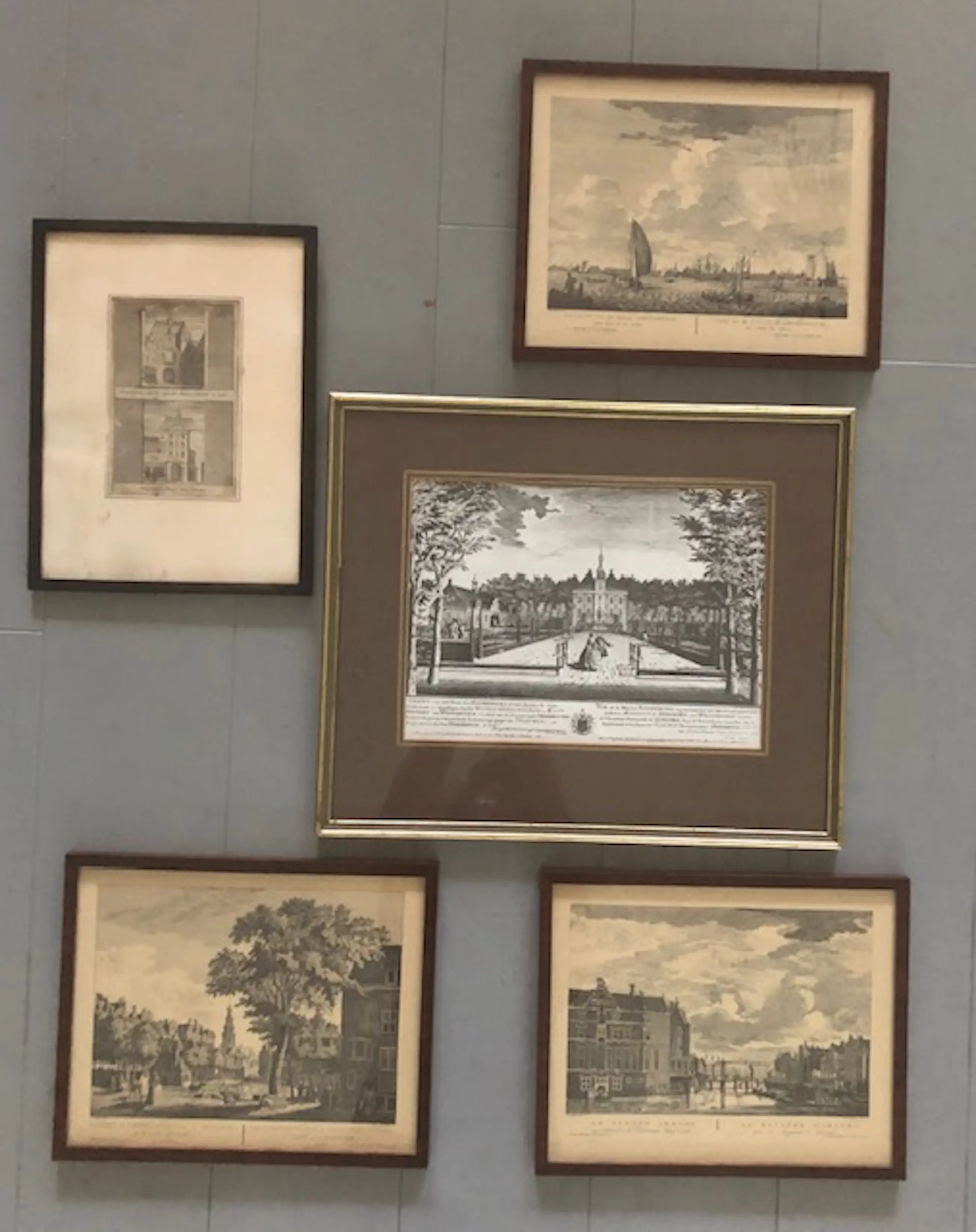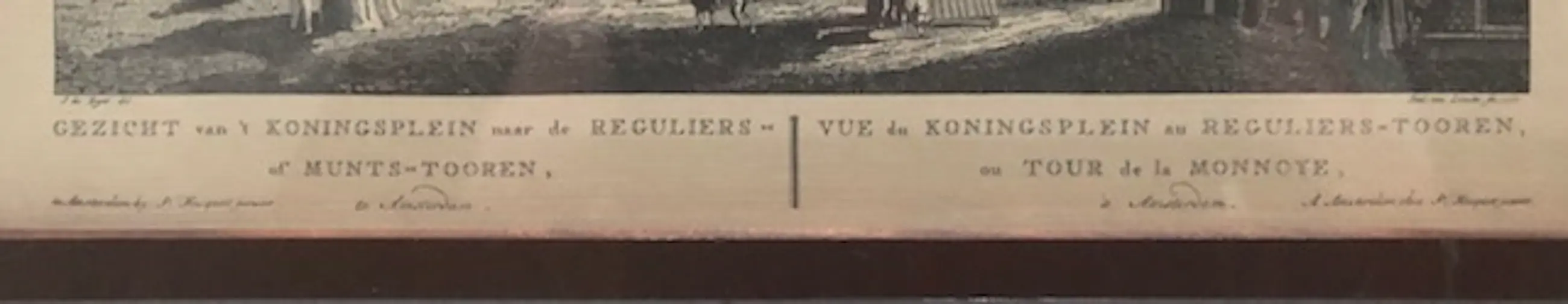 Een drietal koper gravures van Amsterdam door Fouquet Junior. De prints zijn zeer duidelijk, lichte verkleuring door zonlicht. Afmetingen inclusief lijst: 30 x 25 x 1 cm voor de 3.