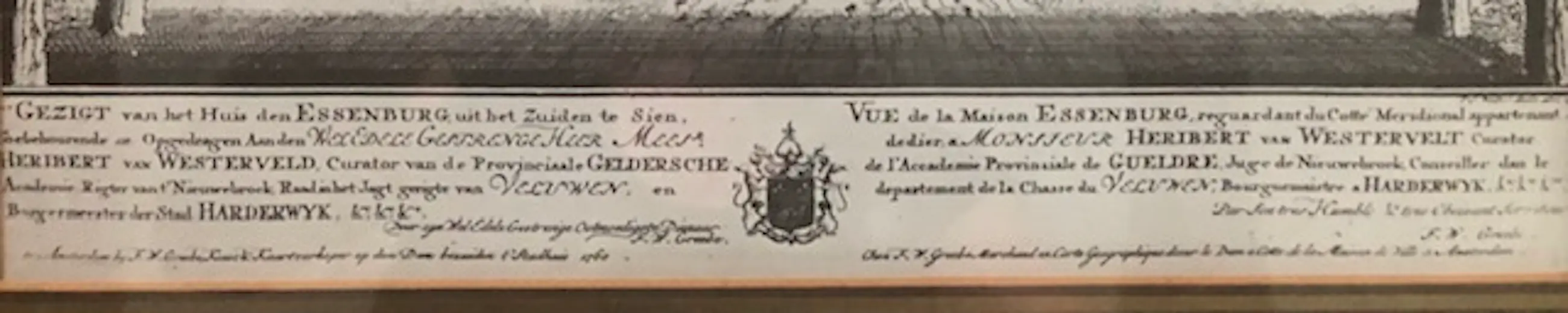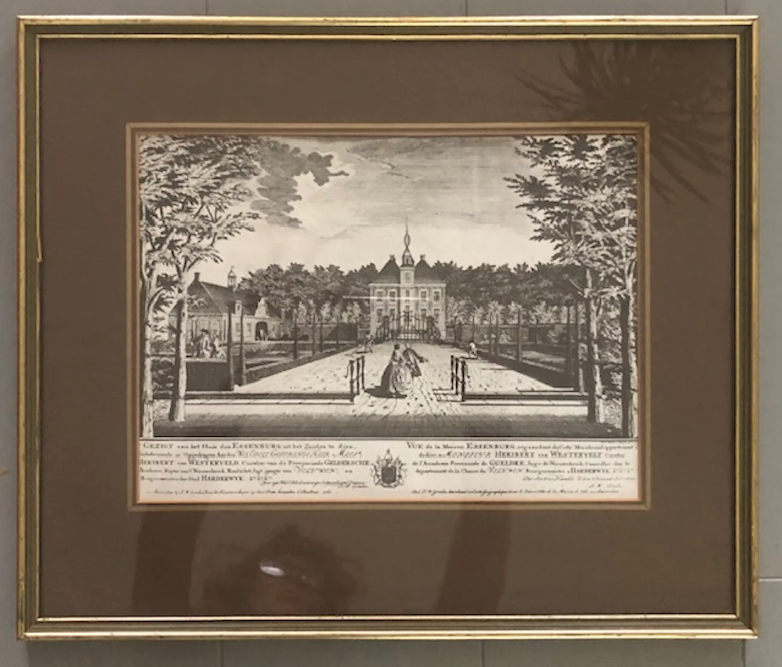 Eén koper gravure van F.W. Greebe uit Amsterdam. Onderwerp "Gezigt van het huis den Essenburg". Gravure is in zeer goede staat. Afmetingen inclusief lijst 43 x 36 x 1 cm.