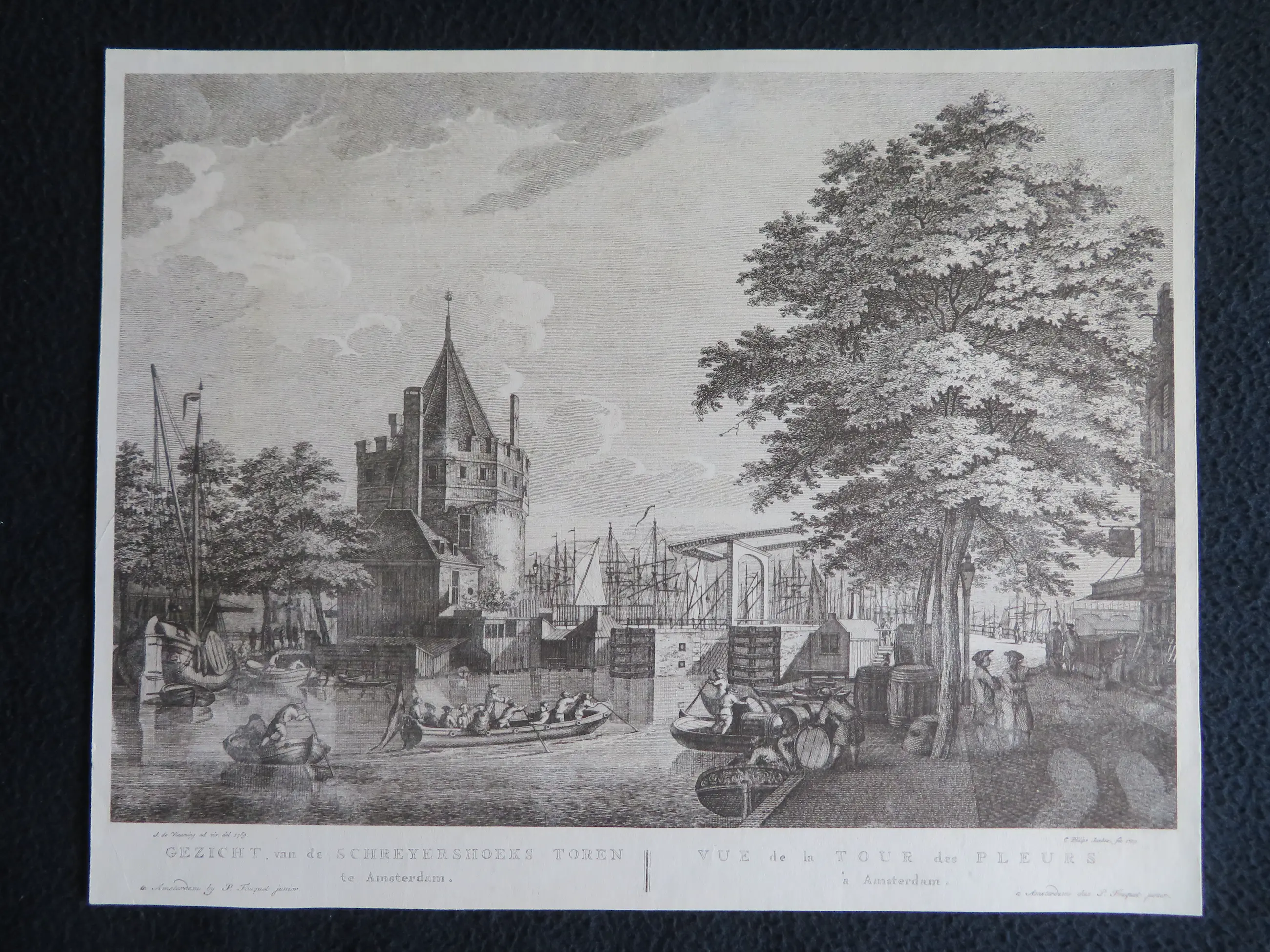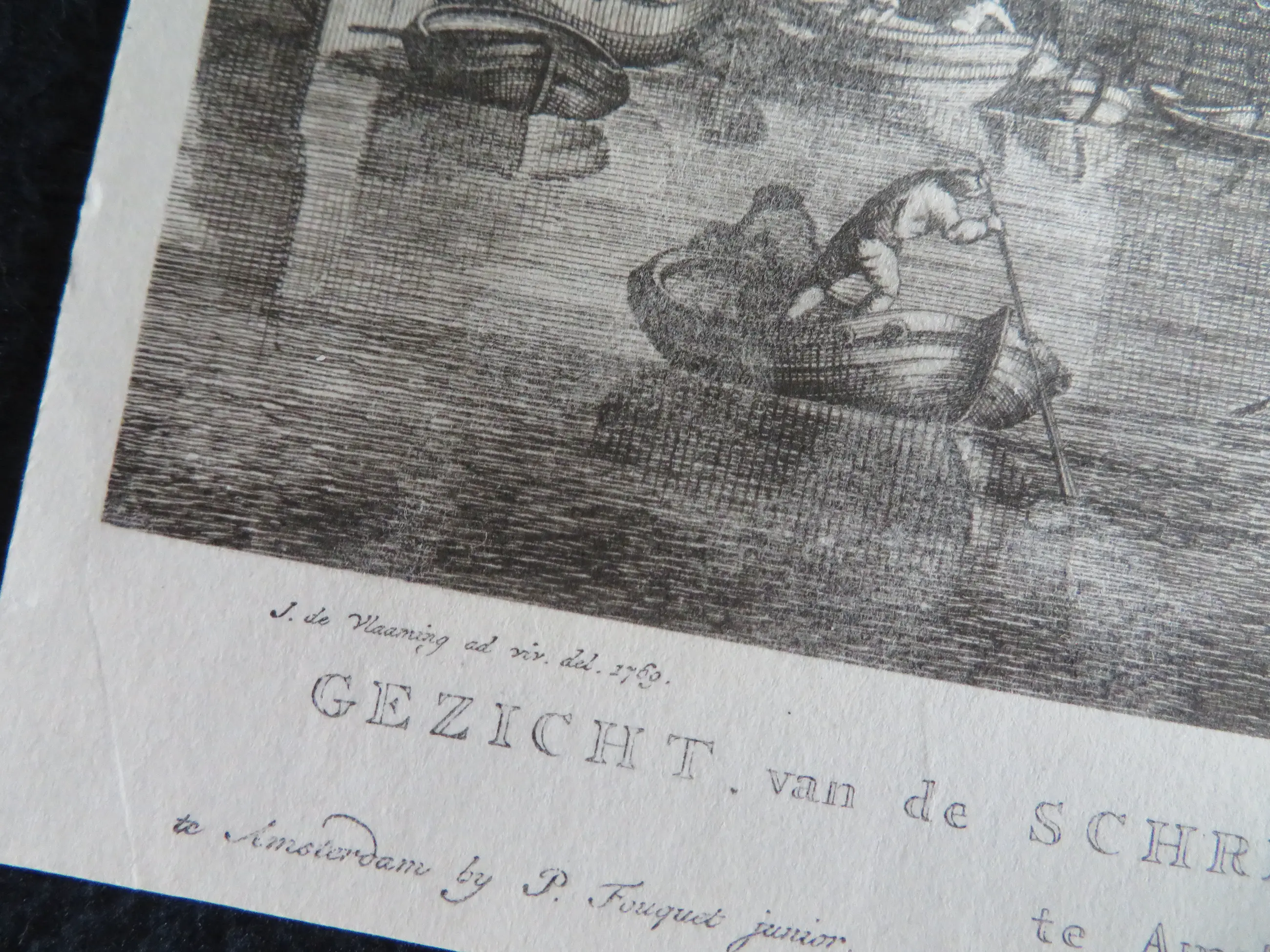Pieter Fouquet junior was een Noord-Nederlandse kunsthandelaar , schilder en uitgever van prenten . De kunstenaar van dit Amsterdamse stadsgezicht was J. de Vlaaming ad. vin. del, 1769 . De graveur was G. Philips Jacobsz. ( gedateerd 1769 )