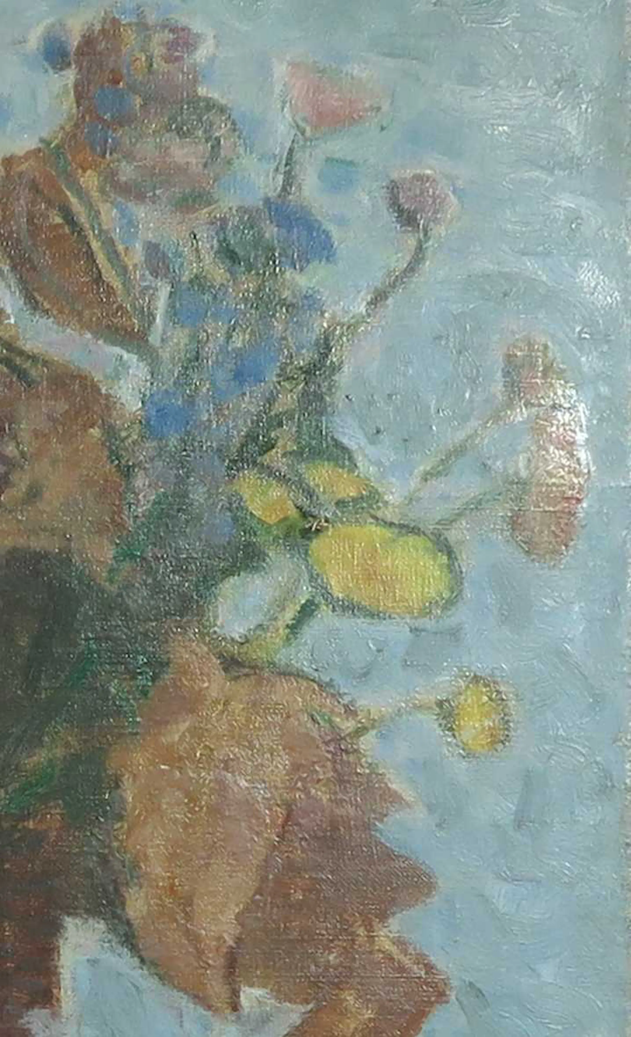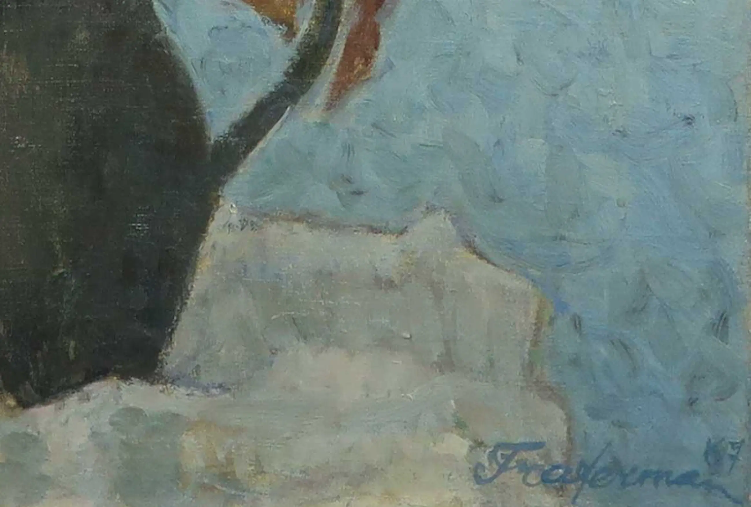 | Het werk is een beetje verkleurd en heeft een gaatje in het doek. | |