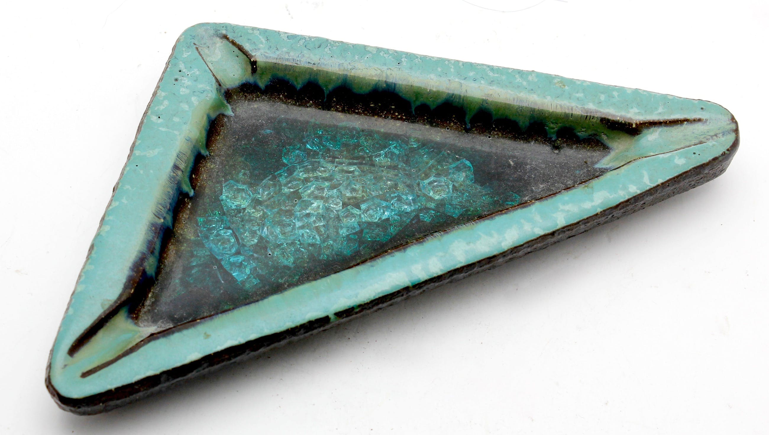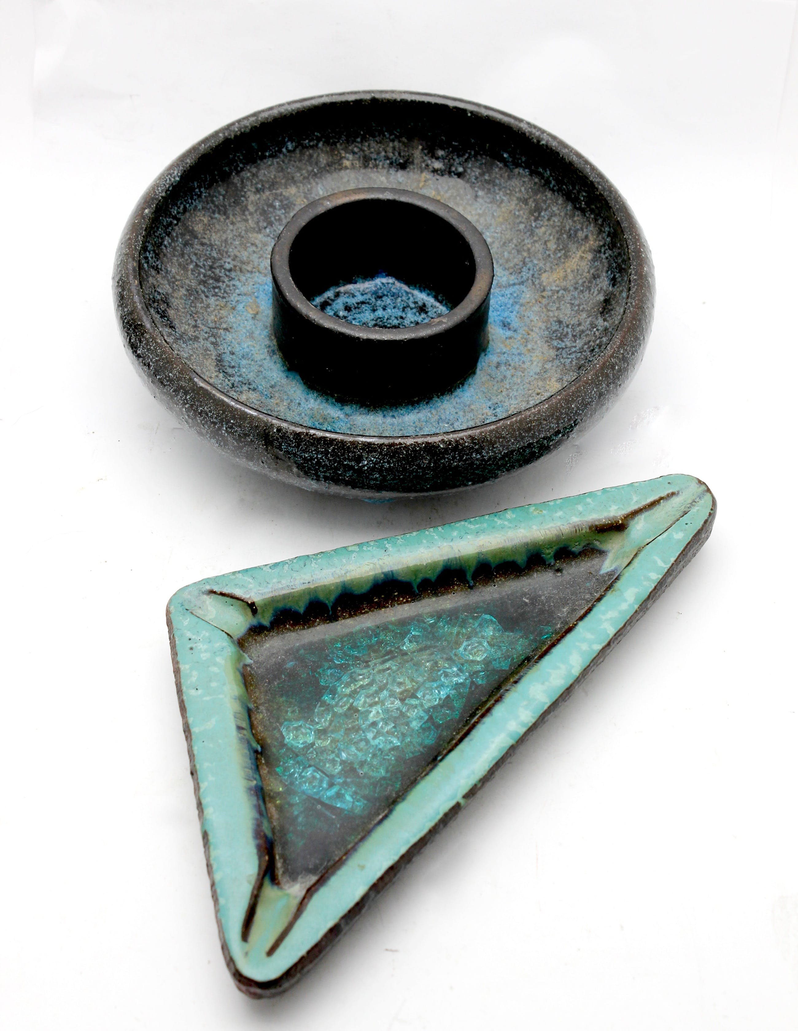 1960's, Voorschoten lot bestaat uit een schaal en een asbak met glas aan de binnenzijde: Schaal: Diameter: ca. 19,5 cmHoogte: ca. 5 cm Asbak: Driehoek: ca. 25 x 19 x16 cmHoogte: ca. 3 cm