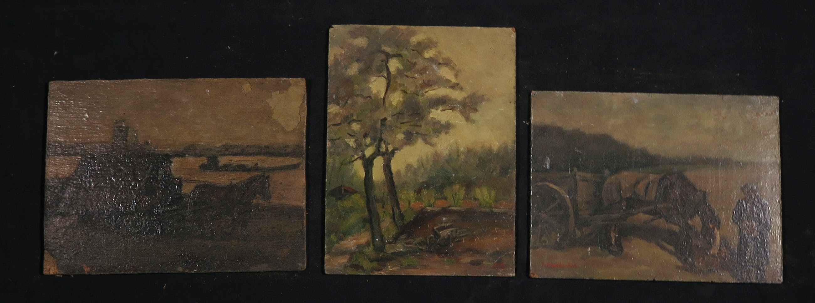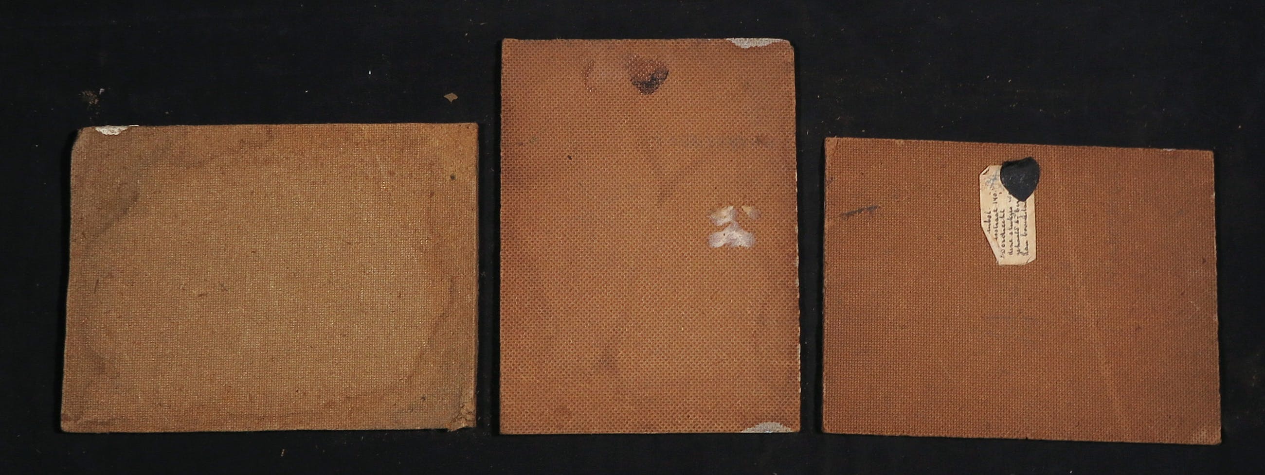 | Een van de werken is beschadigd aan de rechterbovenhoek. Verder zijn de werken zeer verkleurd, maar wel in redelijk goede staat. Hier en daar een kleine beschadiging18. | |||