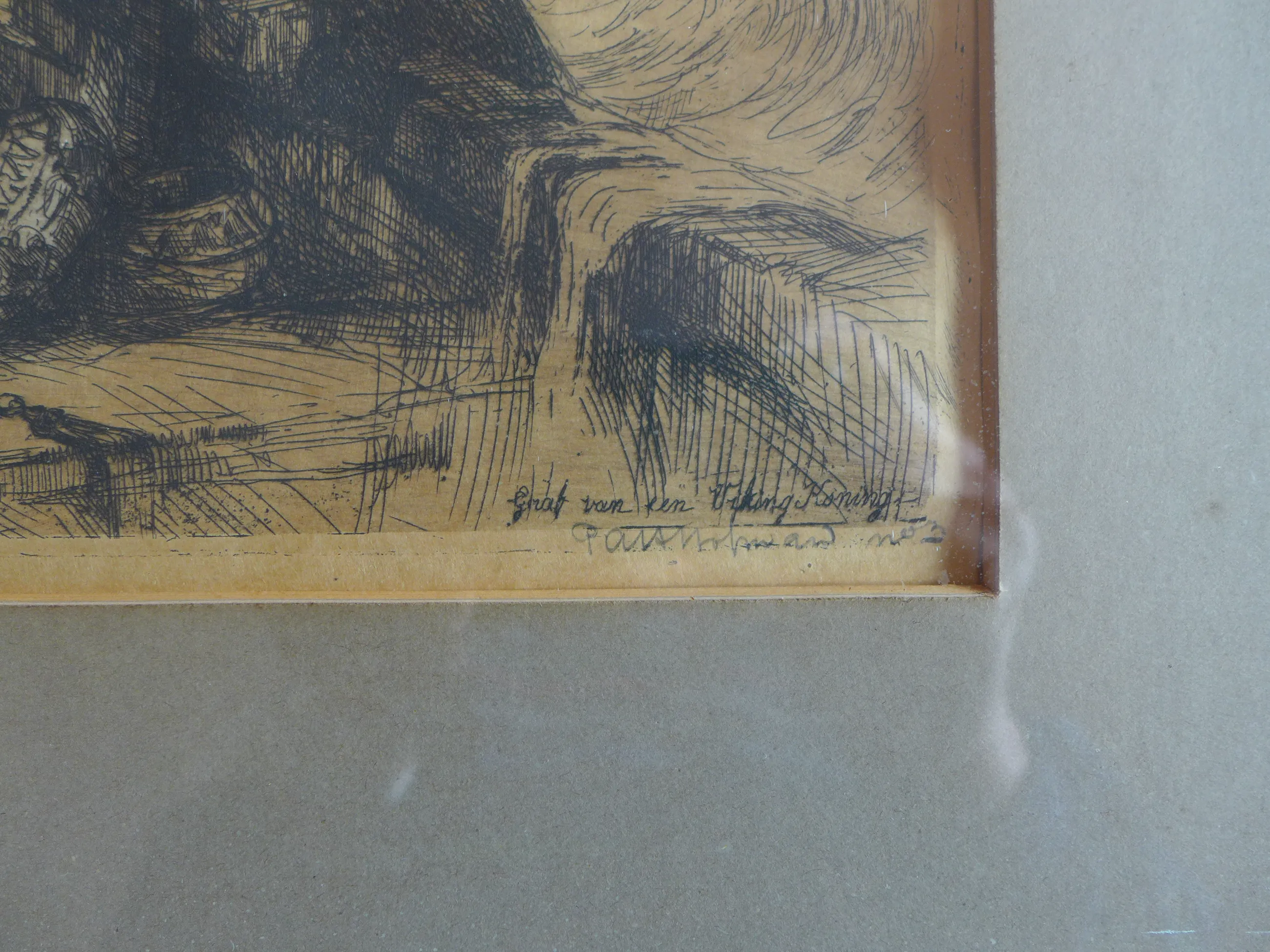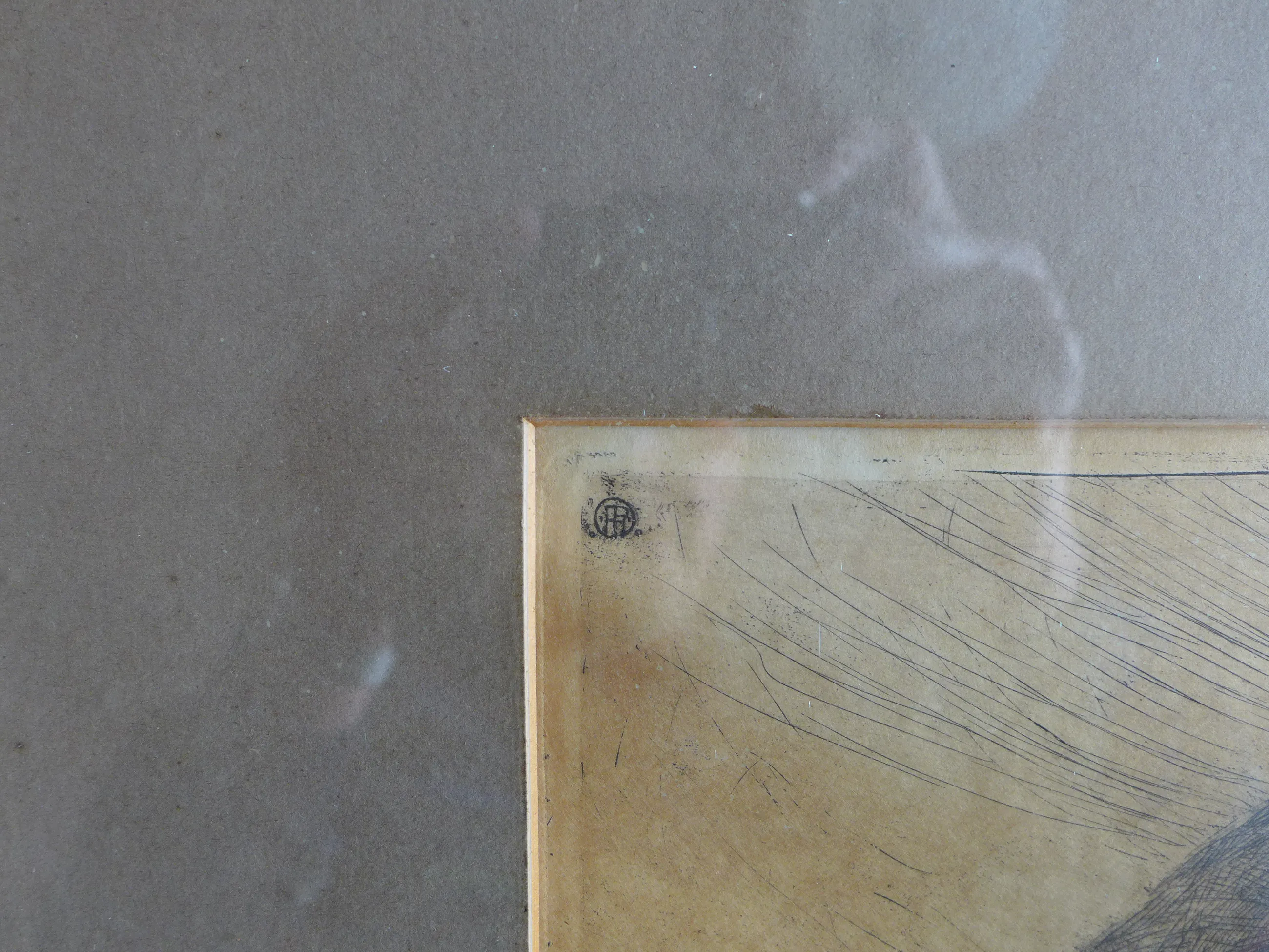 De ets is niet meer goed op "spanning". Een beetje als golven. Ets zelf niet beschadigd. Lijst is van hout.