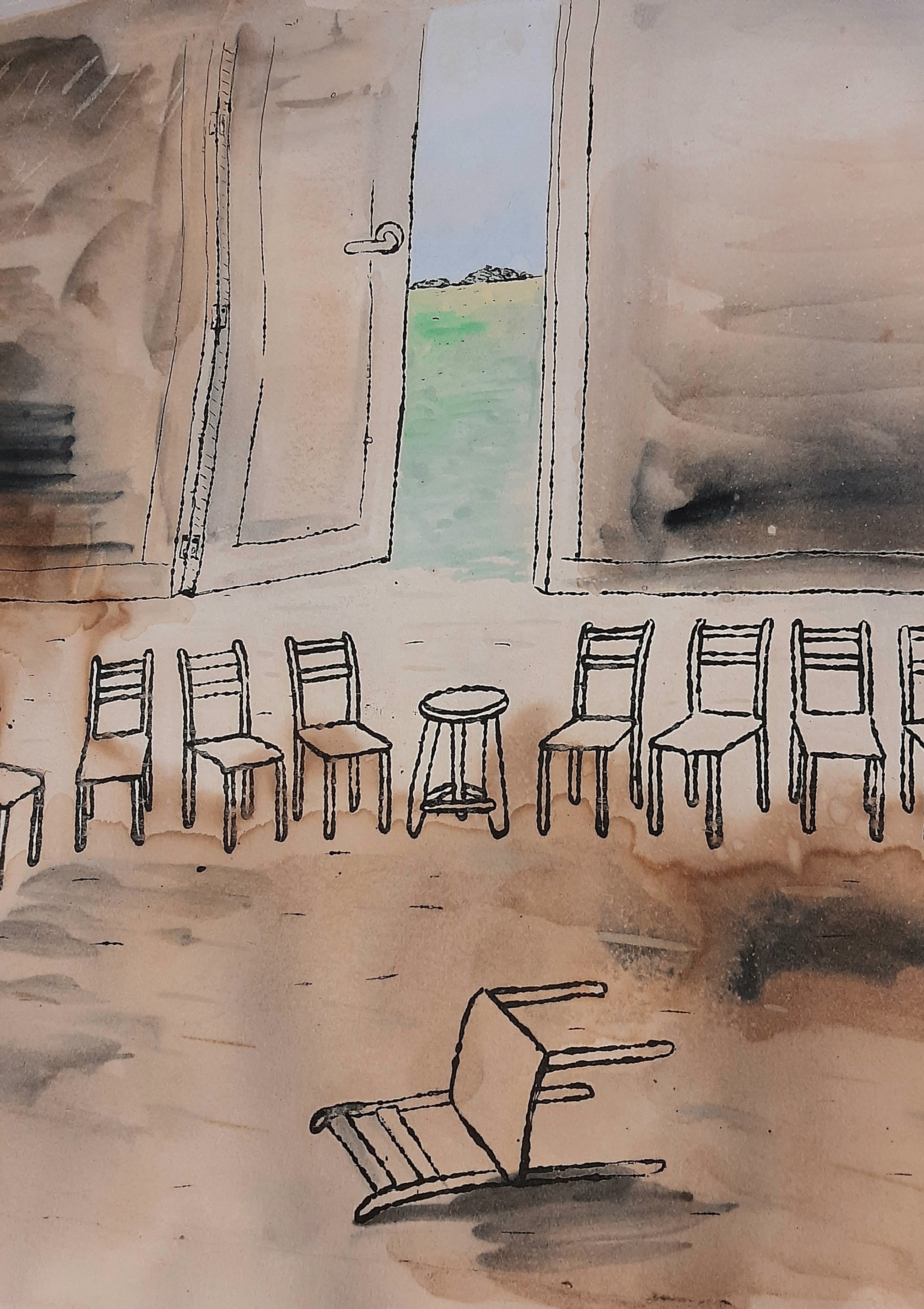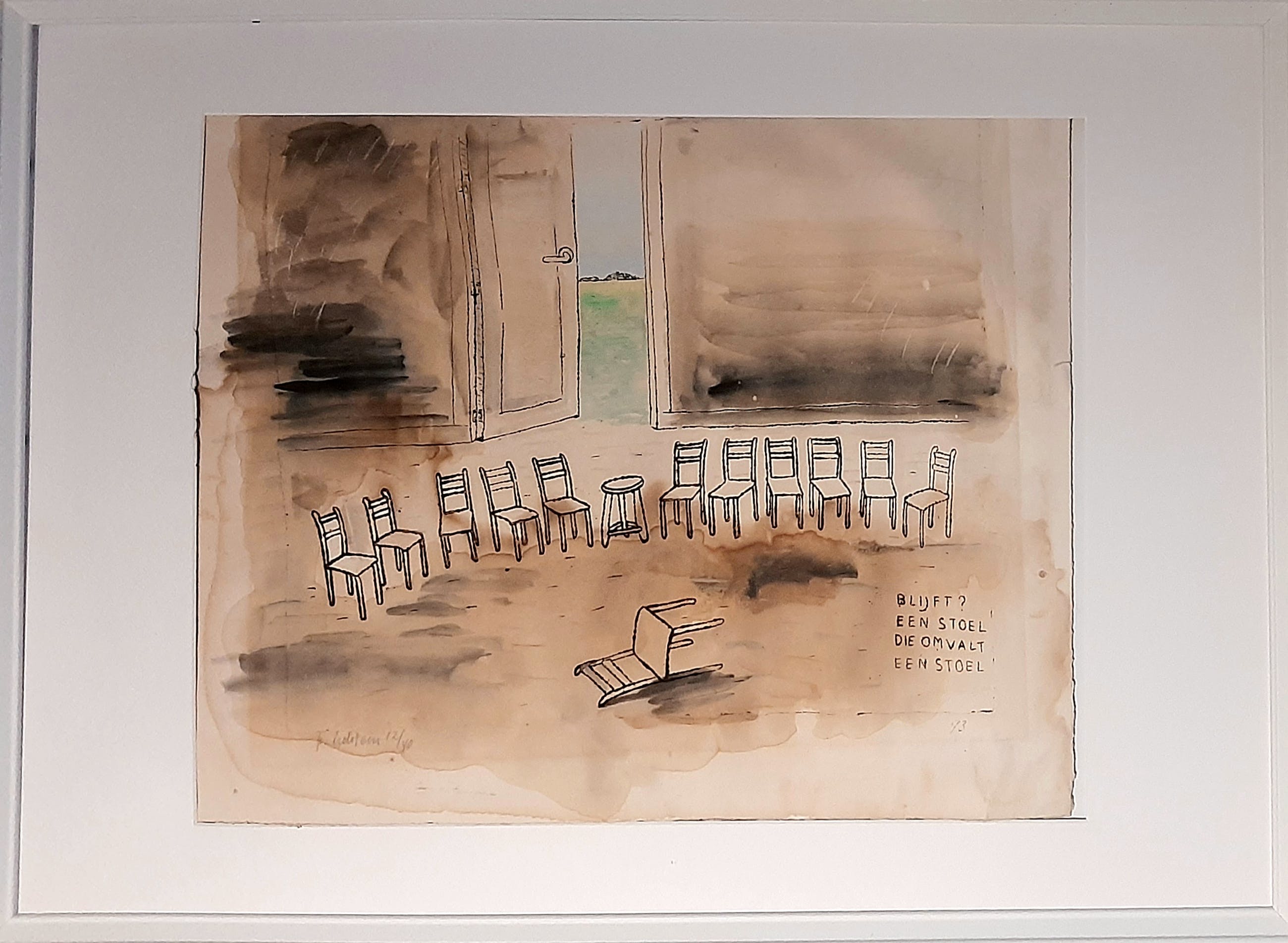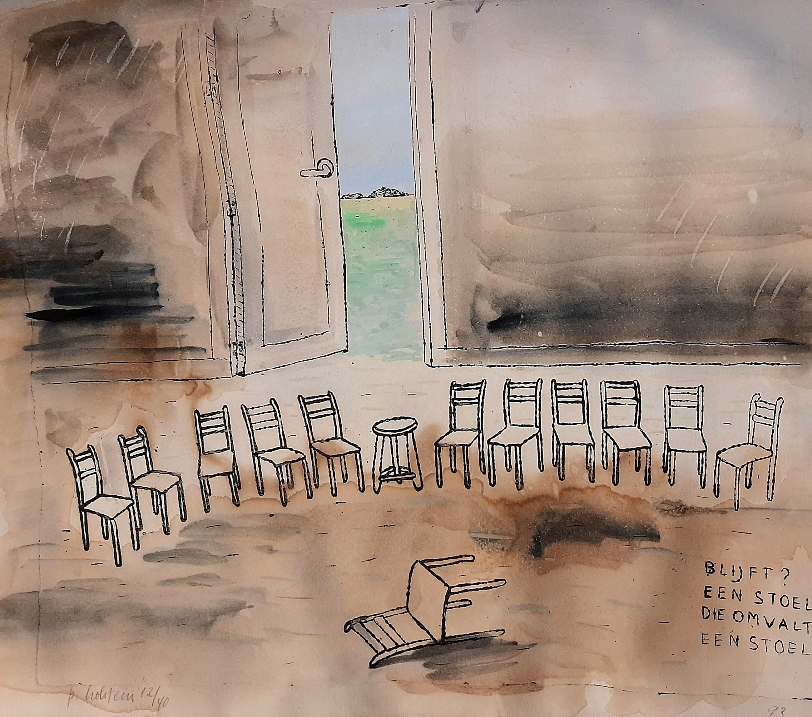 Blijft ? een stoel die omvalt een stoel... een filosofisch idee van Pieter Holstein , bijzonder uniek