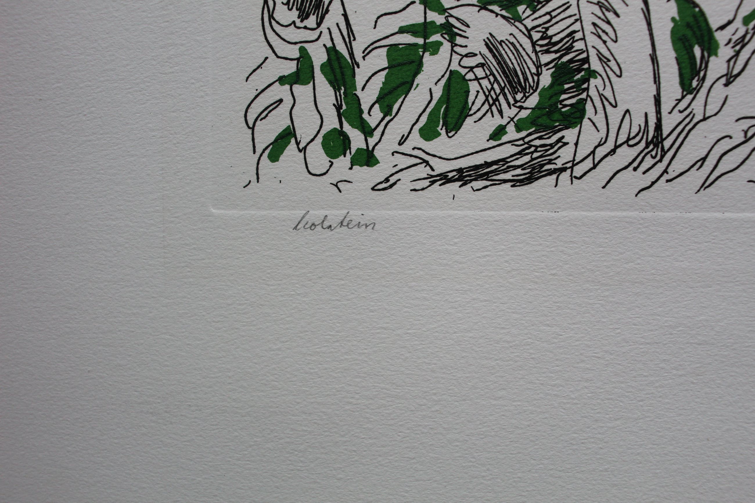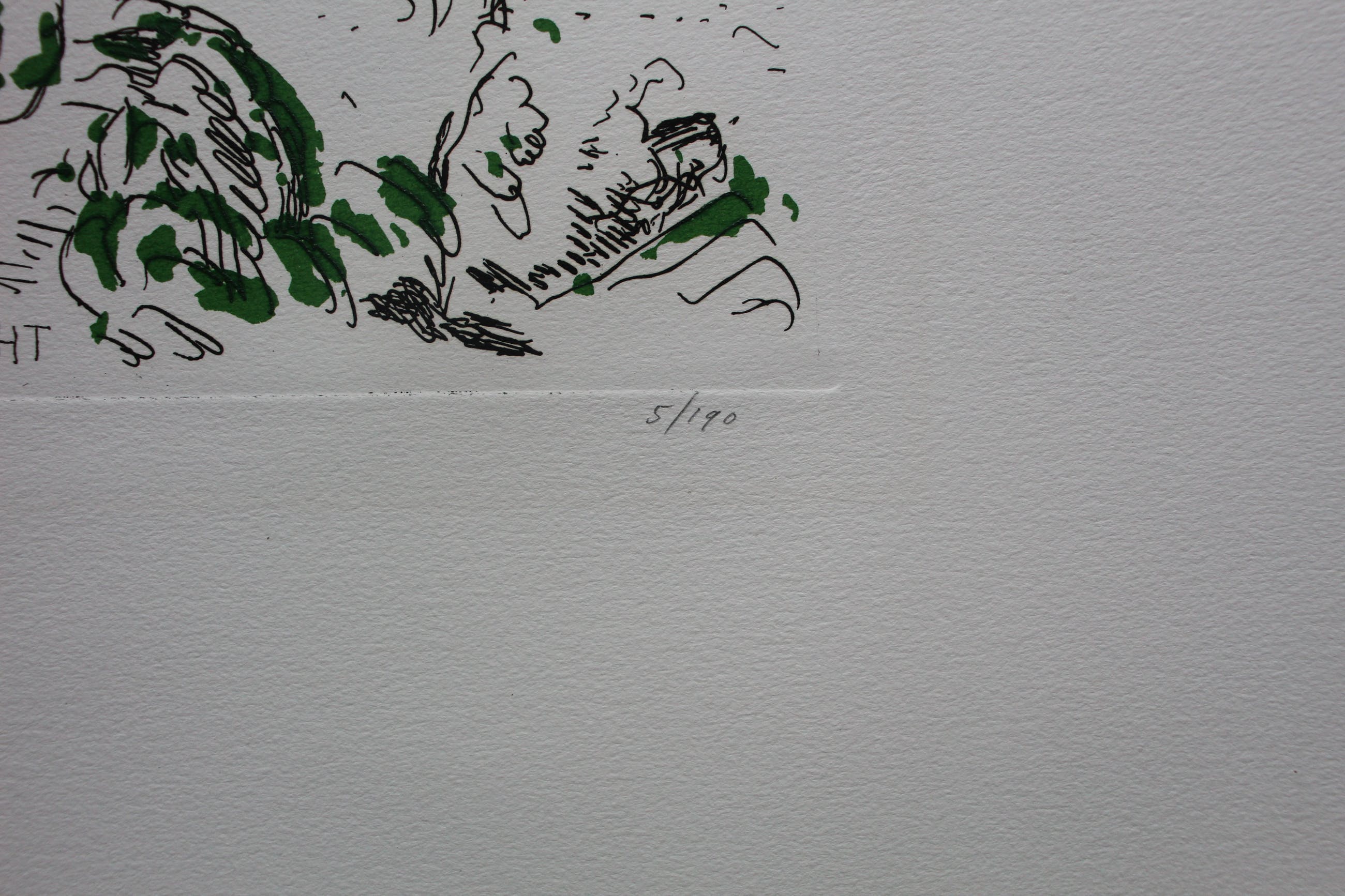 De voorstelling is in zeer goede staat. Op de witte rand zitten wat kreukels en op de achterzijde wat plakresten van een vorige inlijsting. Goed ingelijst, valt dit in de lijst/onder de passepartout.