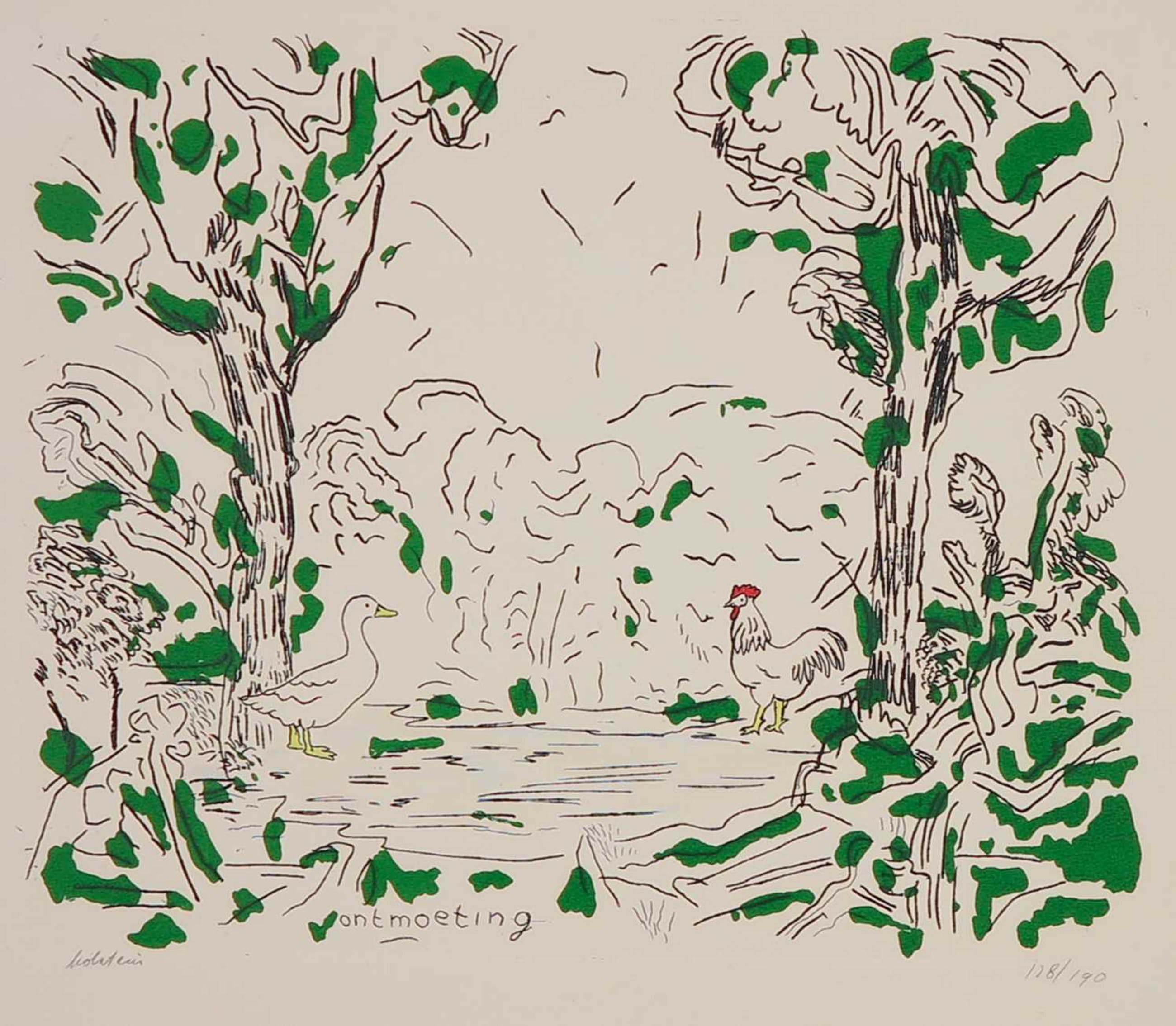 - Pieter Holstein - Ets, Ontmoeting, 128/190 (Afmetingen blad 65*50 cm, Beeld 27*33 cm)
