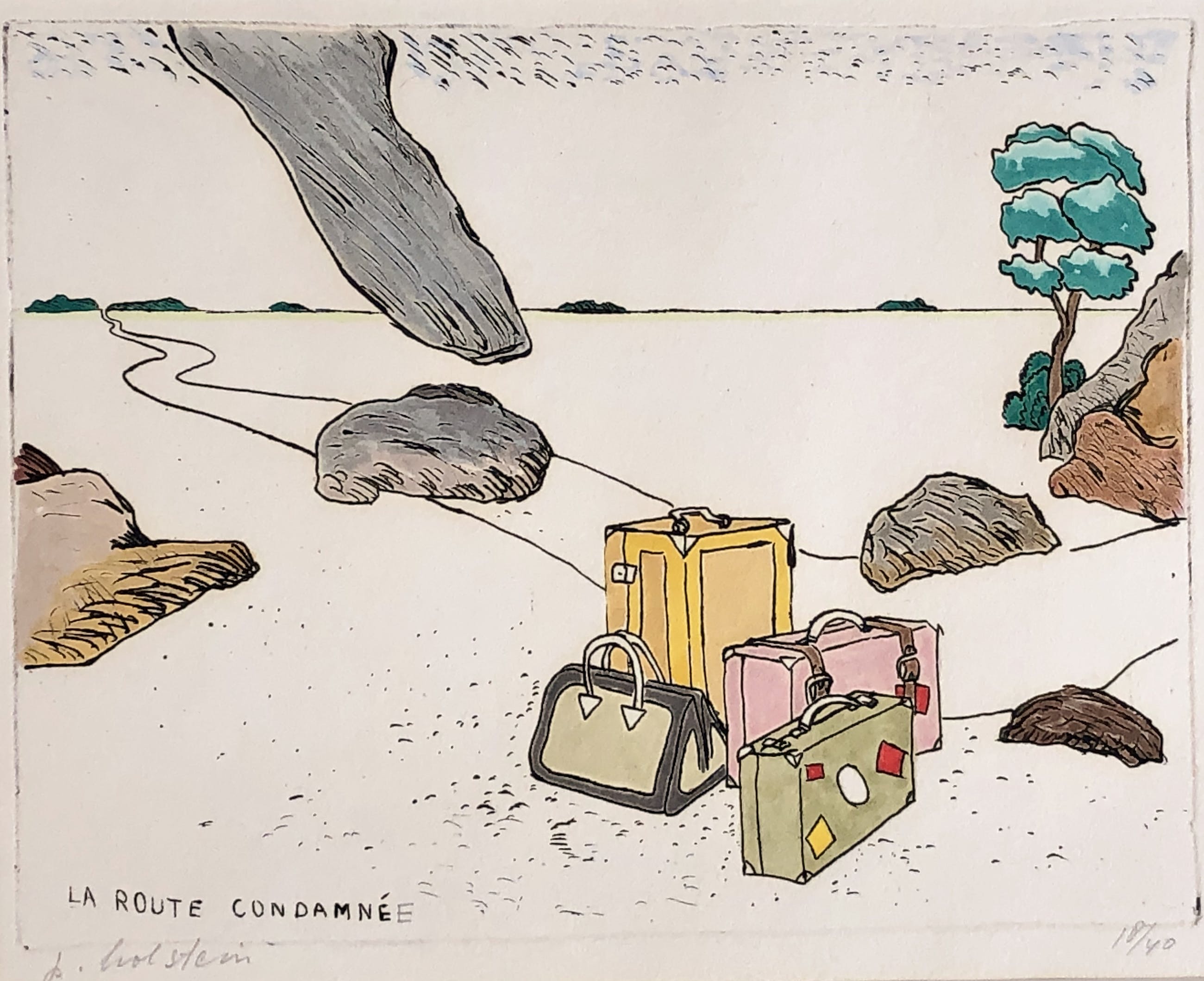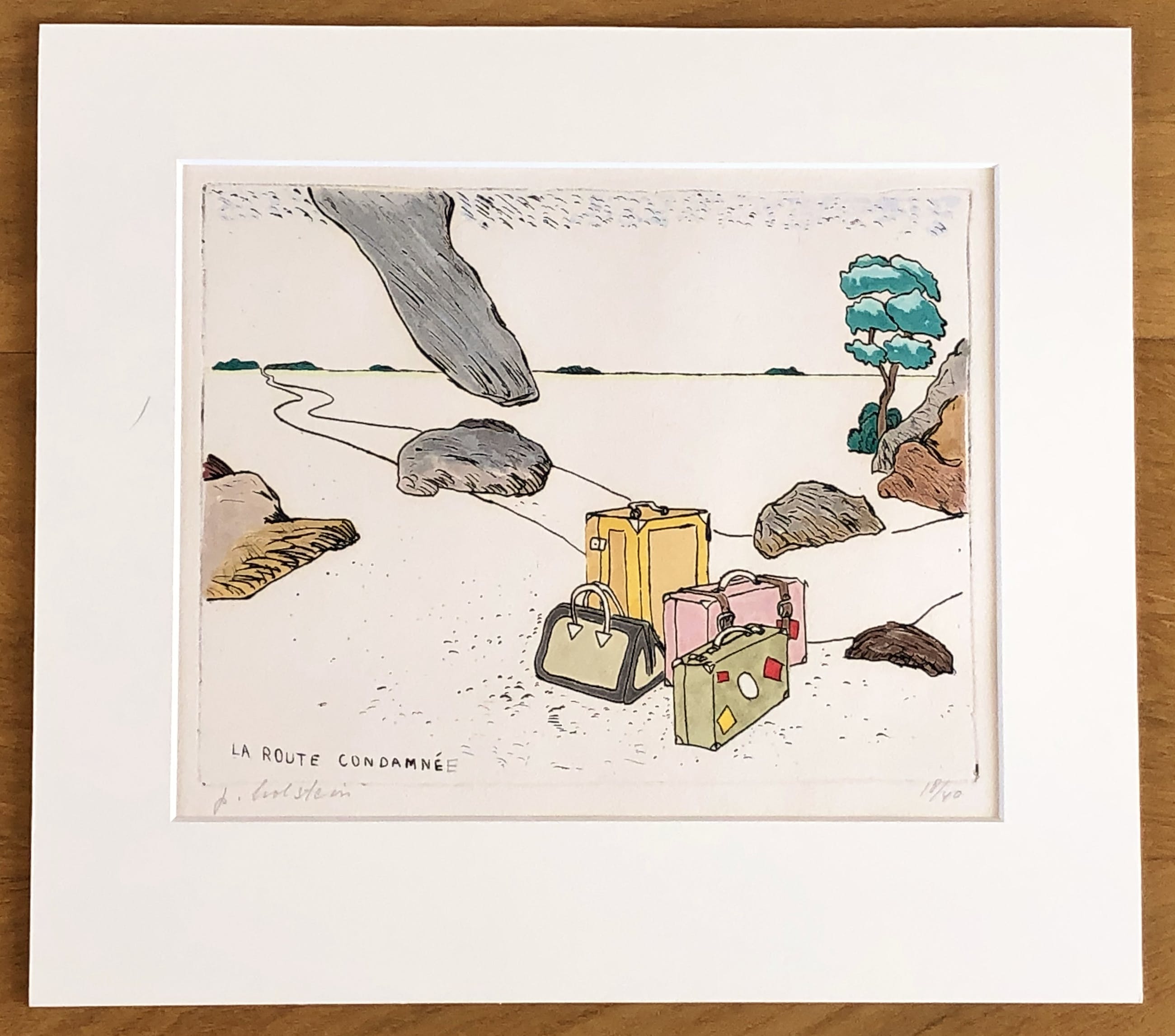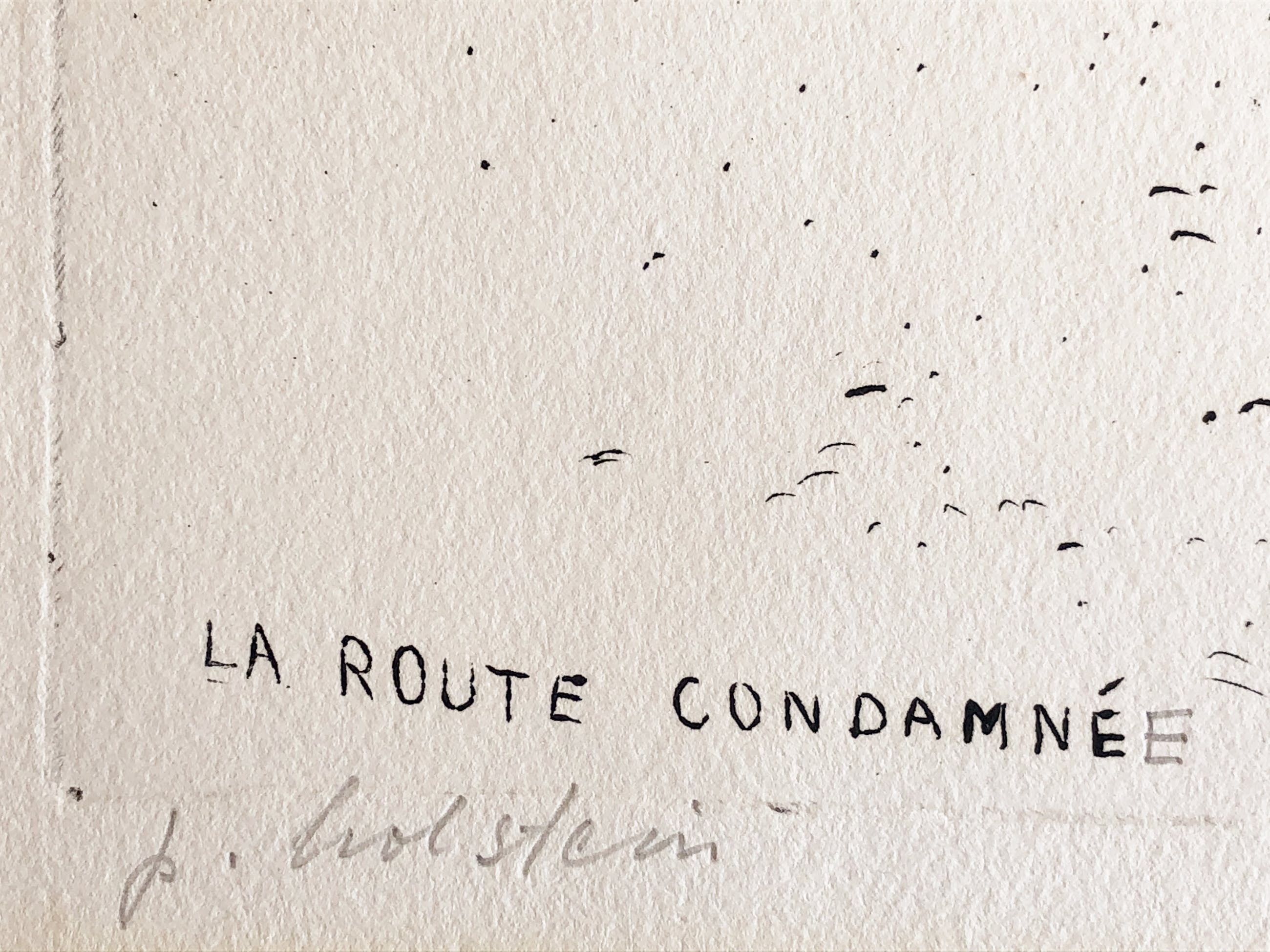 Te dateren tussen 1970 en 1980. Getiteld “LA ROUTE CONDEMNÉ(E)” in de druk, de