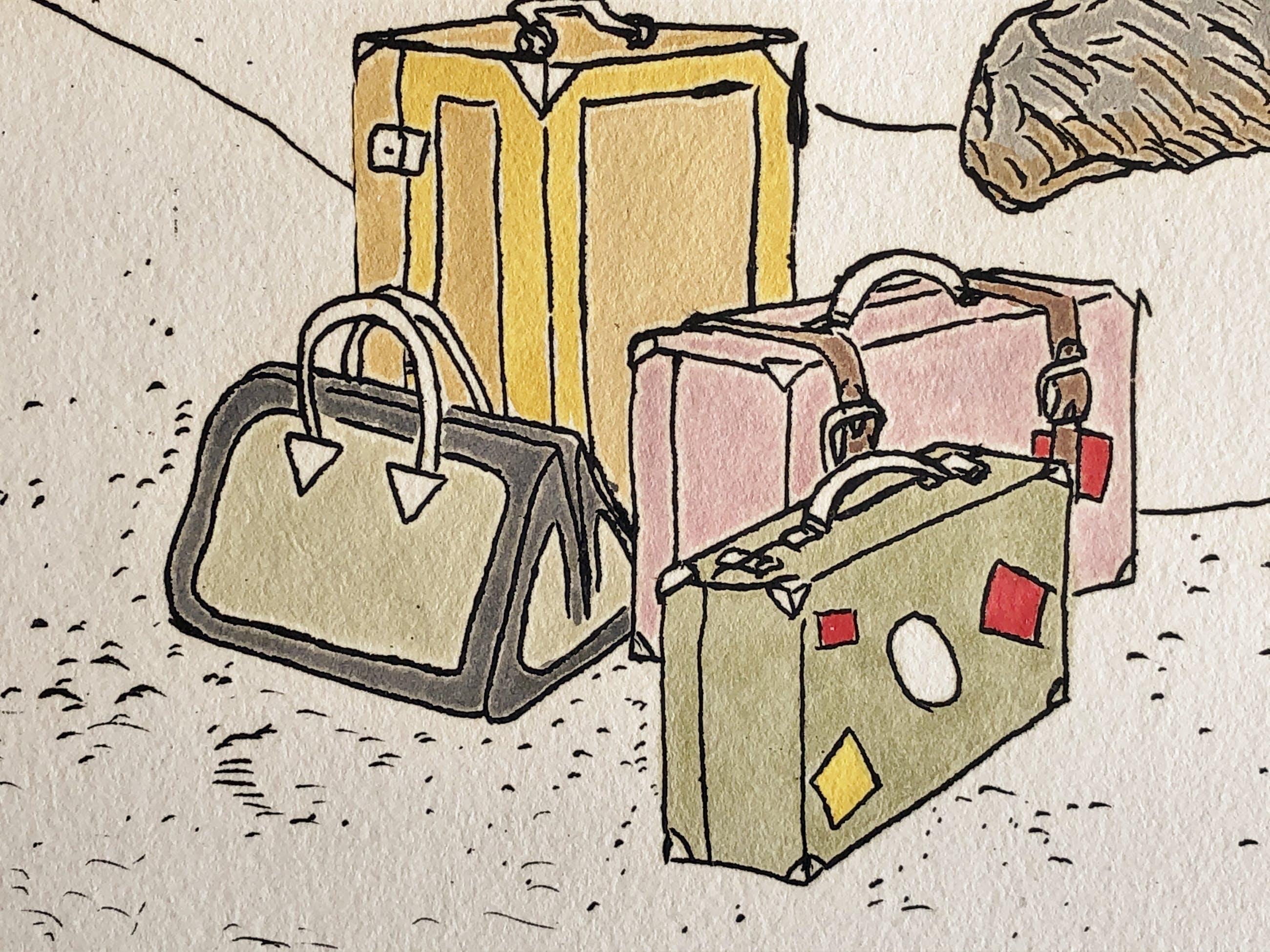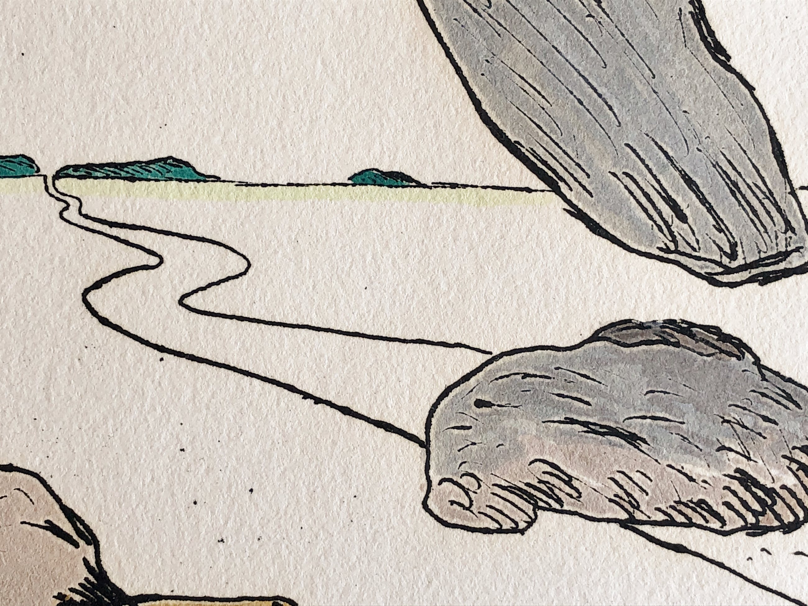 La Route Condemnée, gemengde techniek van ets en aquarel