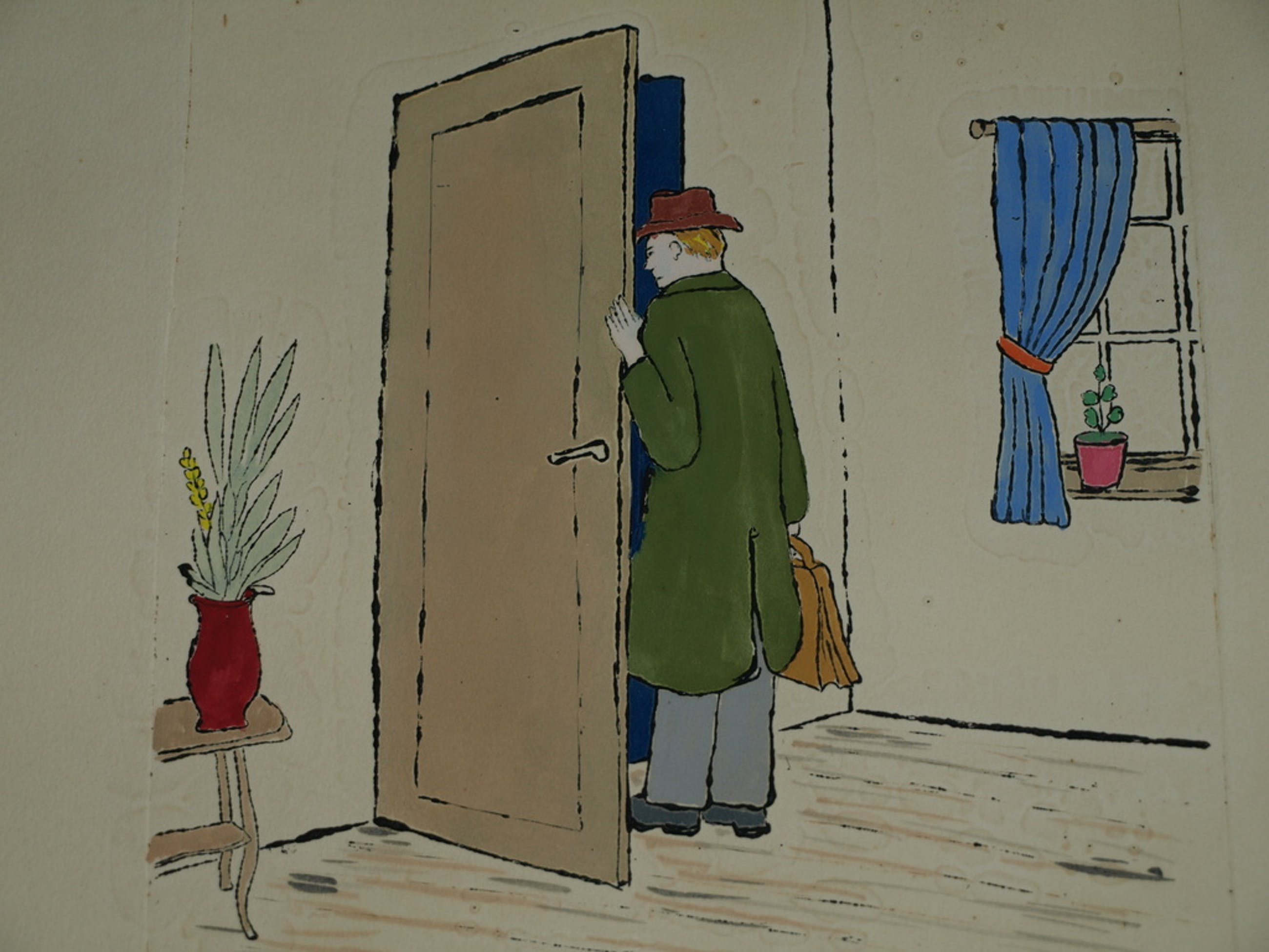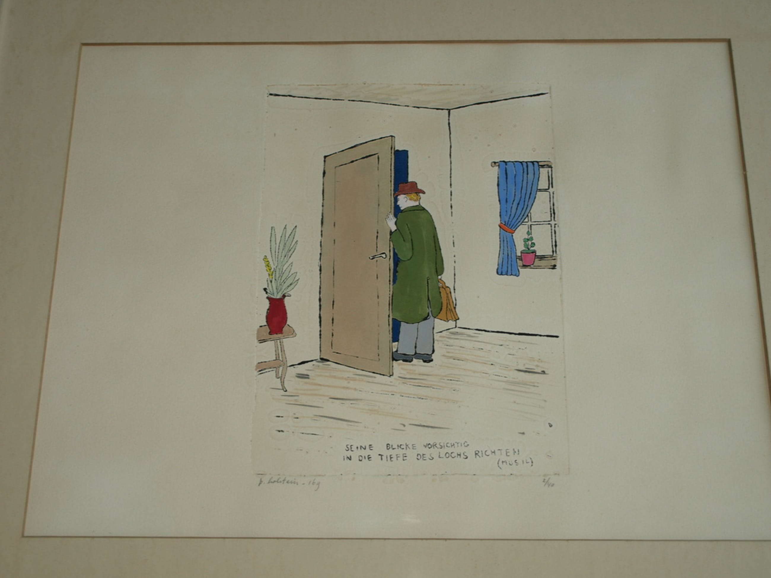 Een kenmerkende ingekleurde ets van de kunstenaar Pieter Holstein uit ca 1975. Gemaakt in een oplage van 40 exemplaren.
