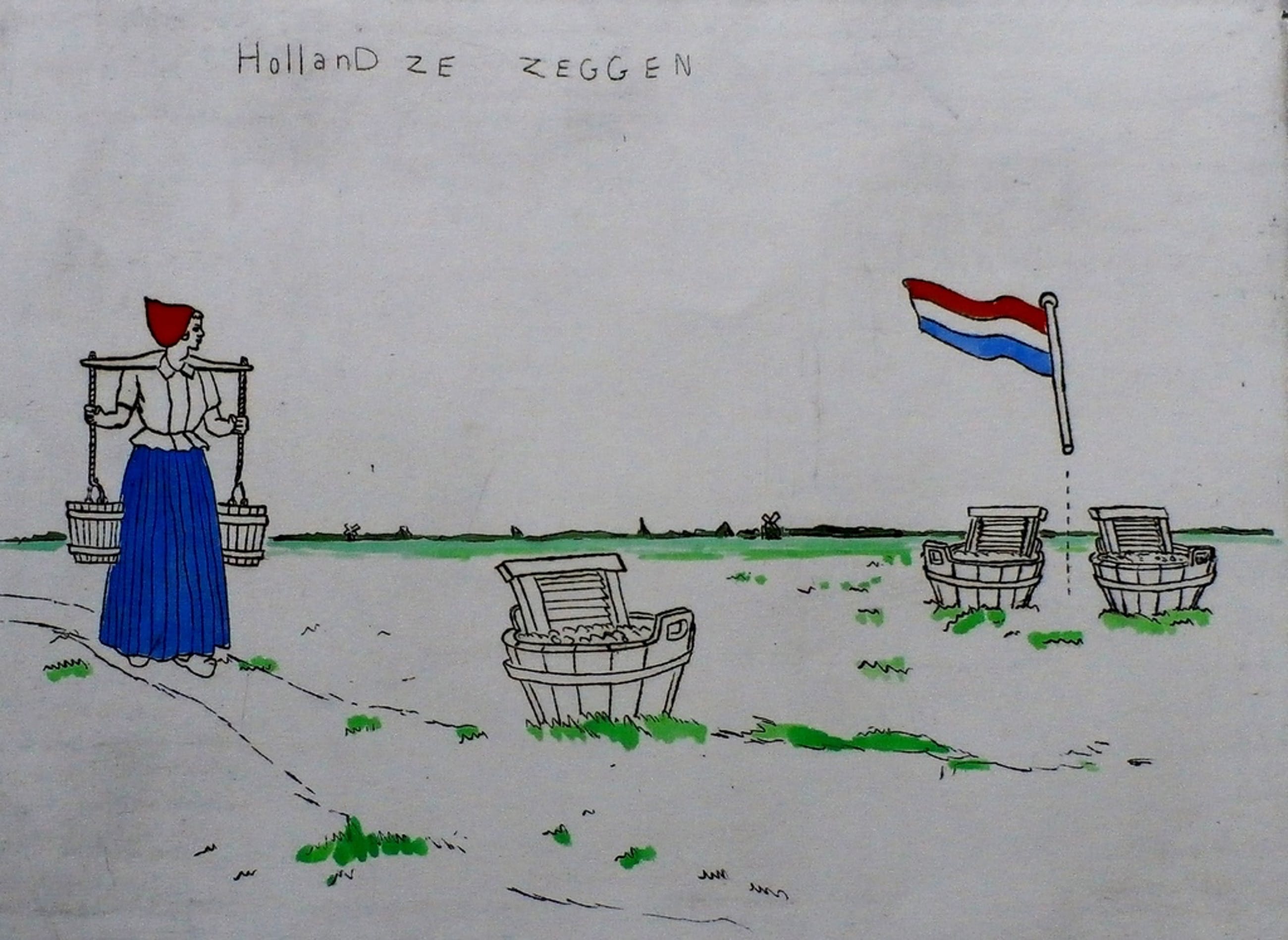 Handingekleurde Ets van Pieter Holstein. Titel: Holland ze zeggen. Nummer: 19/40. Afmetingen blad: H49,5 x b65 cm. Afmetingen ets: H33 x b44,5 cm. De authenciteit van dit werk wordt voor 100% gegarandeerd. Een certificaat kan, op aanvraag, worden meegeleverd.