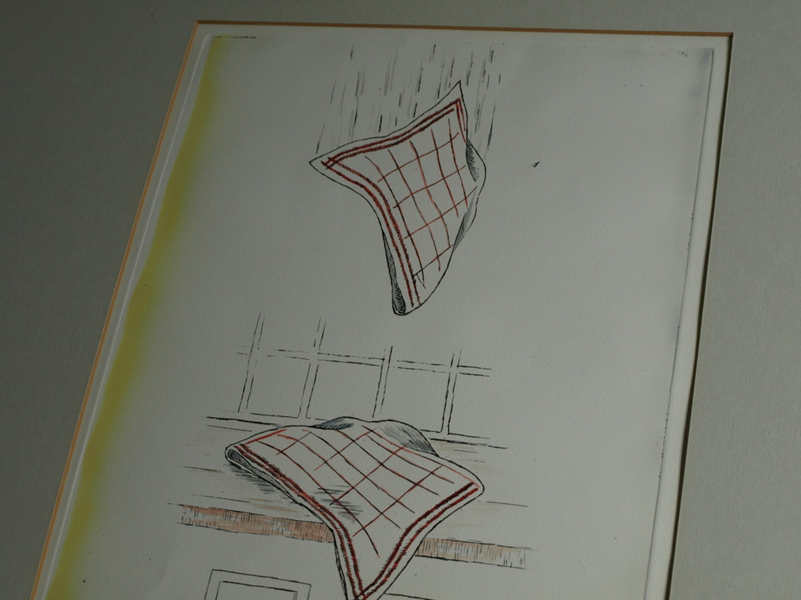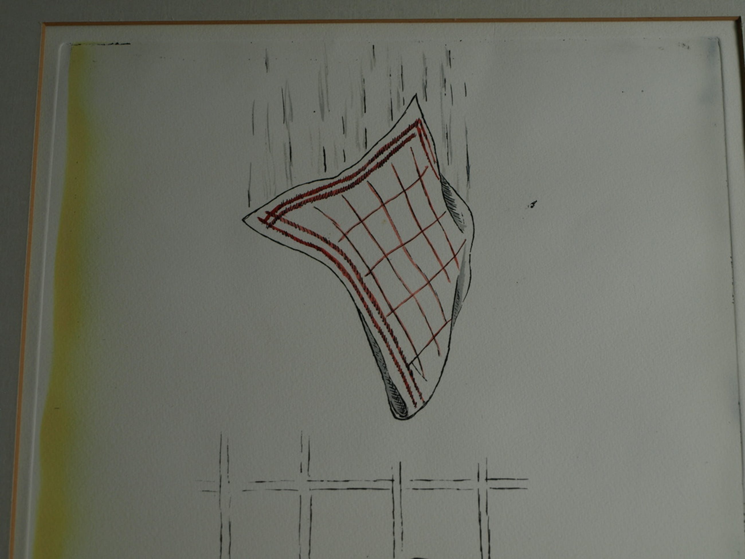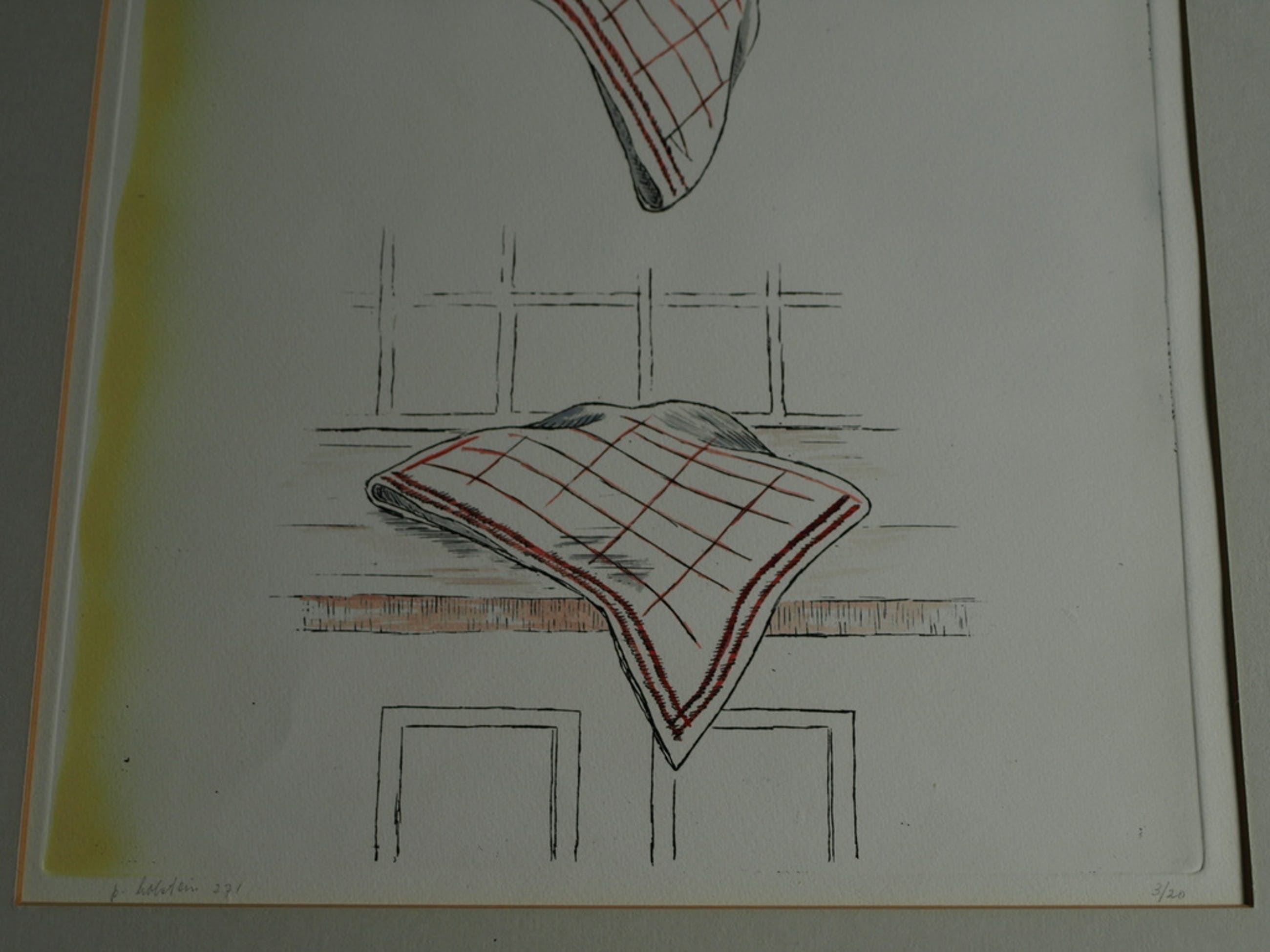 Een met de hand ingekleurde ets van de Nederlandse kunstenaar Pieter Holstein (1934).