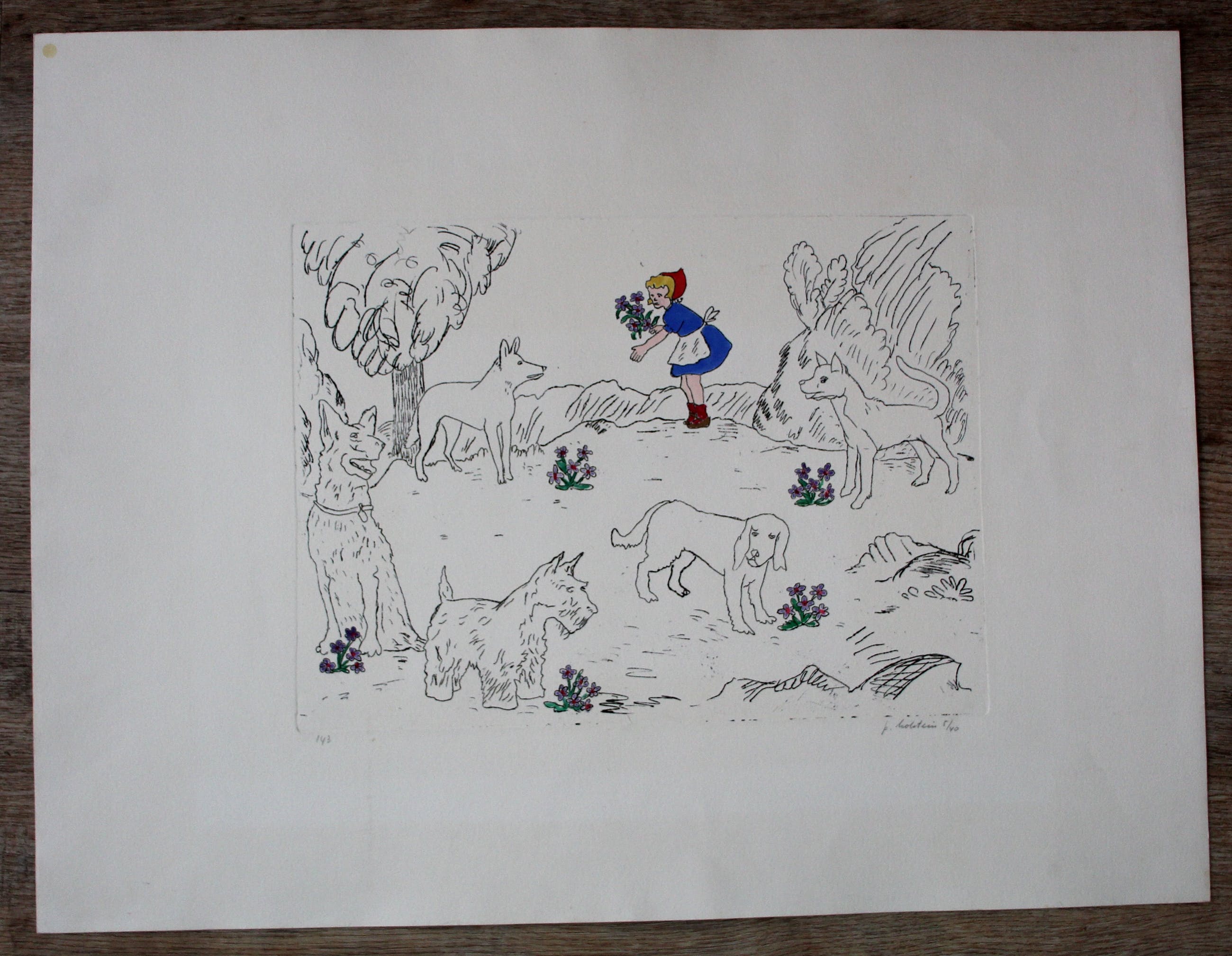 Grappige ( ingekleurde) ets van Pieter Holstein. Oplage: 5/40. Afmetingen blad: H49.5 x b64.5 cm. Afmetingen voorstelling: H28 x b38 cm. Het werk is rechts onder, met potlood, gesigneerd door de kunstenaar. De authenticiteit van het, aangeboden, werk wordt volledig gegarandeerd. Een certificaat van echtheid kan, op aanvraag, worden gemaild.