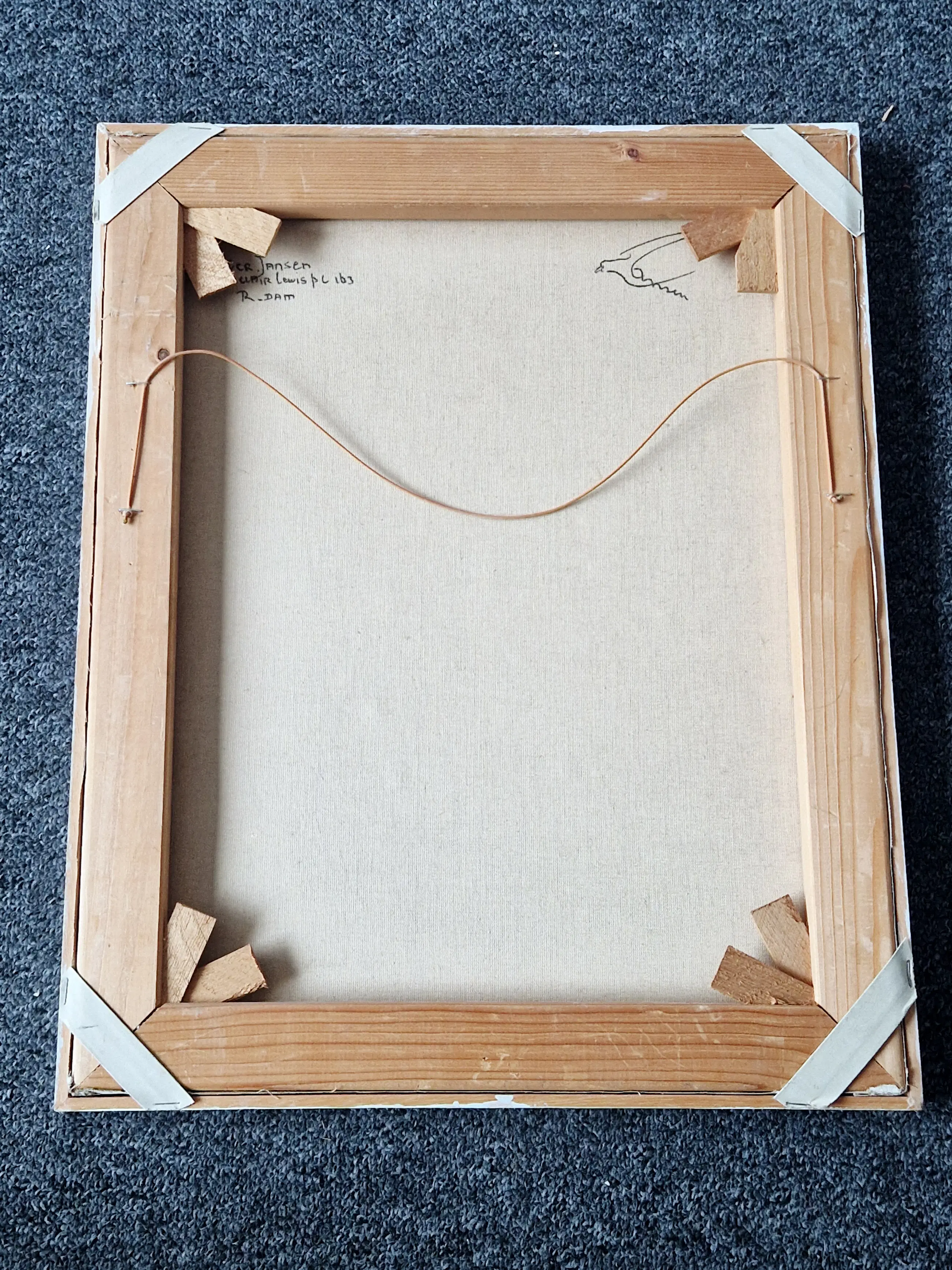 - Gesigneerd: rechtsonder en achterzijde doek