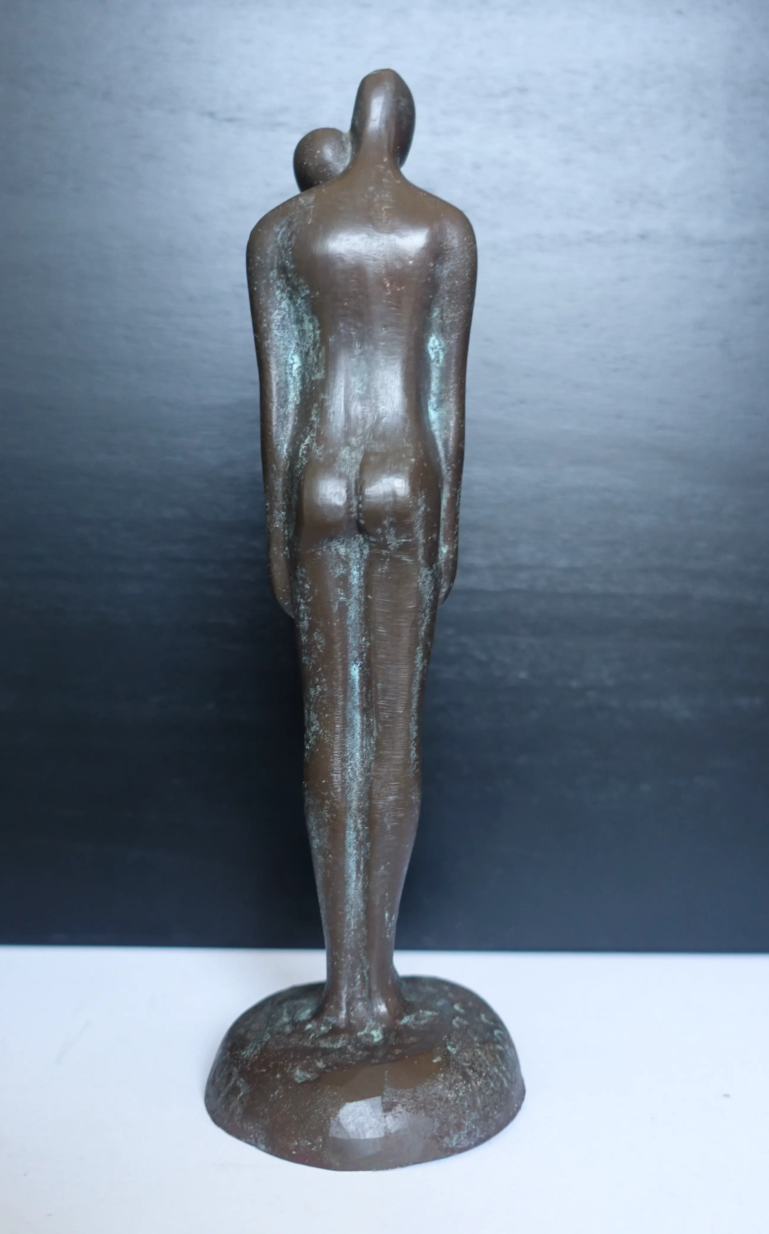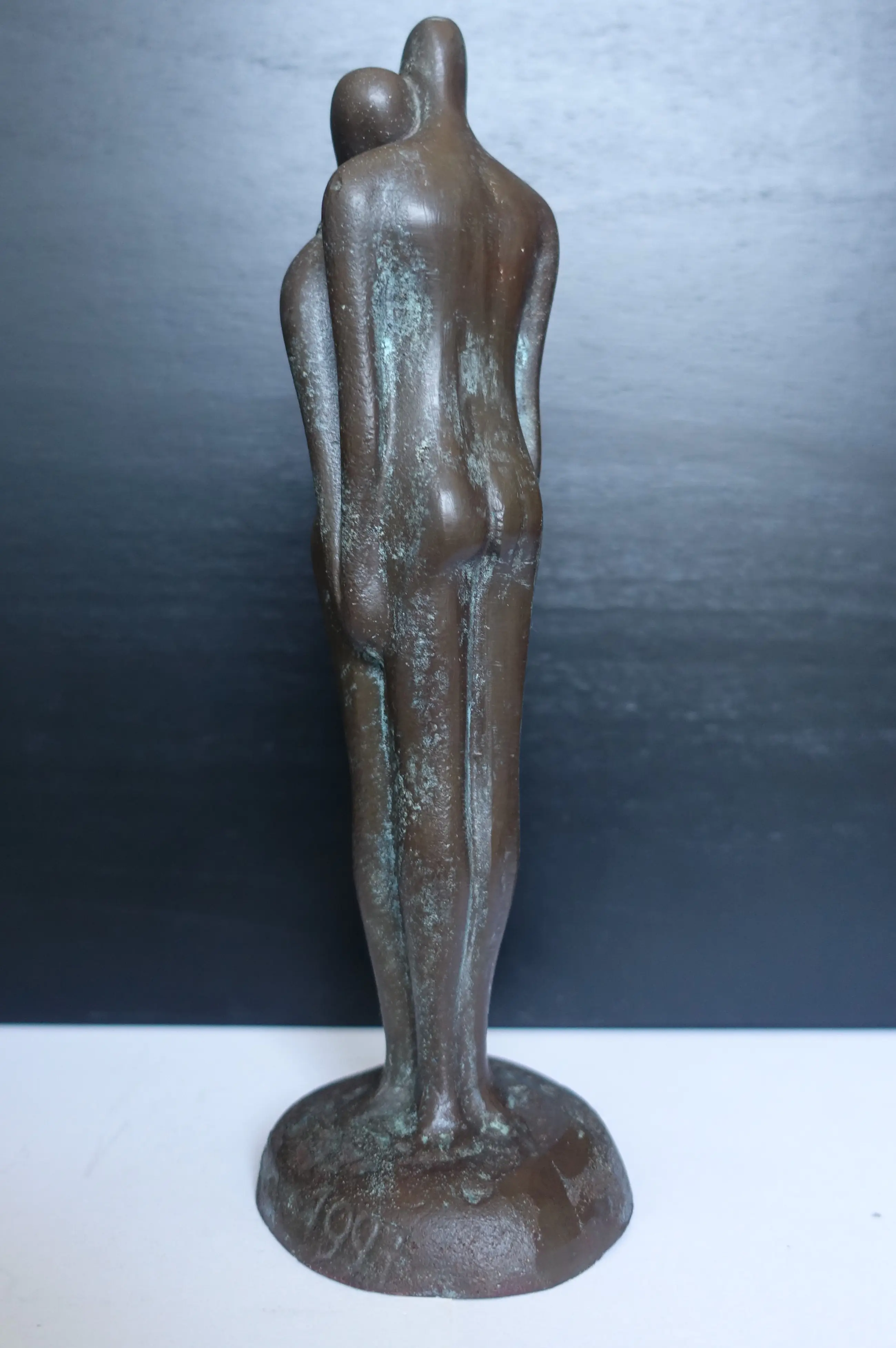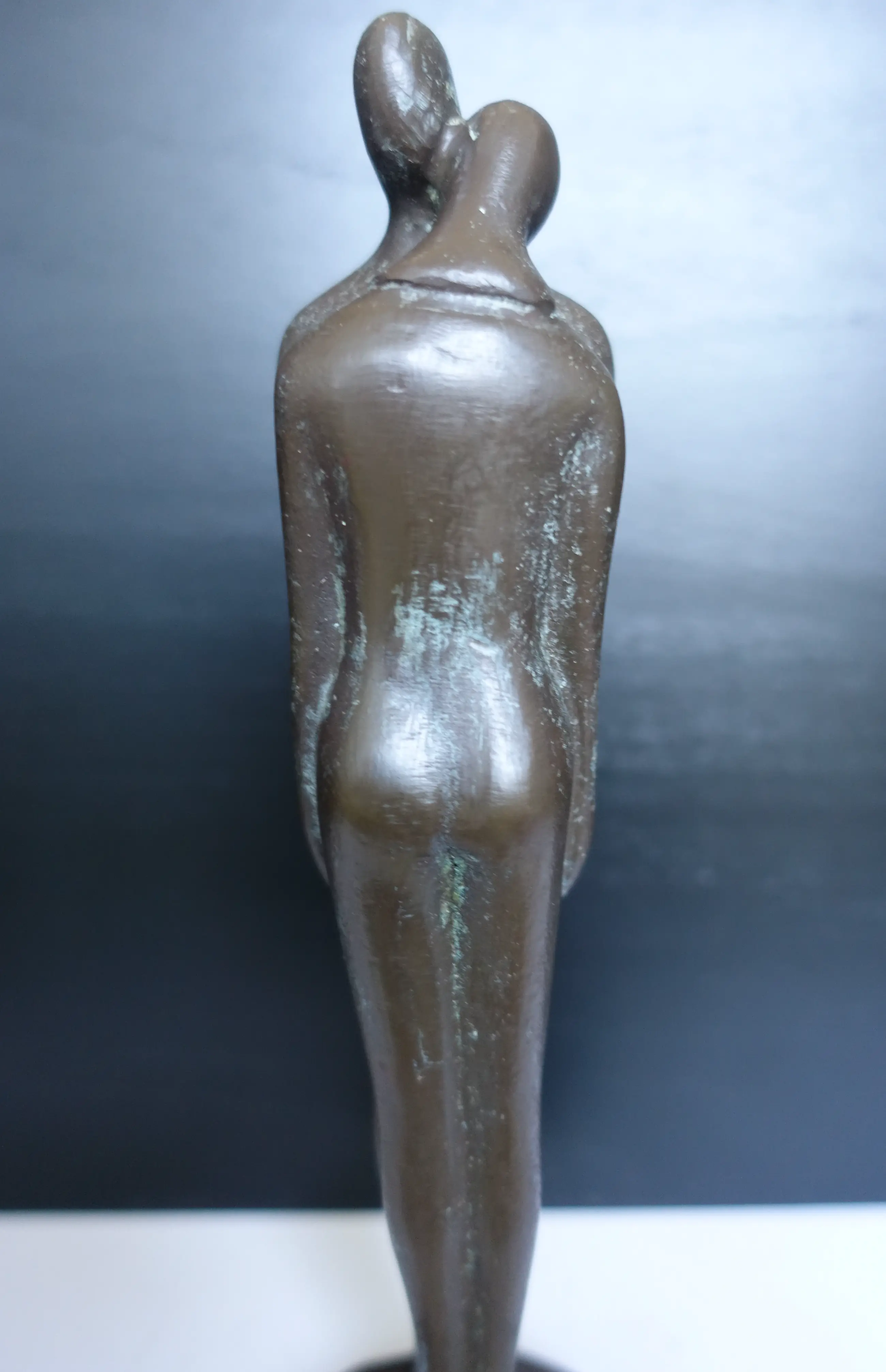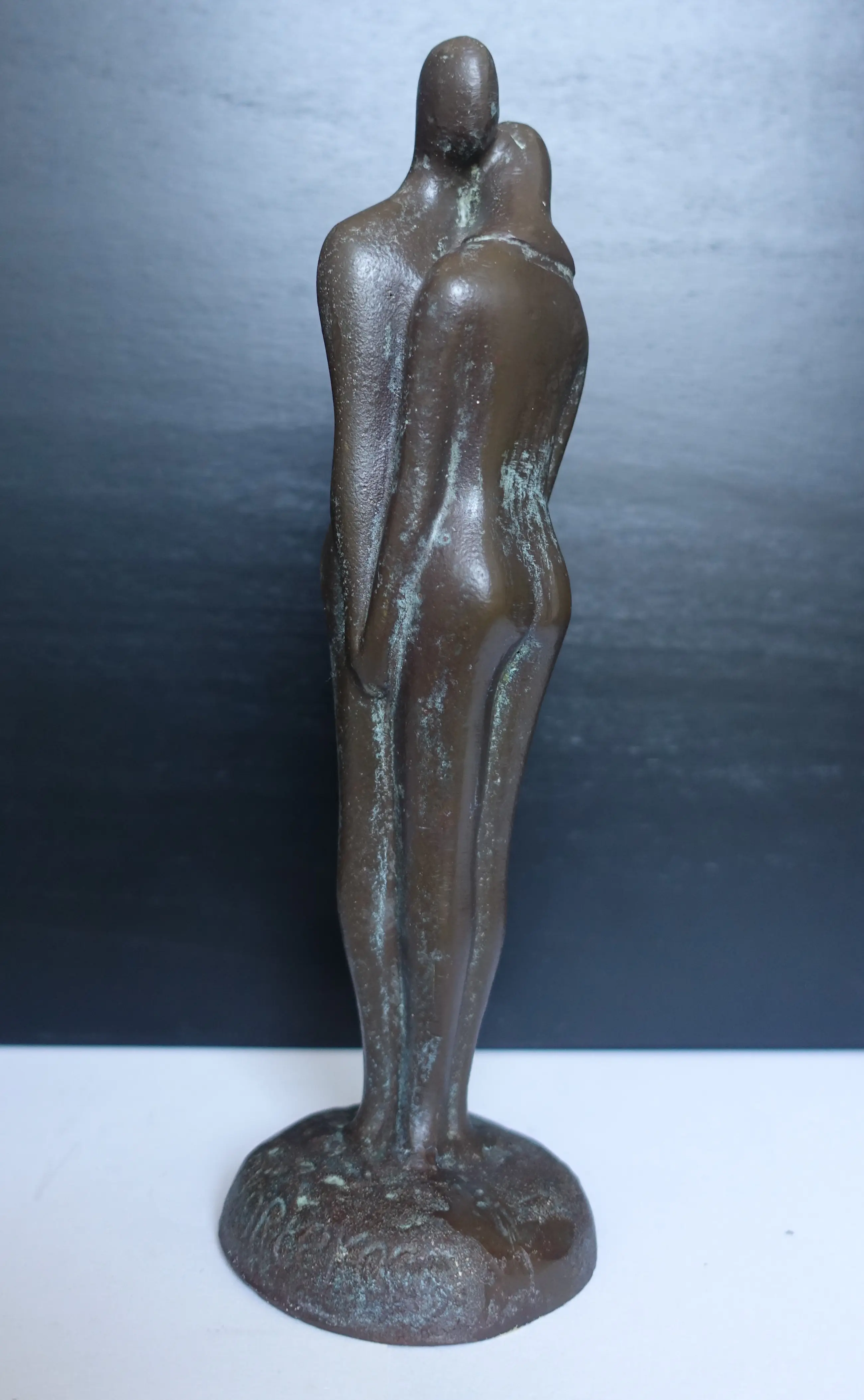 Zeer liefelijk massief bronzen sculptuur van man en vrouw in omhelzing.