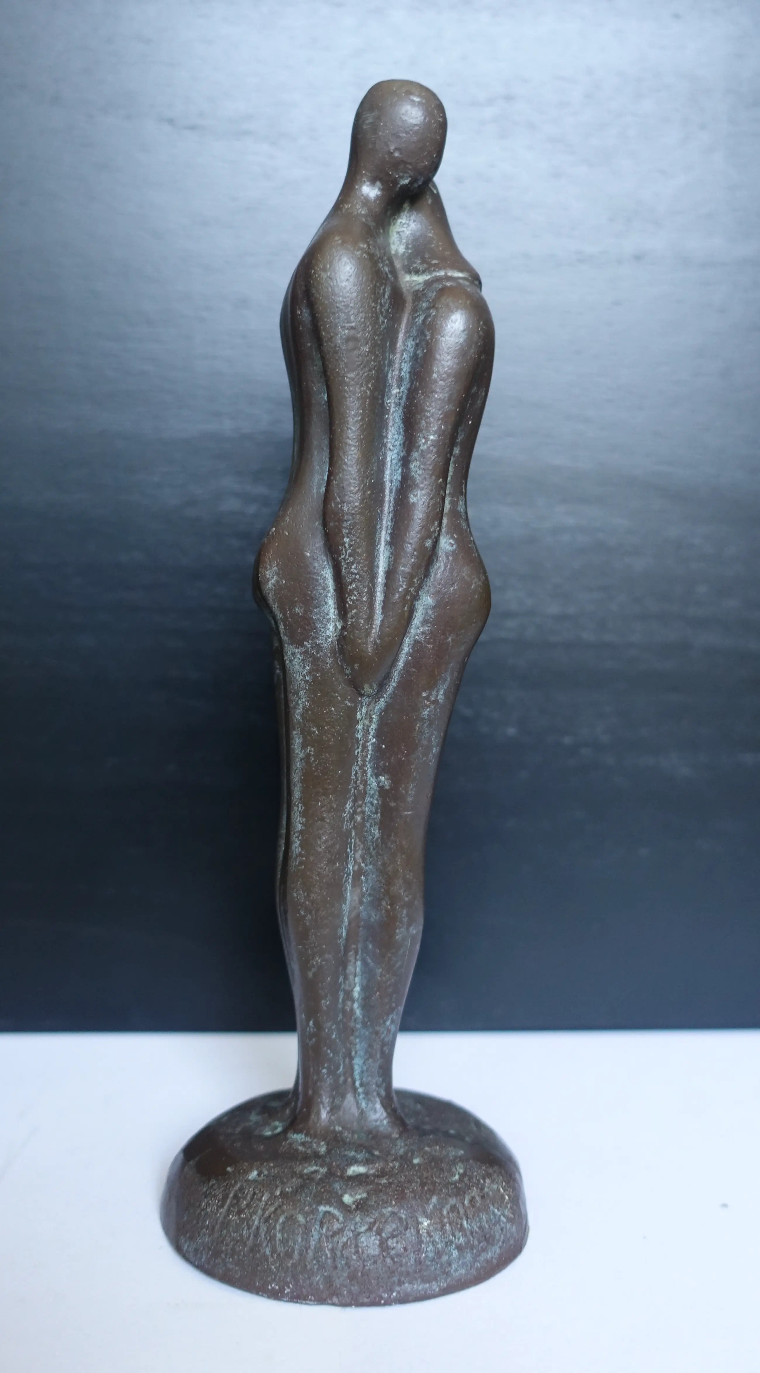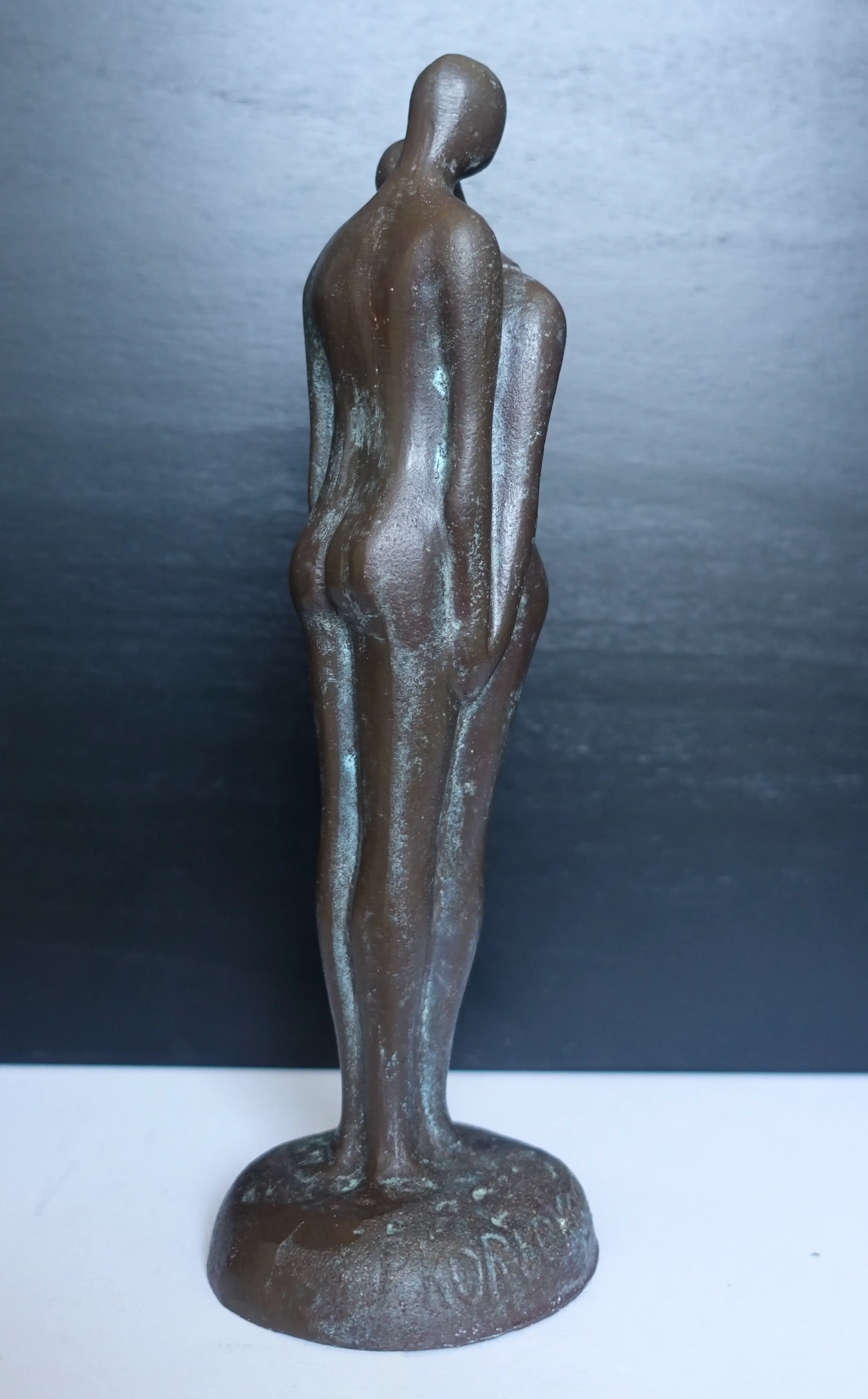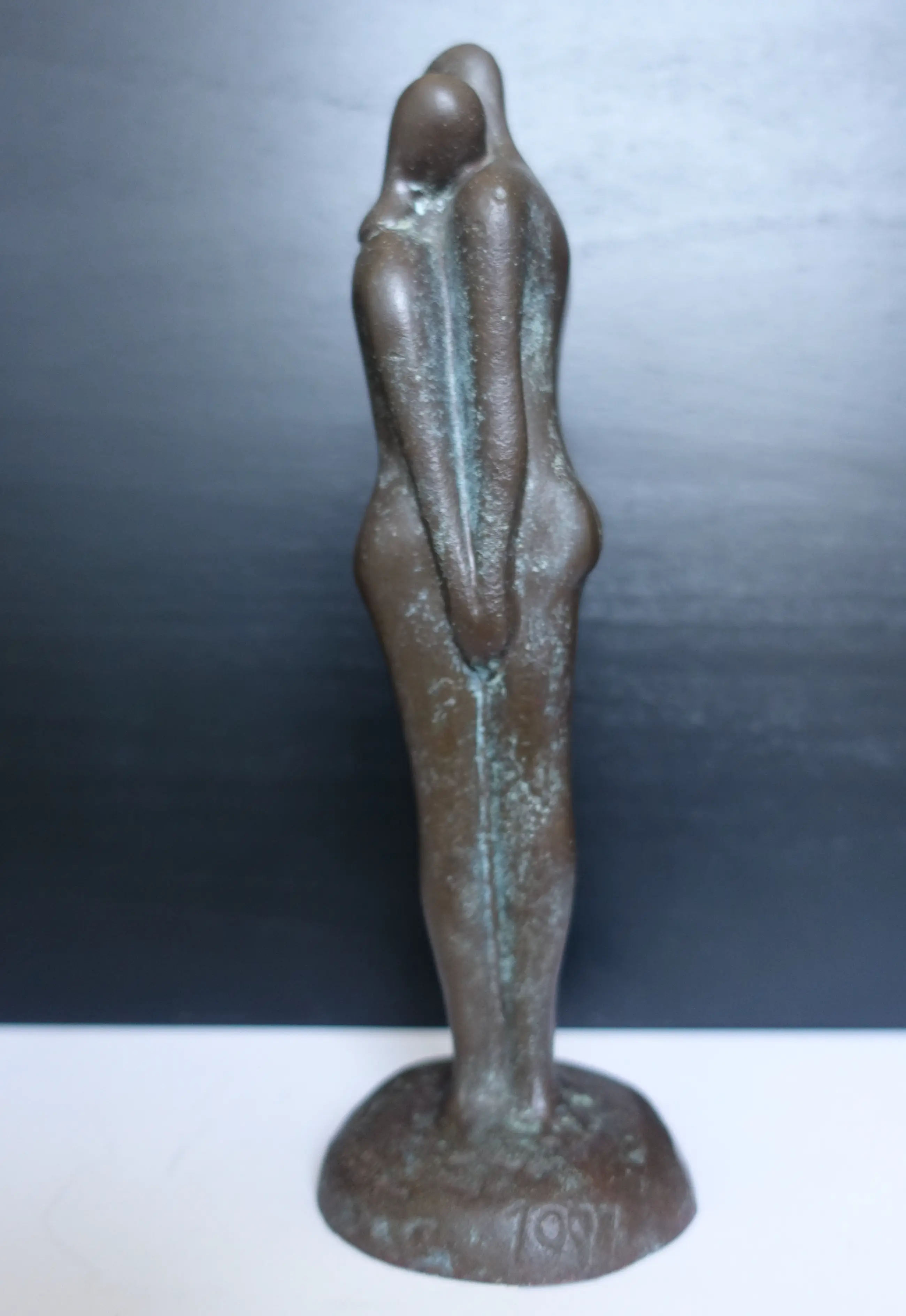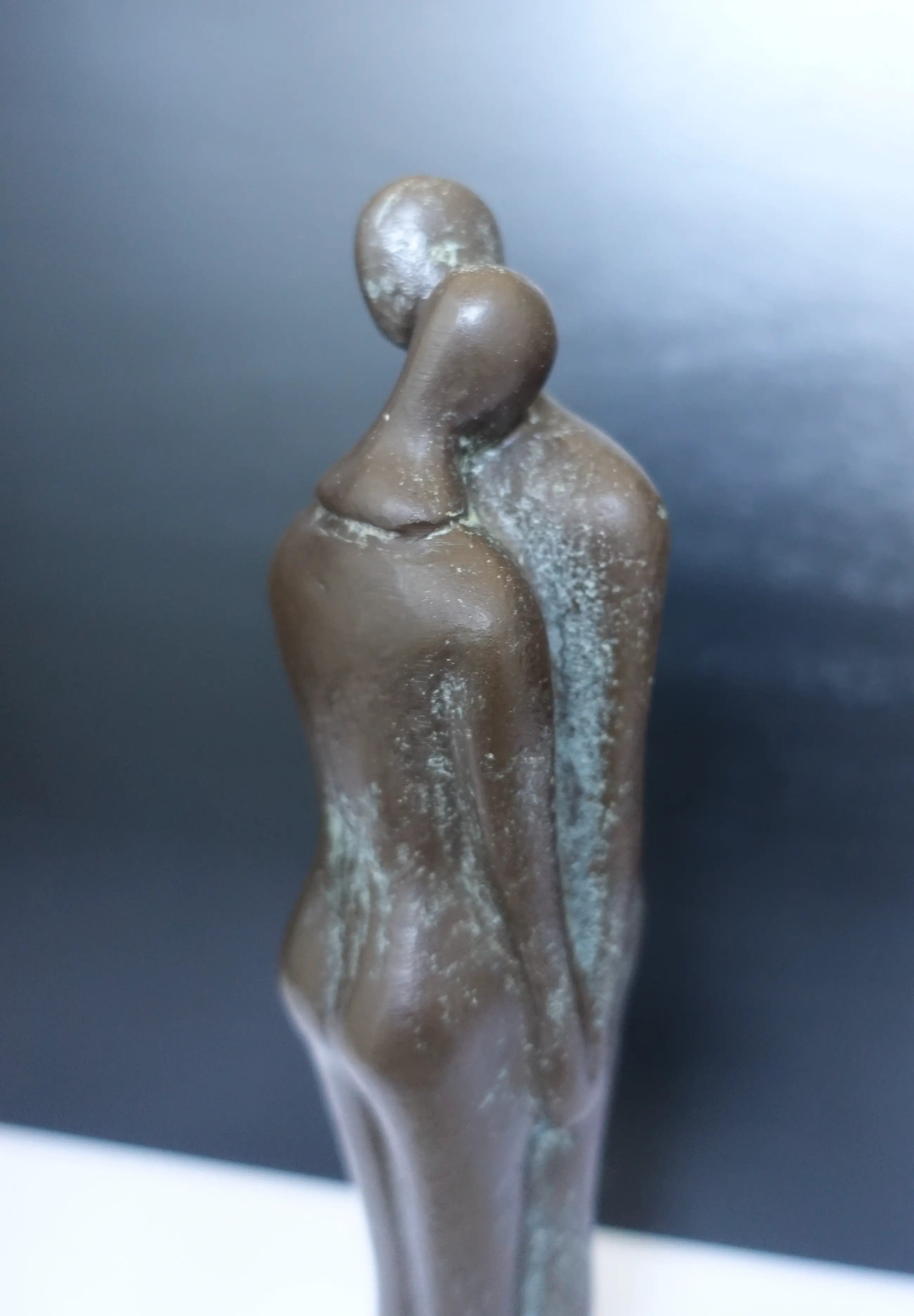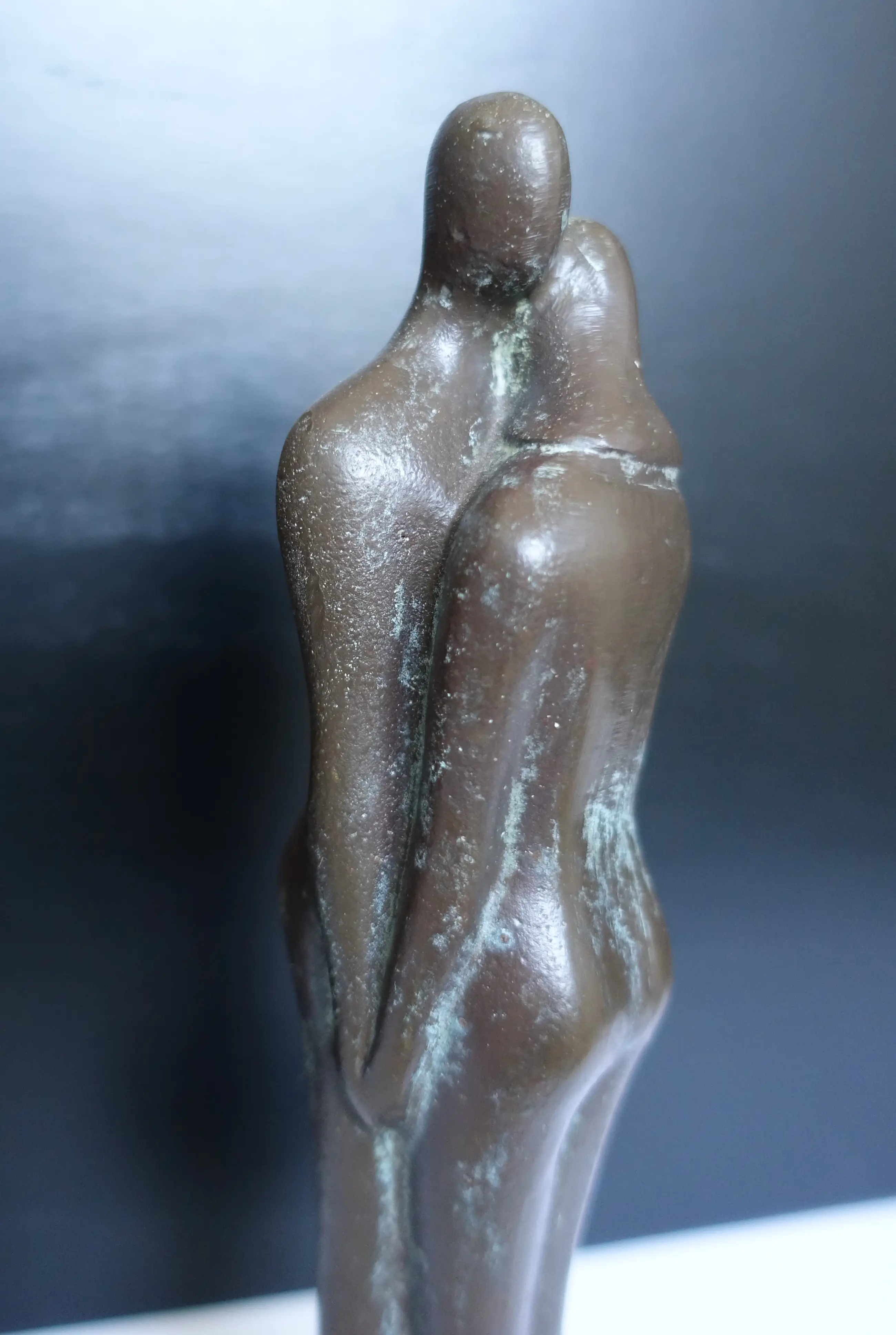 Zeer liefelijk massief bronzen sculptuur van man en vrouw in omhelzing.