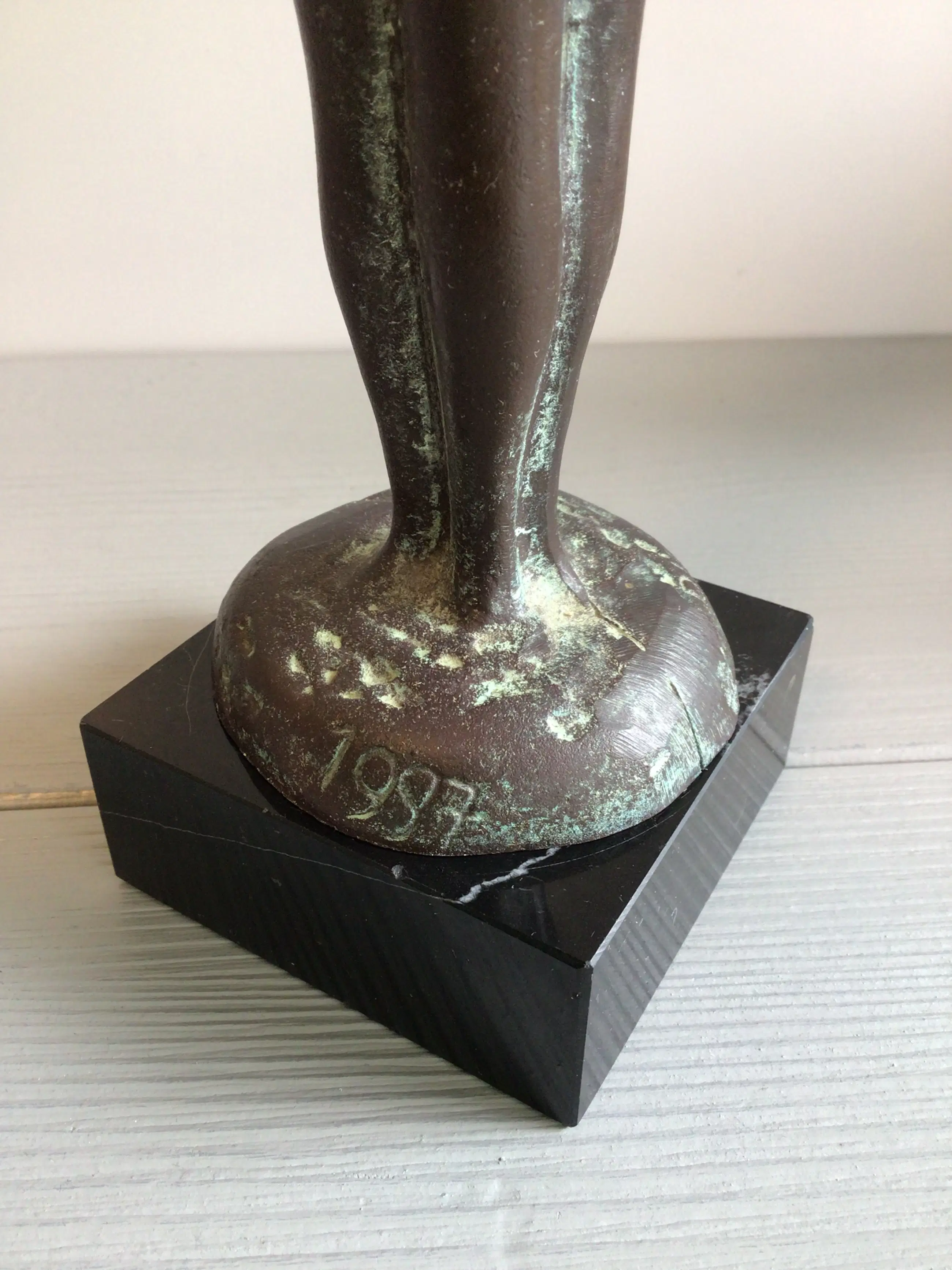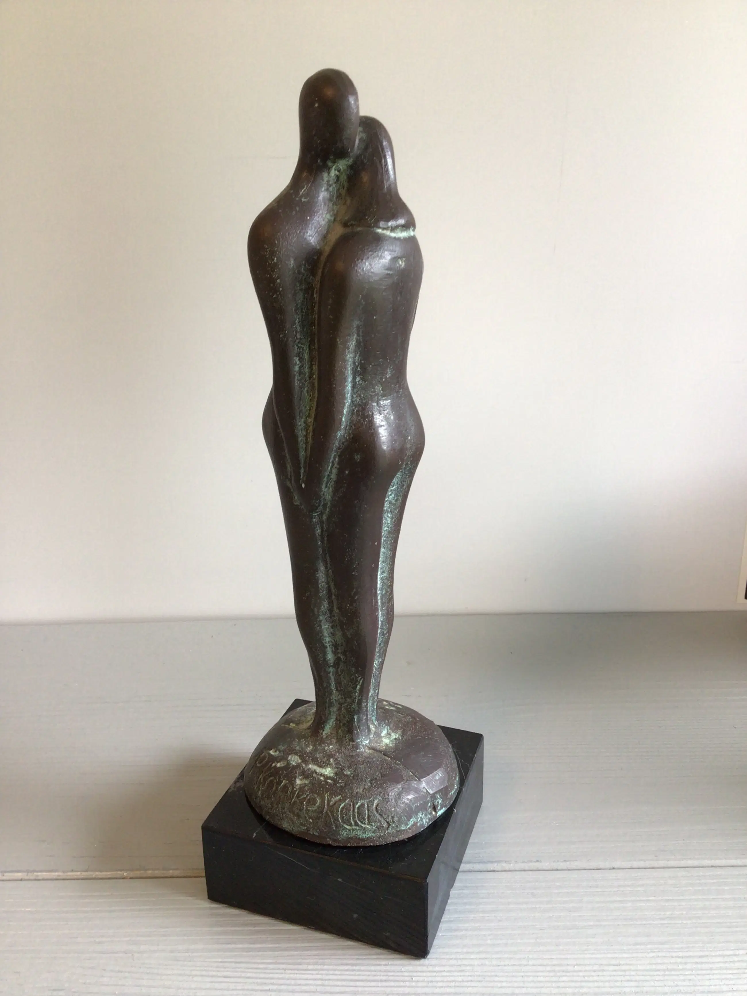 Zeer fraai vormgegeven sculptuur van een liefdespaar in een innige pose, een vertederend tafereel Kunstenaar: Pieter Kortekaas. Het beeld is gesigneerd: P Kortekaas - 1997 Het sculptuur staat los op de marmeren sokkel, zodat u zelf kunt bepalen of u deze wilt gaan gebruiken. Het beeld verkeert in goede staat en wordt zorgvuldig verpakt verzonden.
