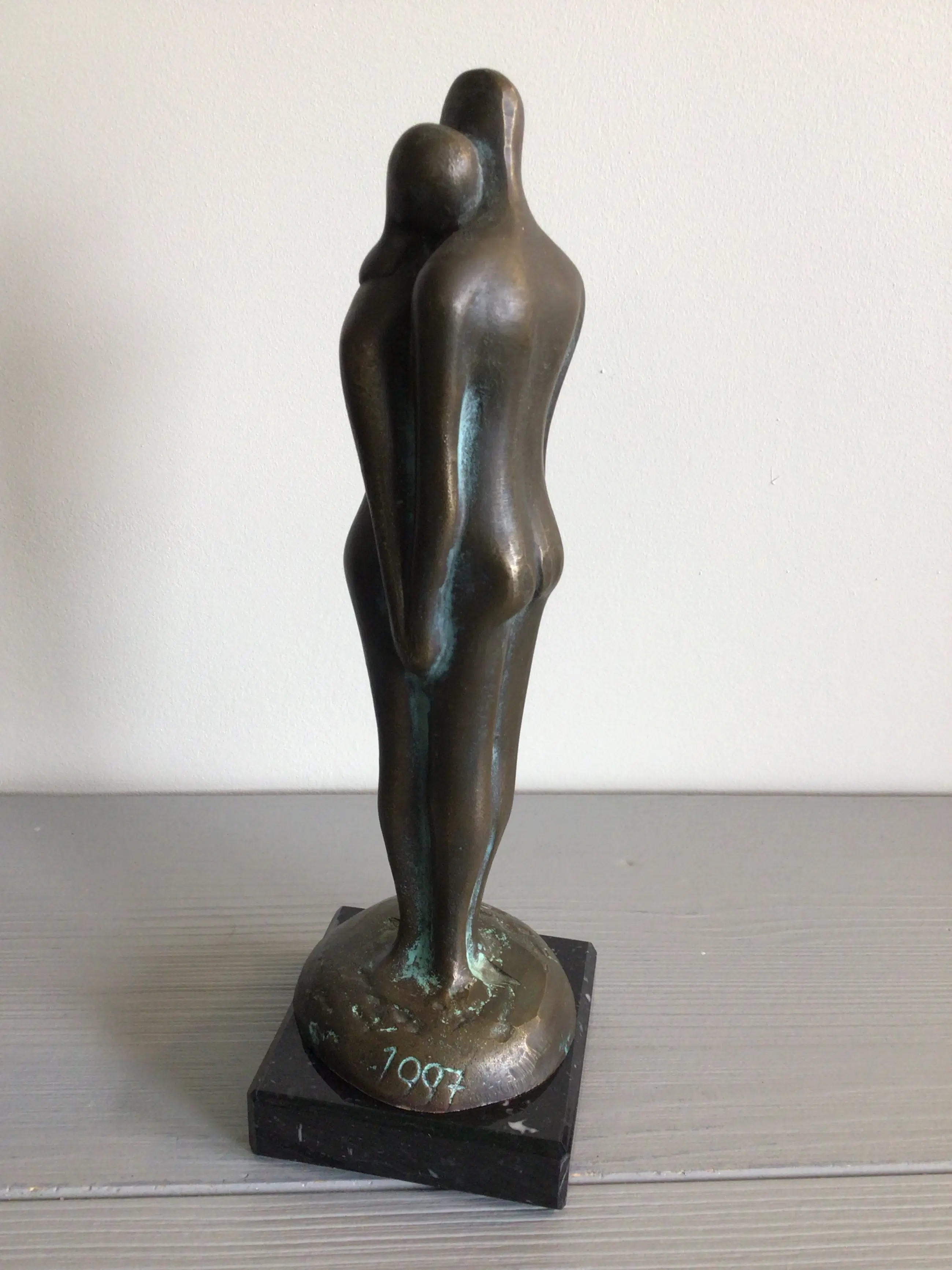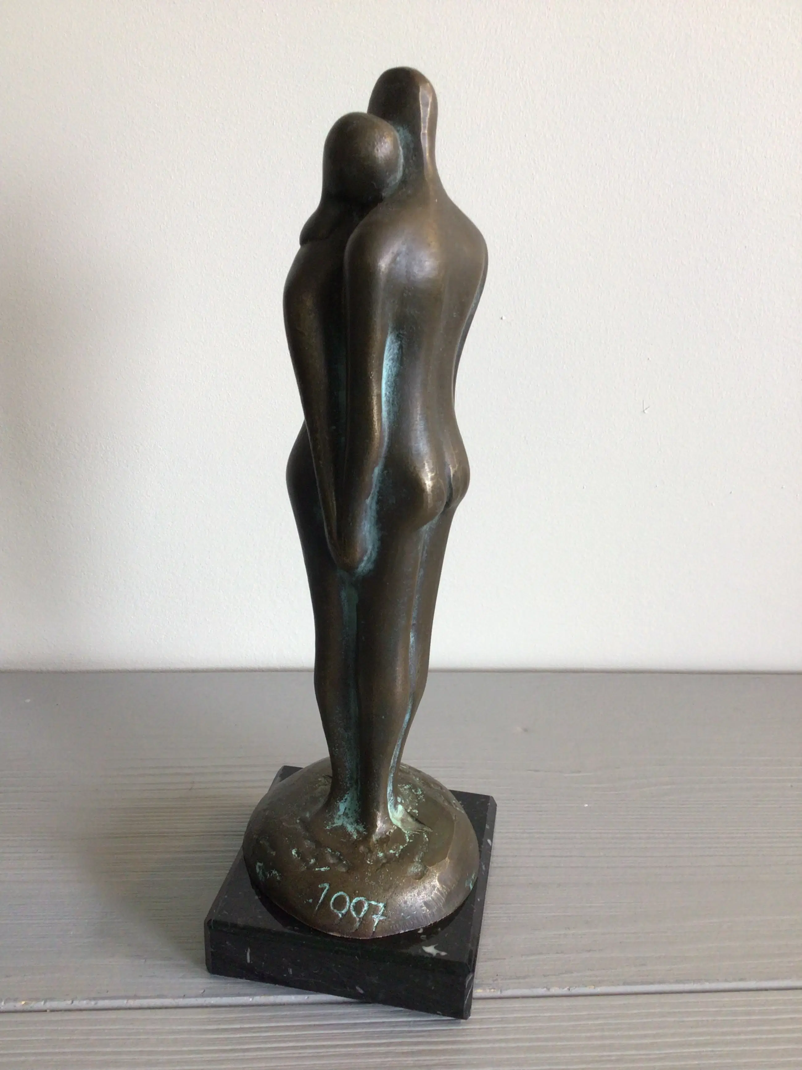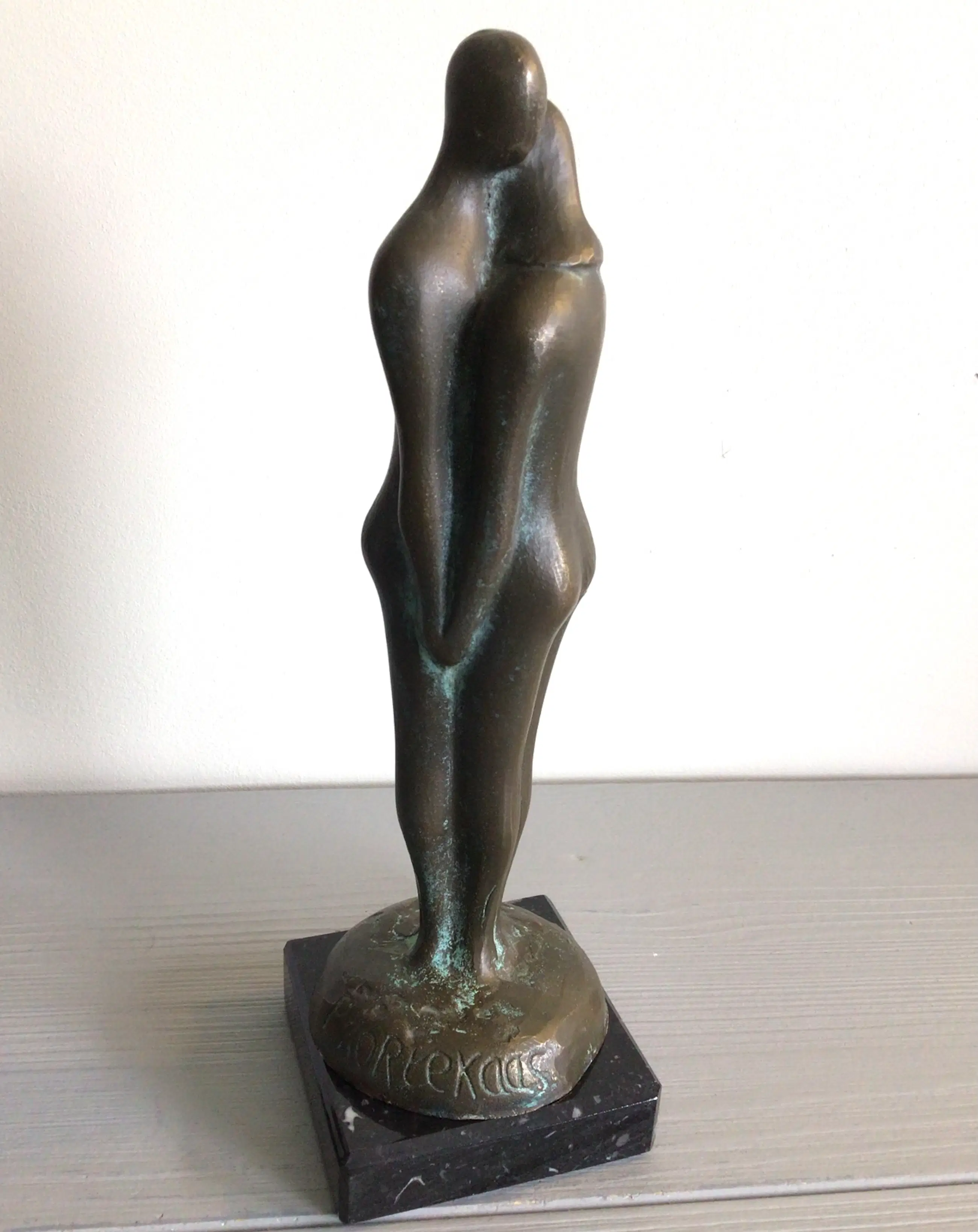 Zeer fraai vormgegeven sculptuur van een liefdespaar in een innige pose, een vertederend tafereel Kunstenaar: Pieter Kortekaas. Het beeld is gesigneerd: P Kortekaas - 1997 Het sculptuur staat los op de marmeren sokkel, zodat u zelf kunt bepalen of u deze wilt gaan gebruiken. Het beeld verkeert in goede staat en wordt zorgvuldig verpakt verzonden.