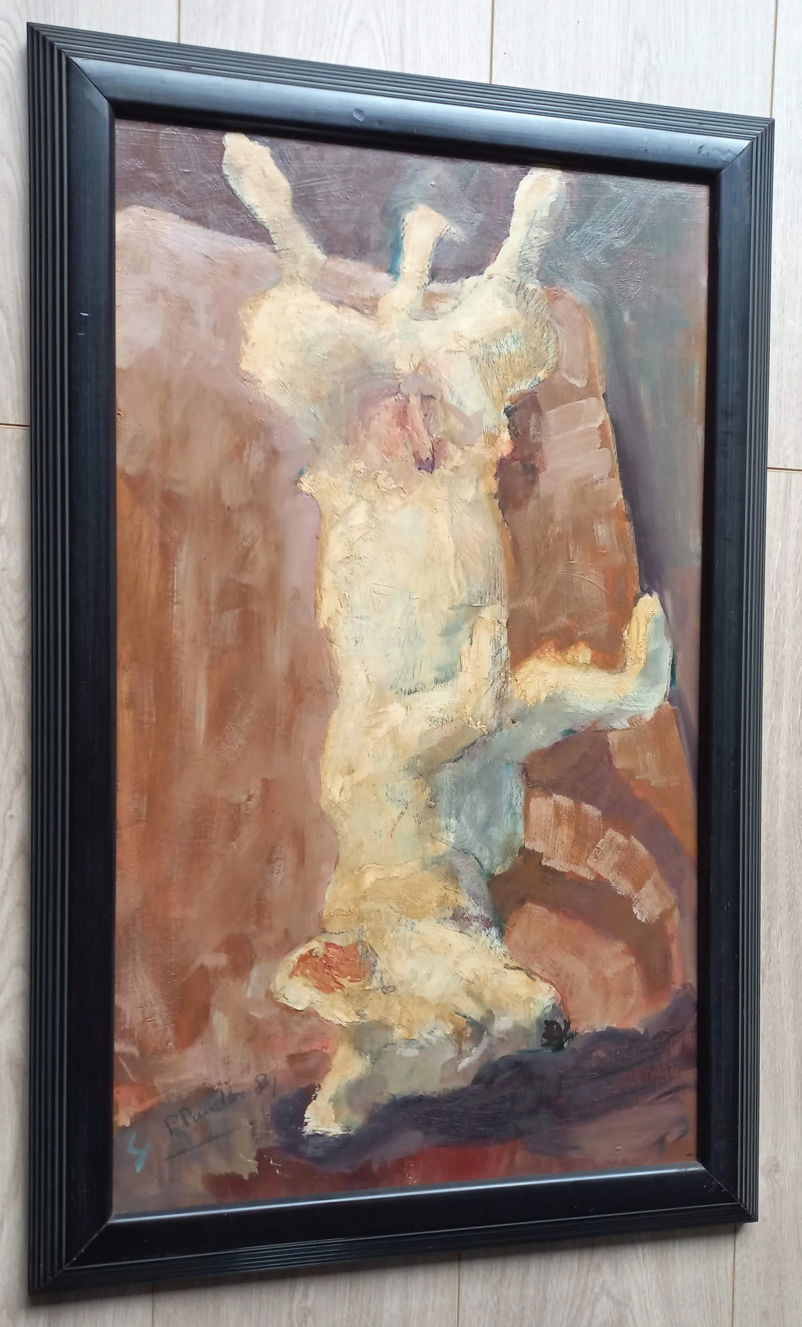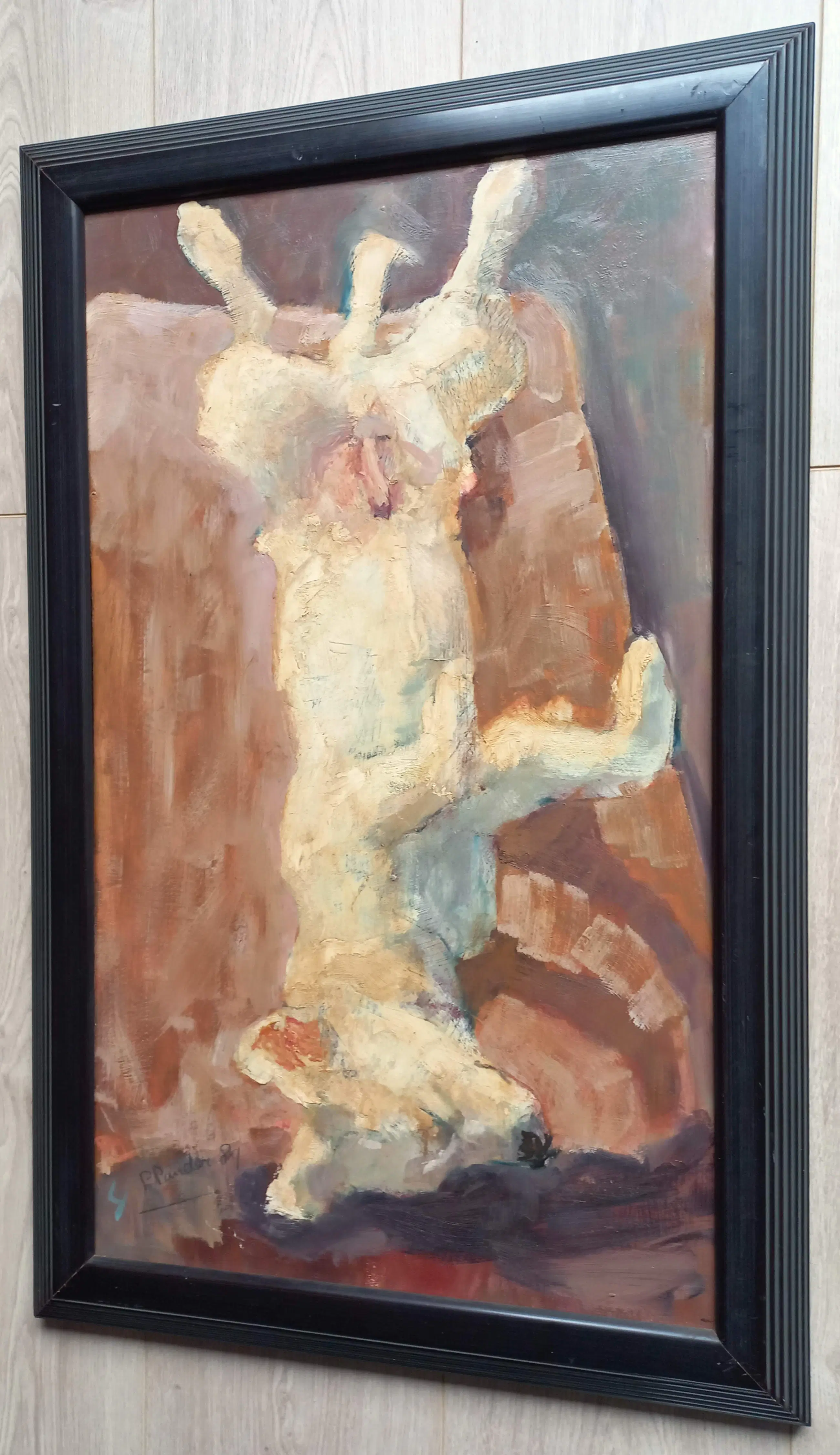 Karakteristiek, liefdevol portret van een hond door Pieter Pander. Olieverf op hardboard, gesigneerd en gedateerd (‘89) linksonder. In eenvoudige houten lijst, in zeer goede conditie. Geschatte galerieprijs: 3500-4500 euro.