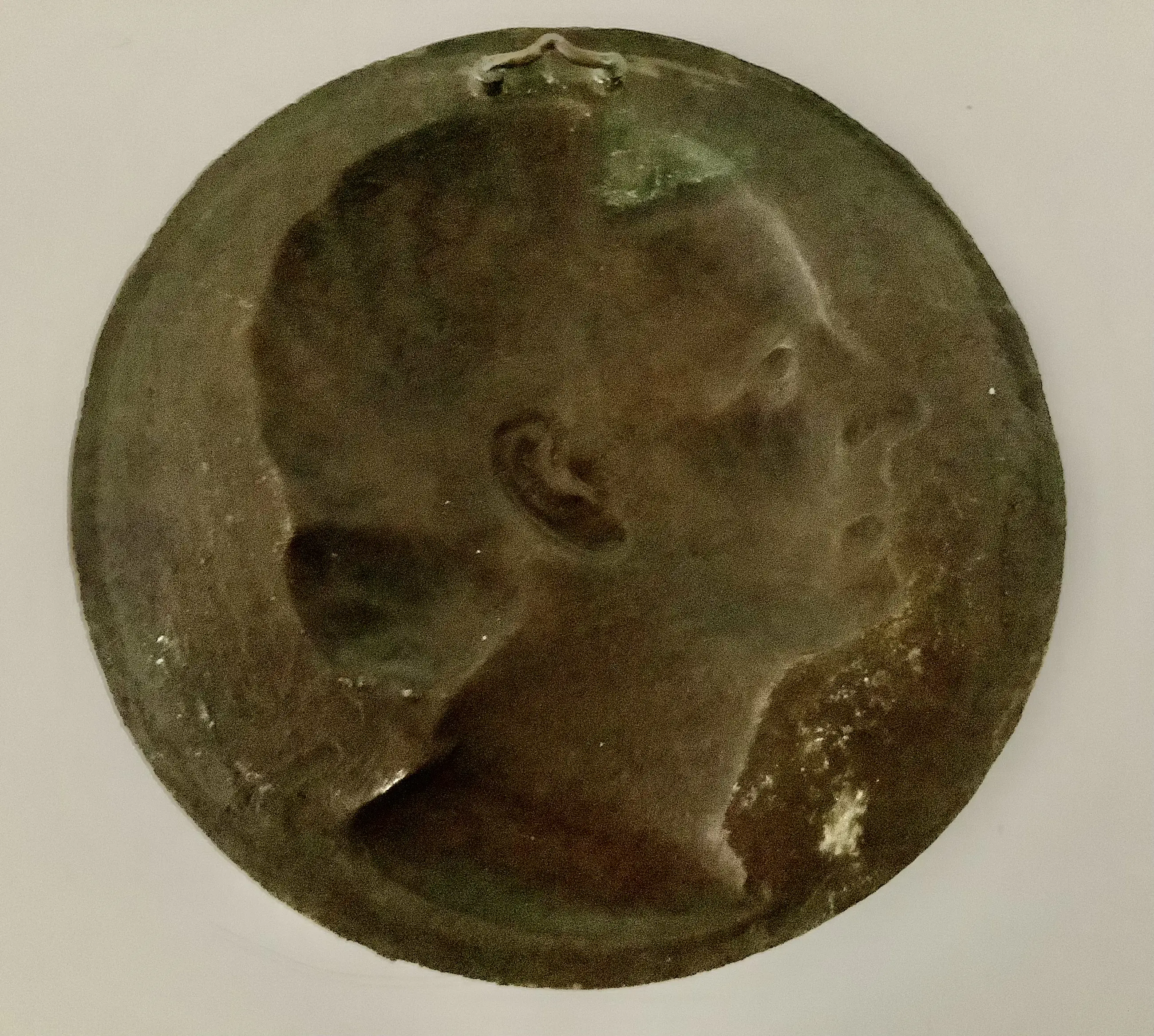 Met eerbied weergegeven portret van Juliana. Fraaie textuur, met ophangbeugel. Staat afgebeeld in zijn monografie.
