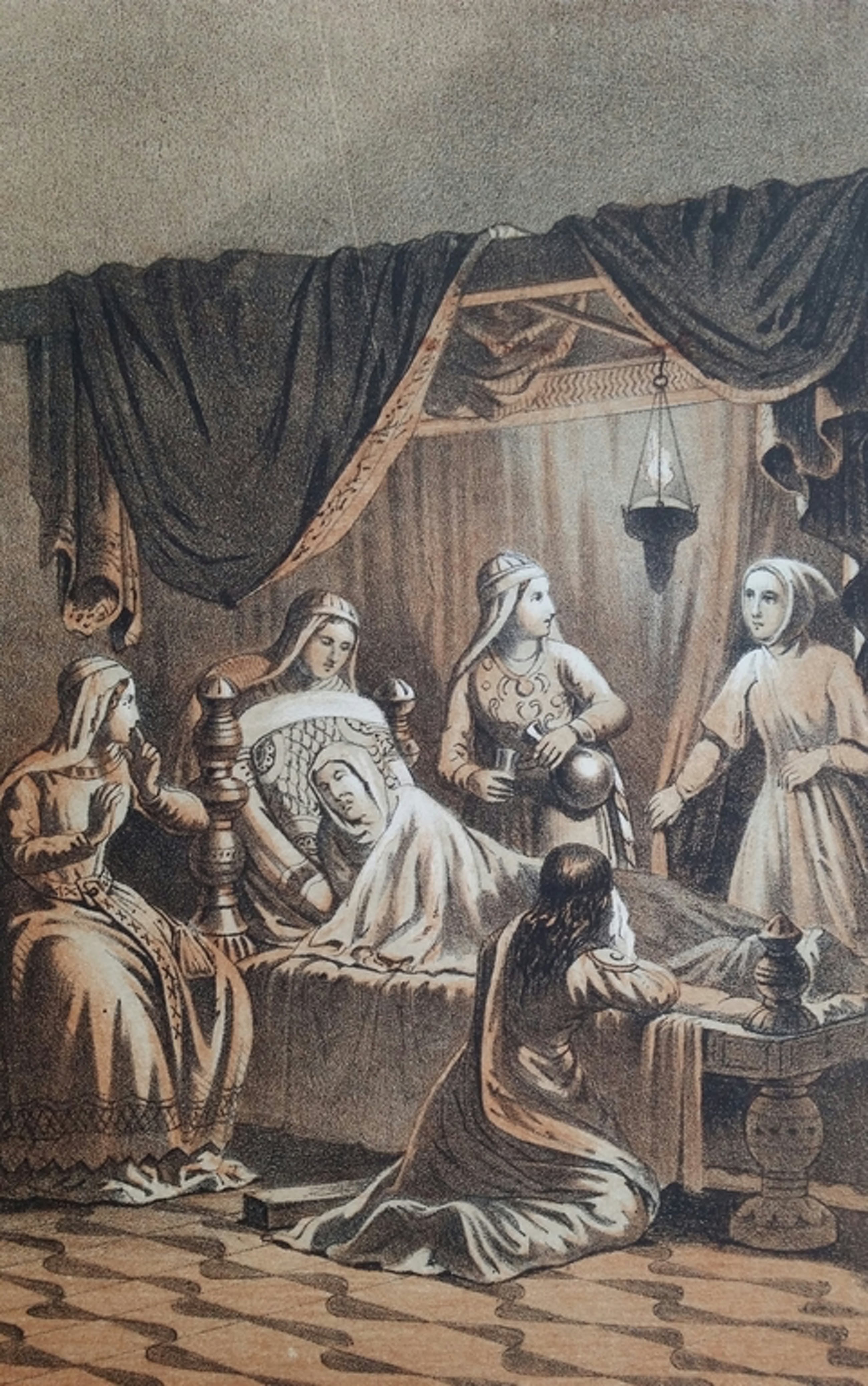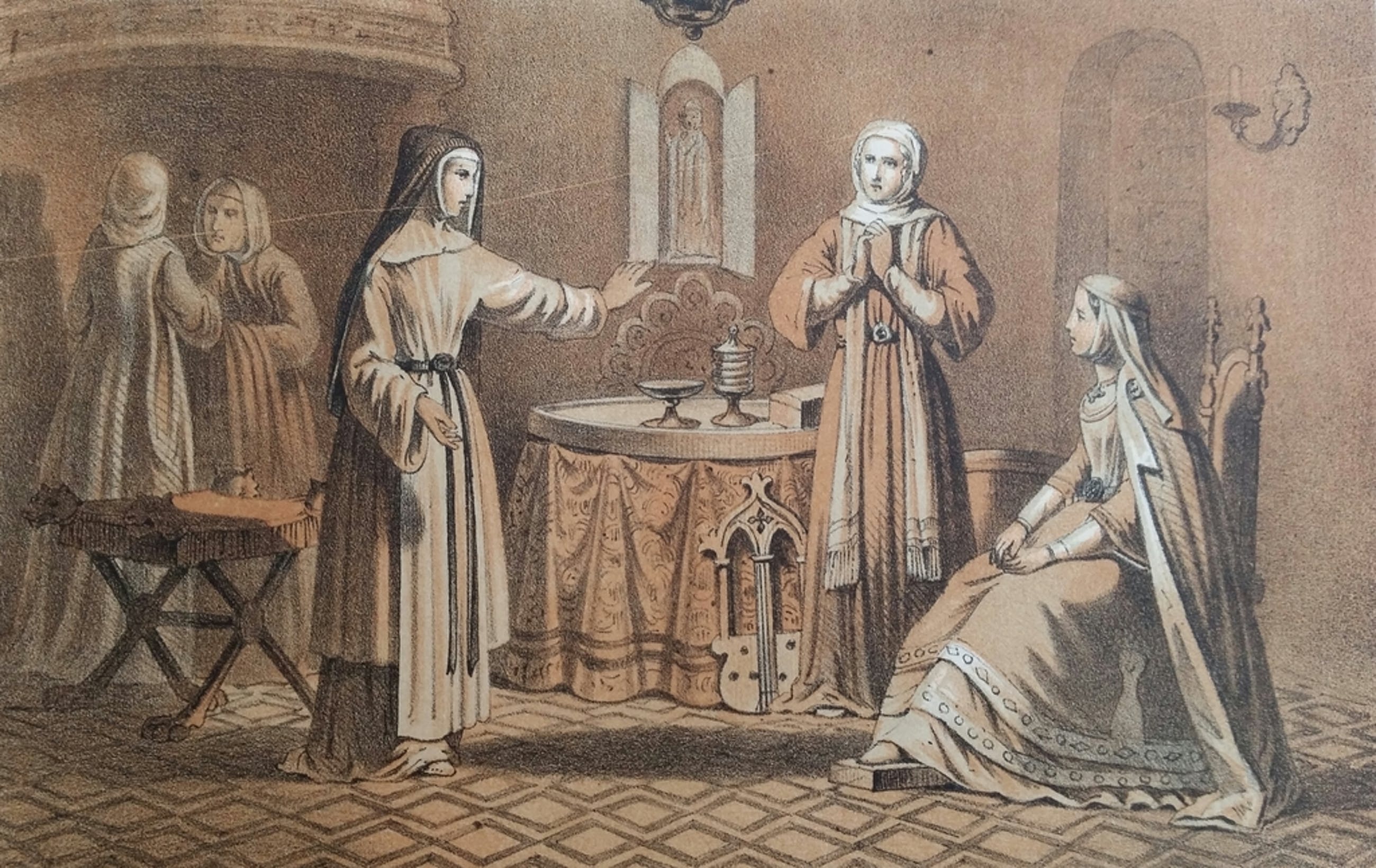 Foto 4: P.W.M. Trap (steendruk); Vrouwengewaad (12e eeuw), naar een werk van n. v.d. Kellen