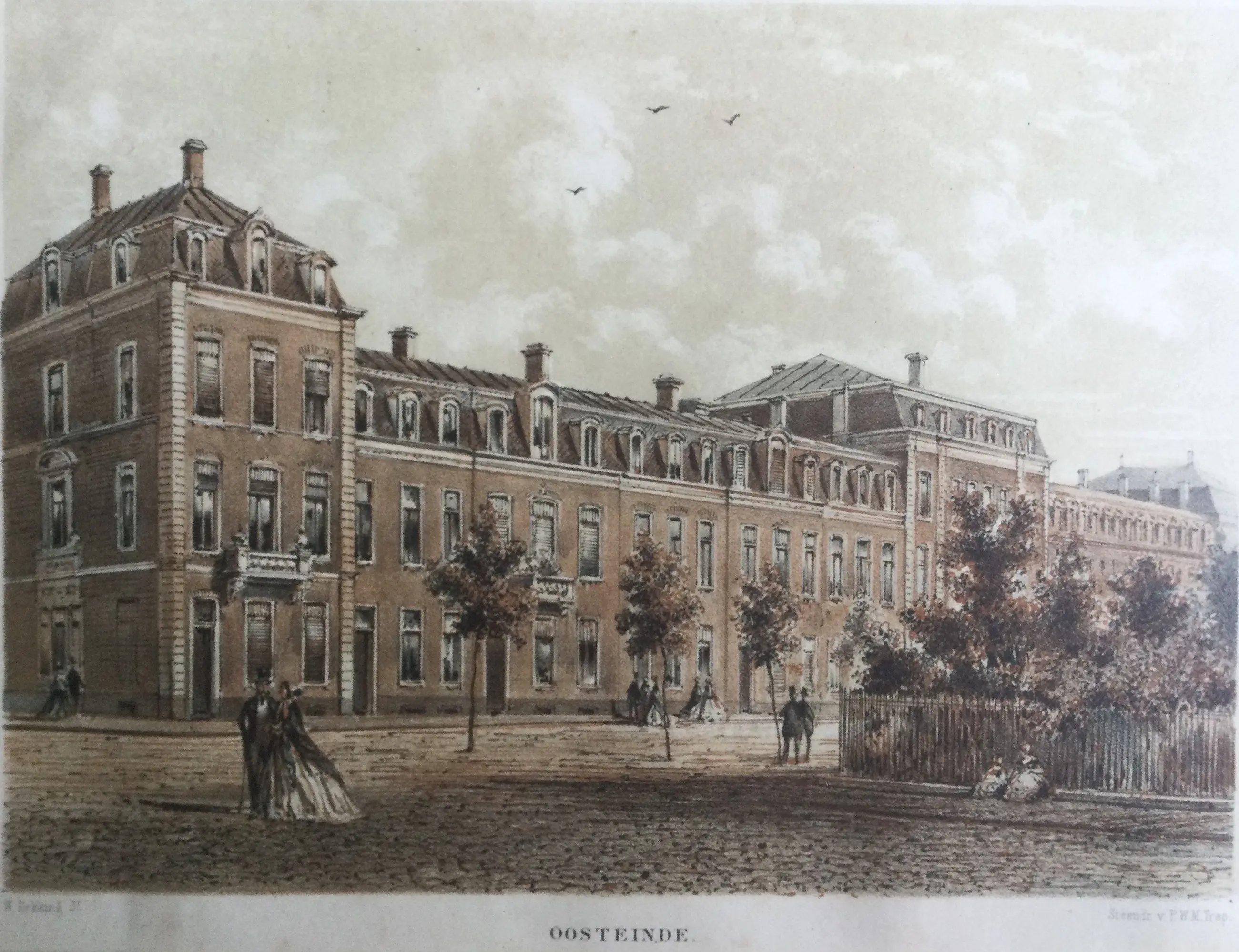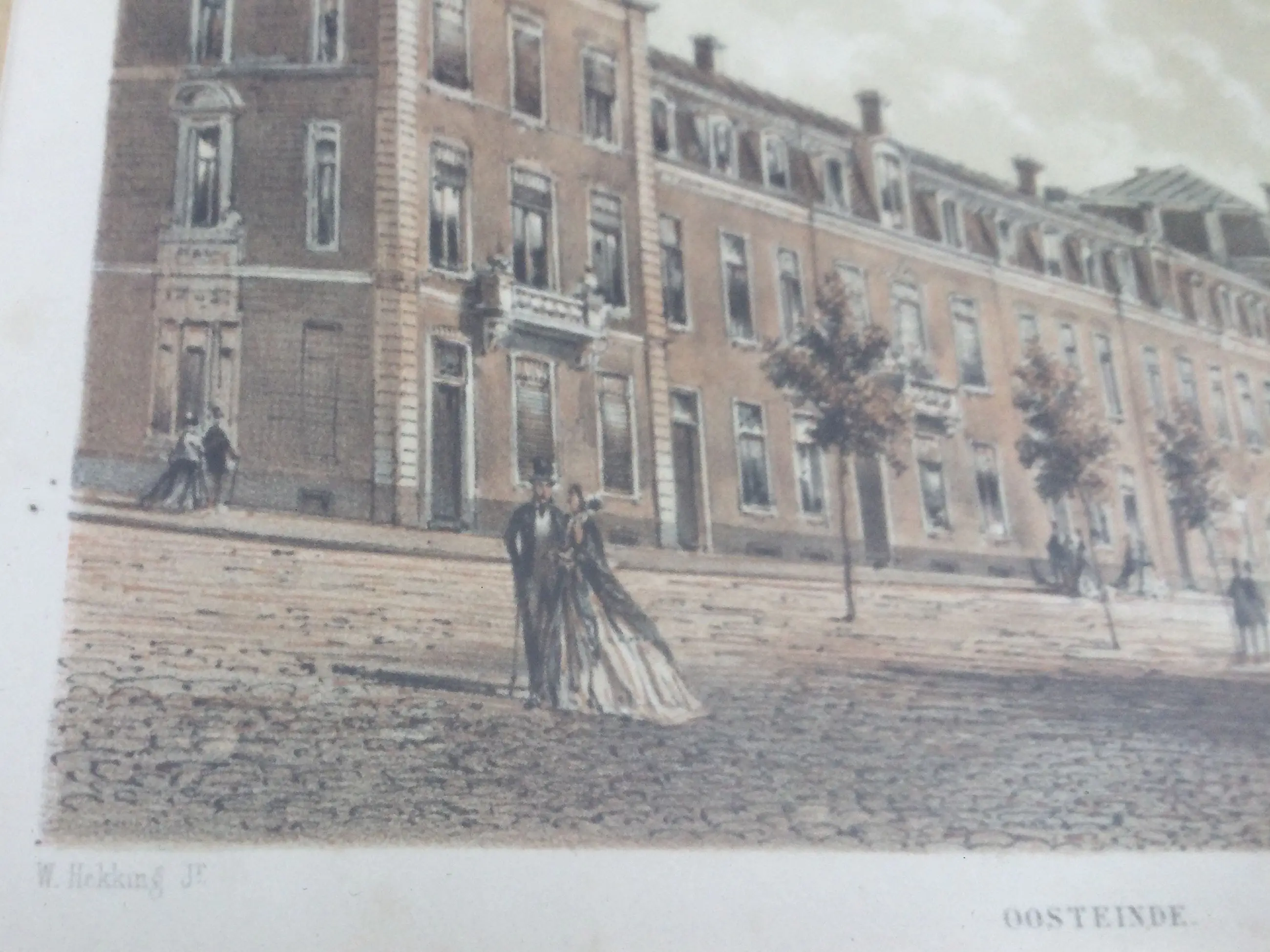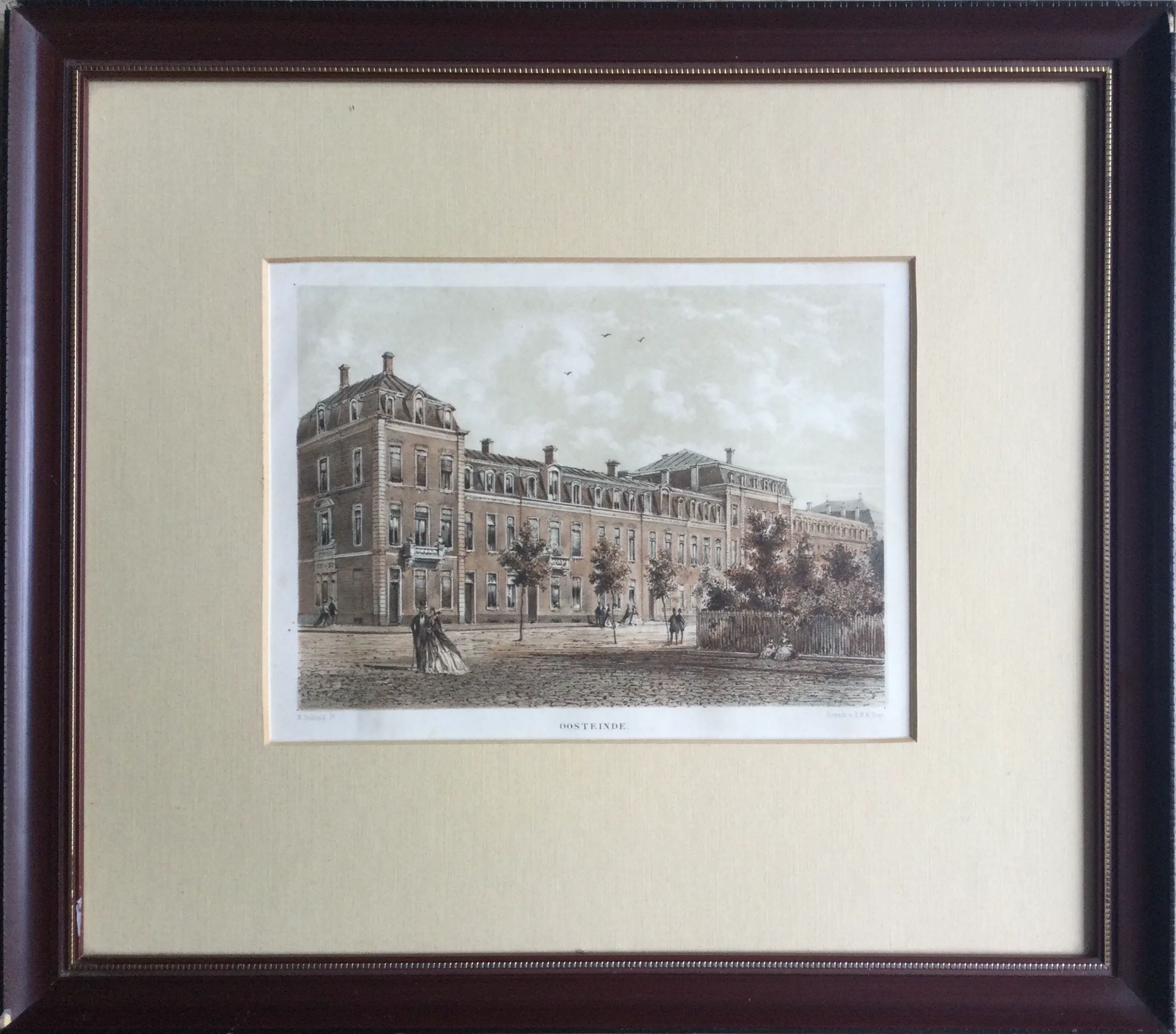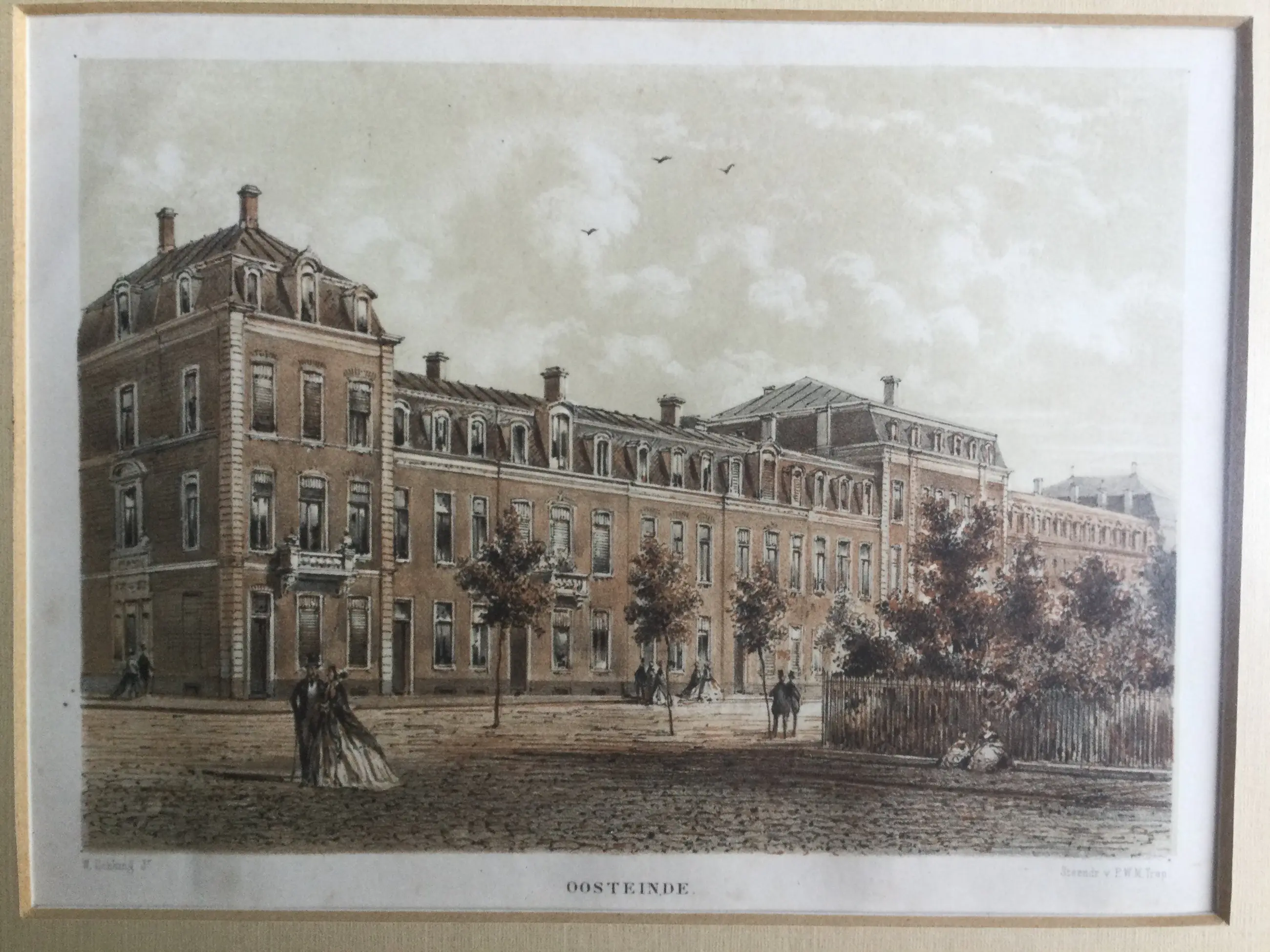Fraaie lithografie door P. W.M. Trap (1821-1905) naar een tekening van Willem Hekking jr. Uitgegeven in 1869 te Amsterdam door G.W. Tielkemeijer in Amsterdam in Schetsen door P.H. Witkamp. Ingelijst in notenhouten lijst met ontspiegeld glas.