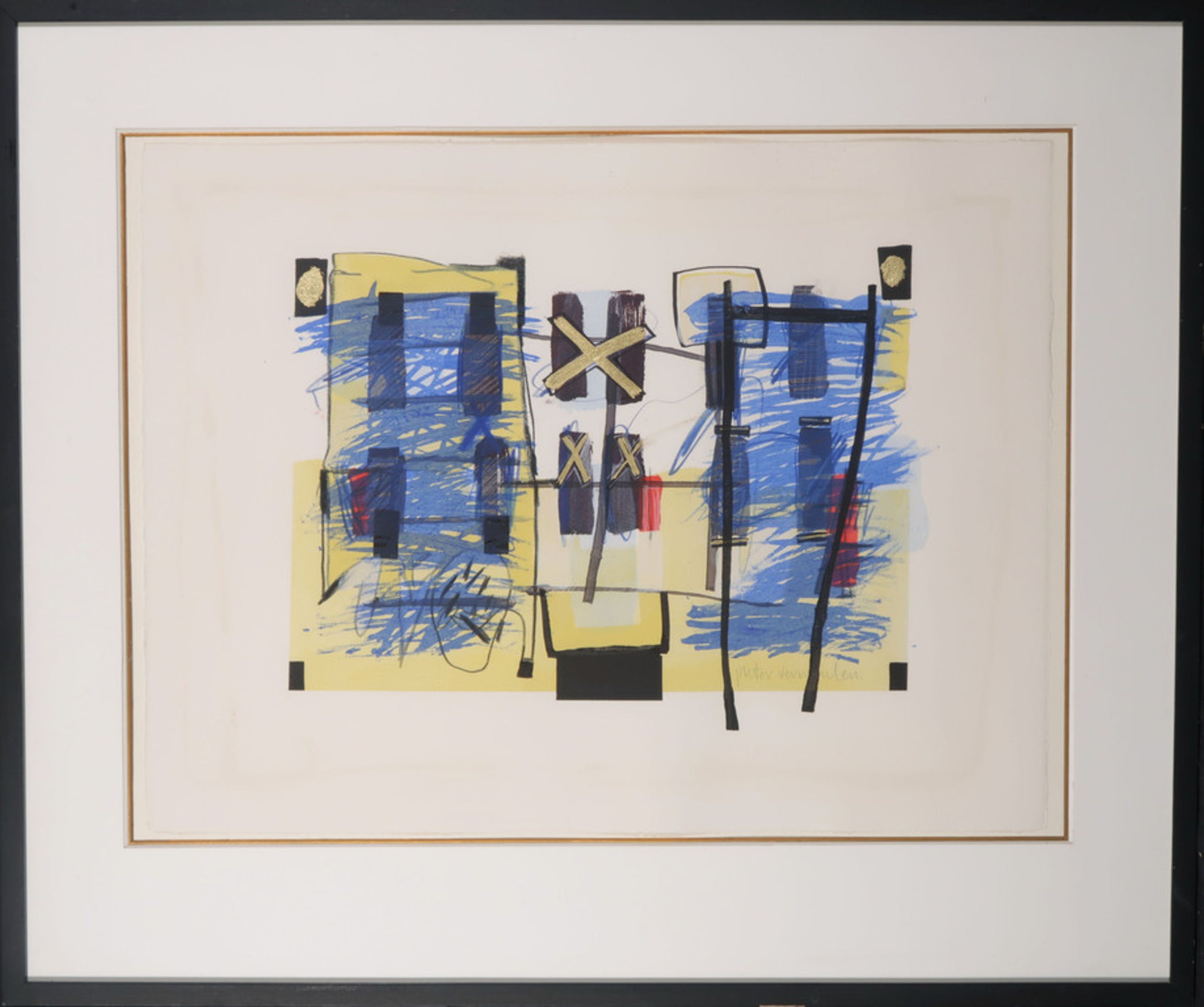 Conditie kunstwerk: Beeld in zeer goede staat. Maar door de witranden zijn lijmlijnen zichtbaar geworden (zie foto's). Hier zou een passe-partout overheen geplaatst moeten worden. Vandaar de lage inzet.