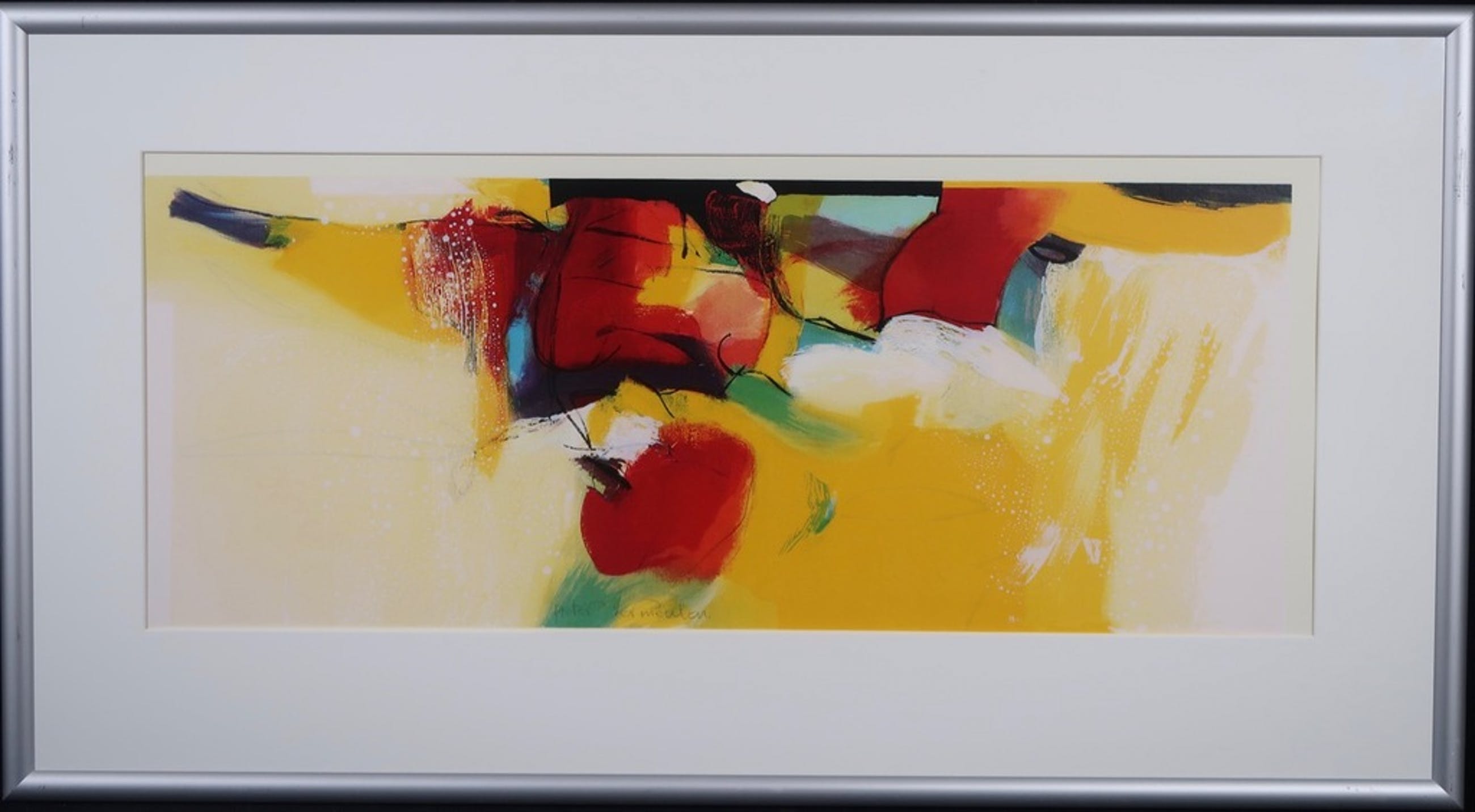Conditie kunstwerk: In zeer goede staat. Het werk is een beetje gezakt achter het passe-partout