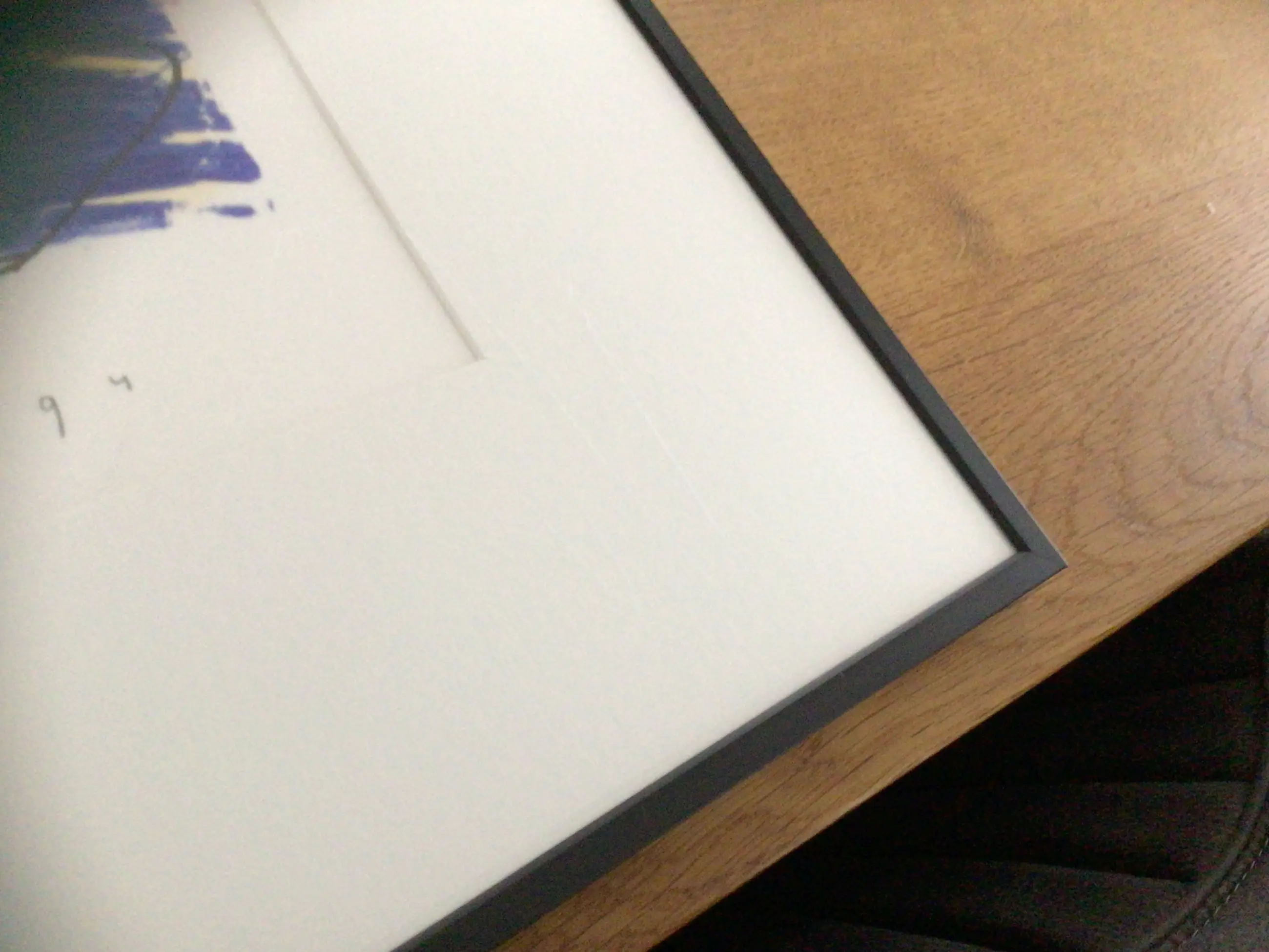 Lijst is aluminium met kunststof plaat/geen spiegeling. Rechtsonder zitten wat kleine krasjes op de plaat. Alleen vanuit bepaalde hoek te zien. Alleen ophalen.