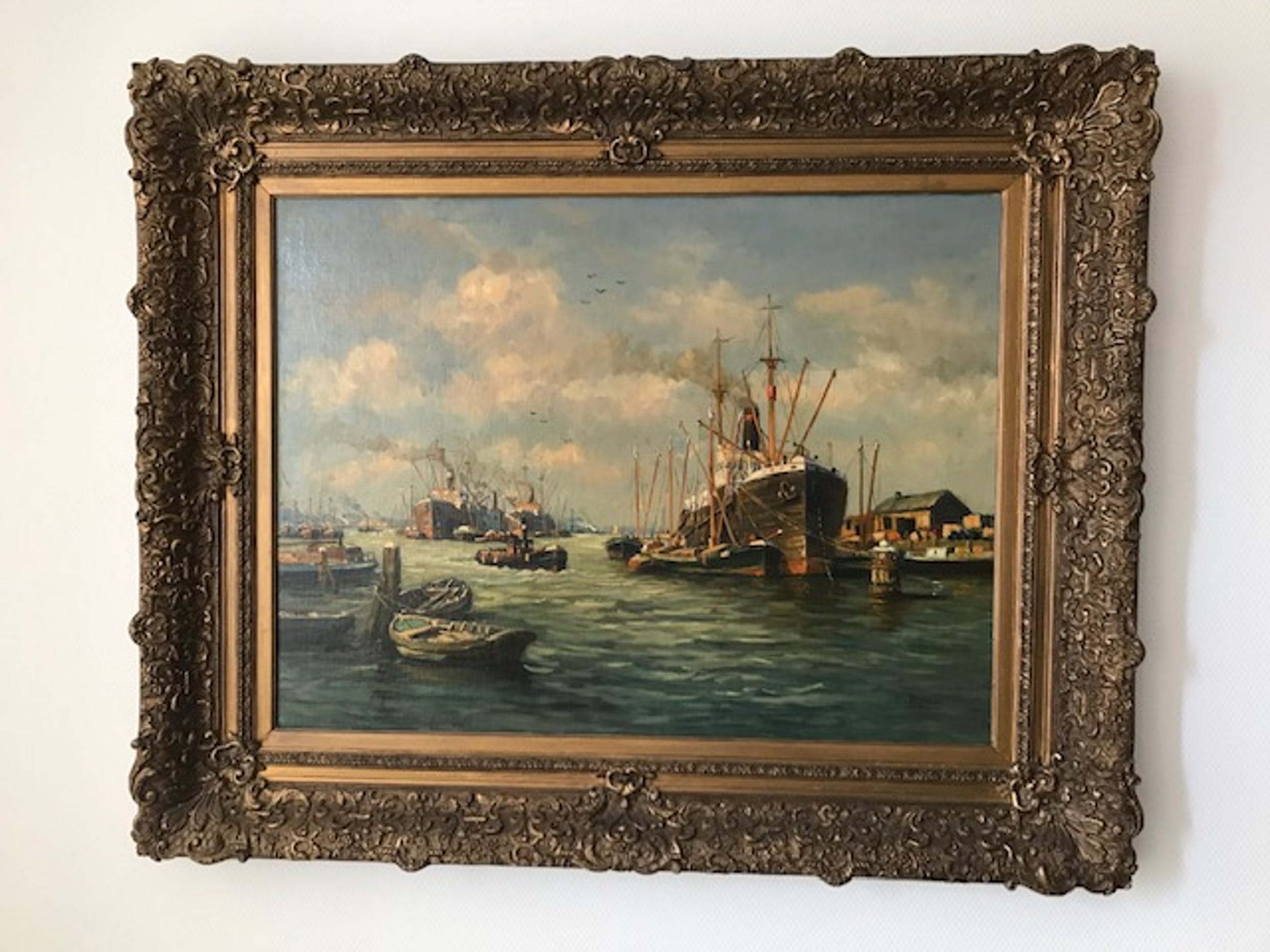 Havengezicht PJA Wagemans, in goede staat, Olieverf, schoongemaakt ca. 2007 door erkend restaurateur.