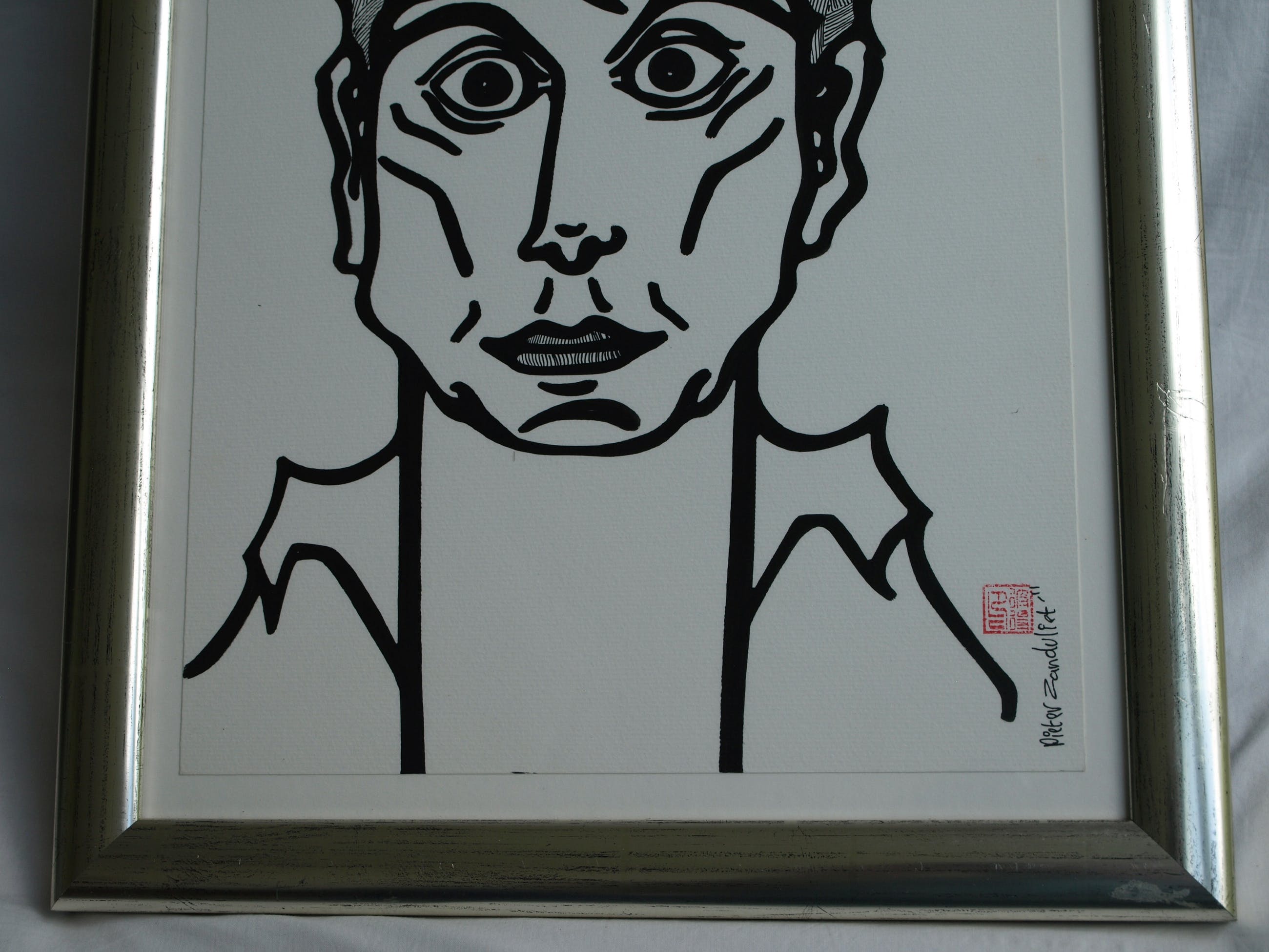 De tekening is in zeer goede staat. De lijst heeft slijtplekjes. Zie ook de foto’s. Kan zo aan de muur. | |||||||||||