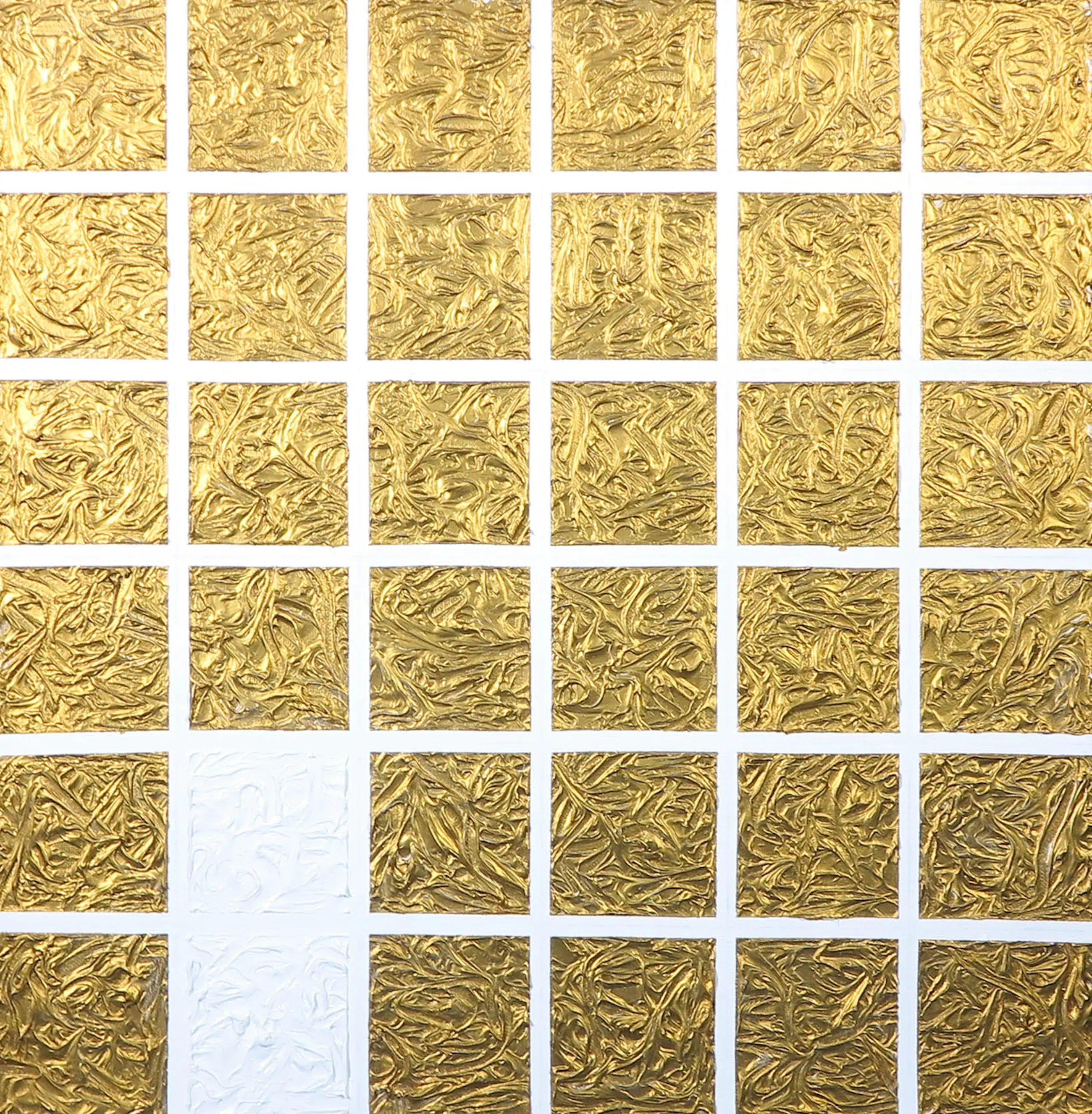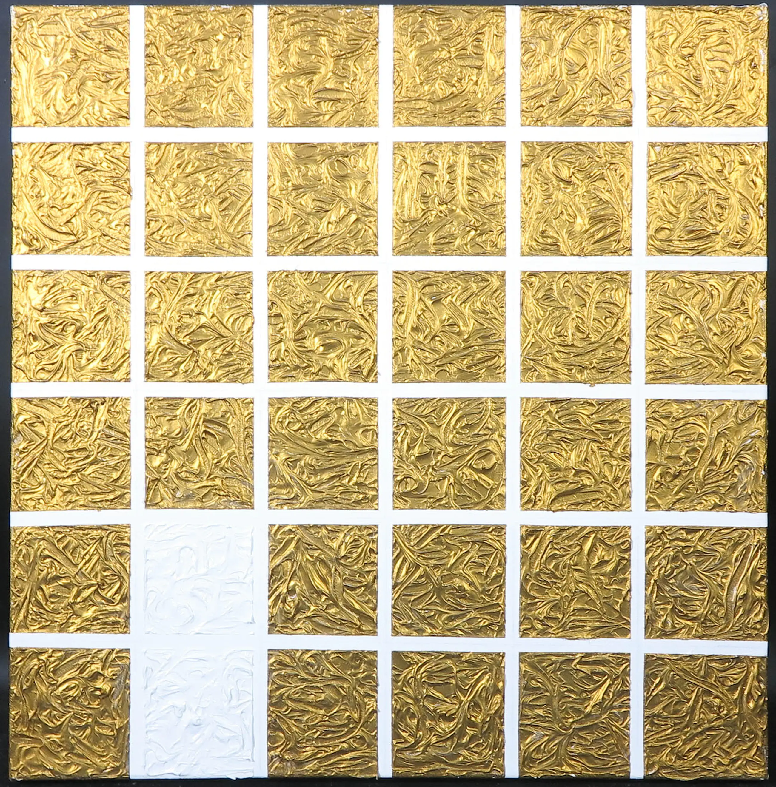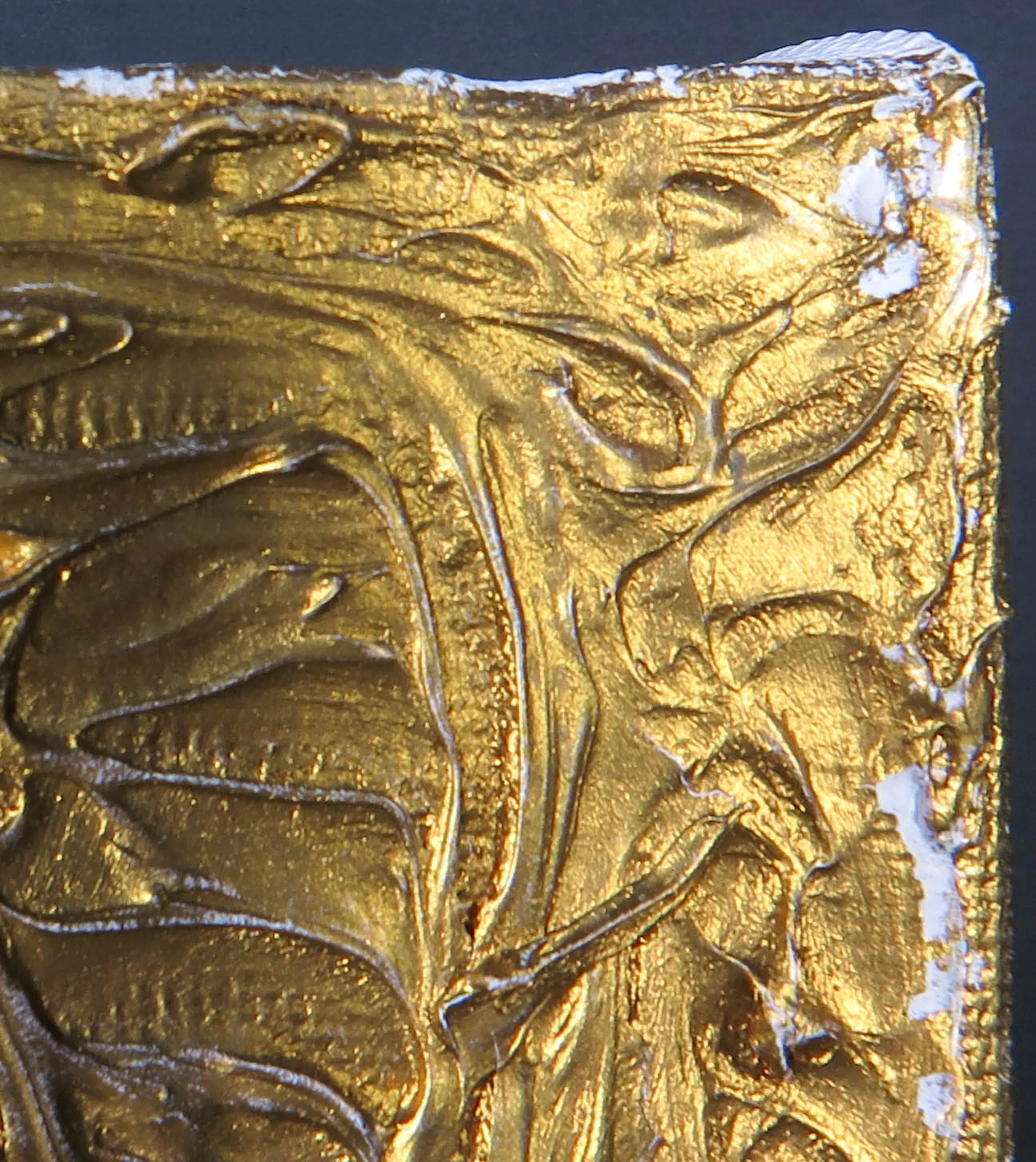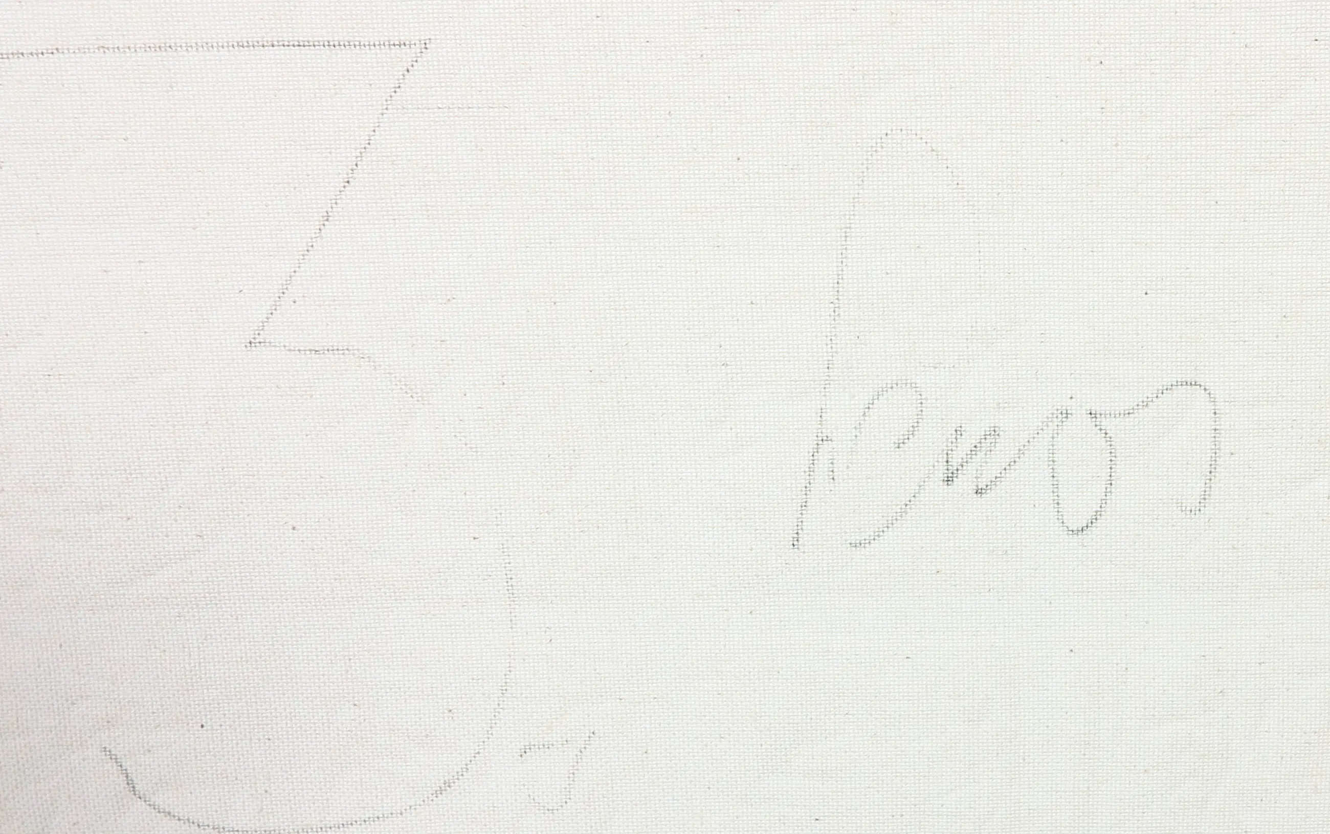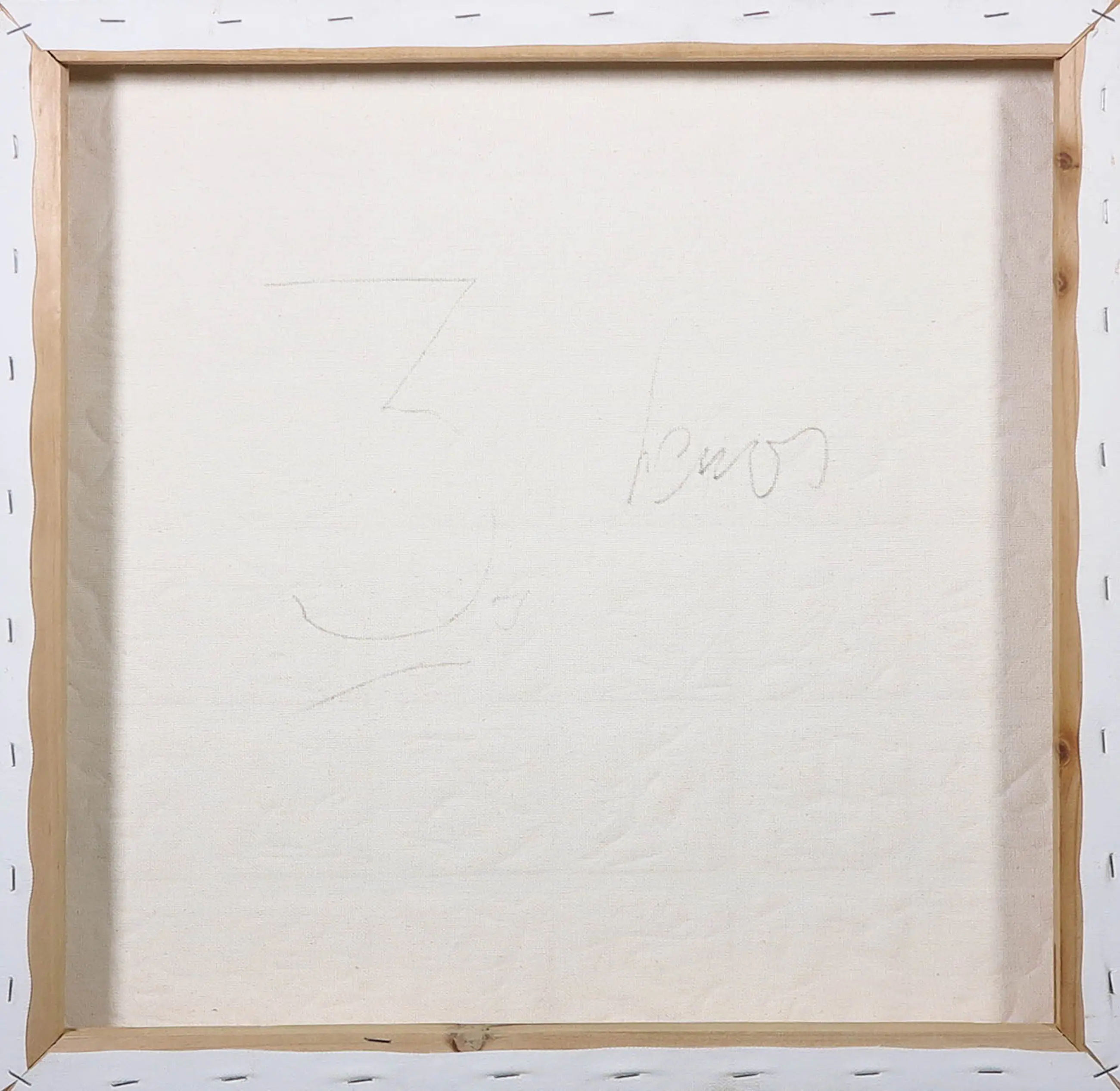 Werk waarbij er is gewerkt met verf en gesso, waardoor er een reliëf is ontstaan. Verso gesigneerd.