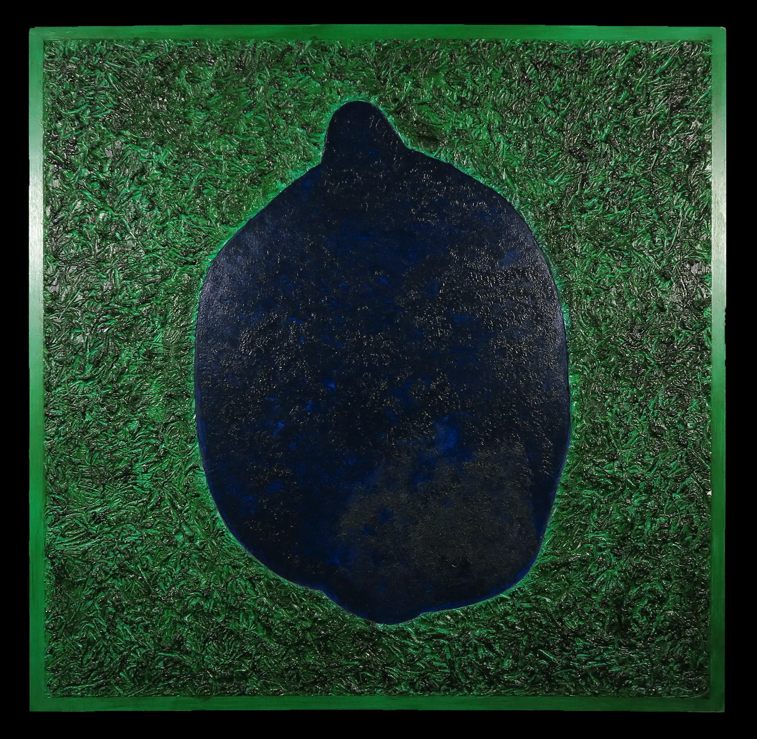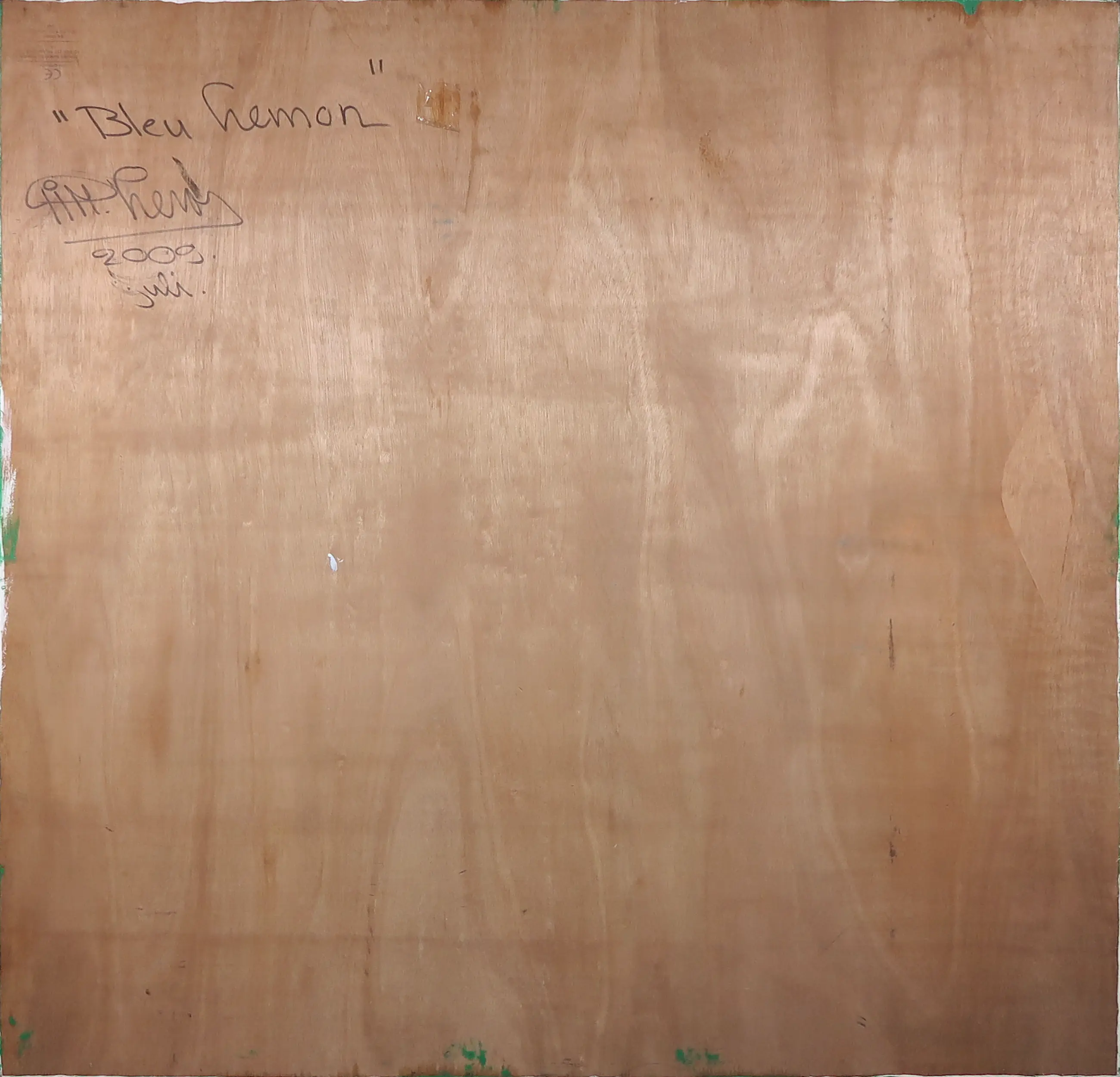 Gemengde techniek op paneel door kunstenaar Pim Lenos met veel reliëf. Verso gesigneerd.