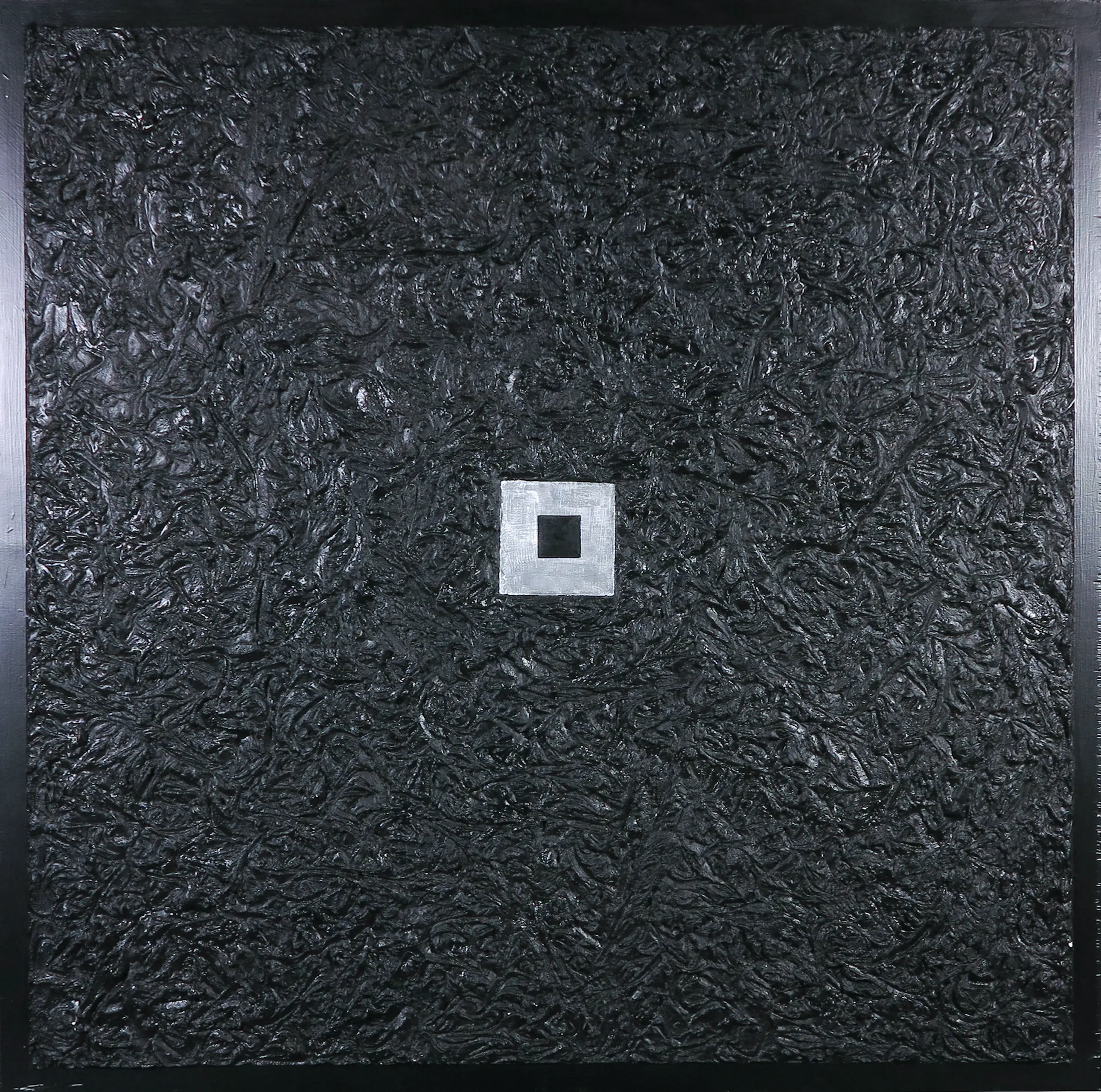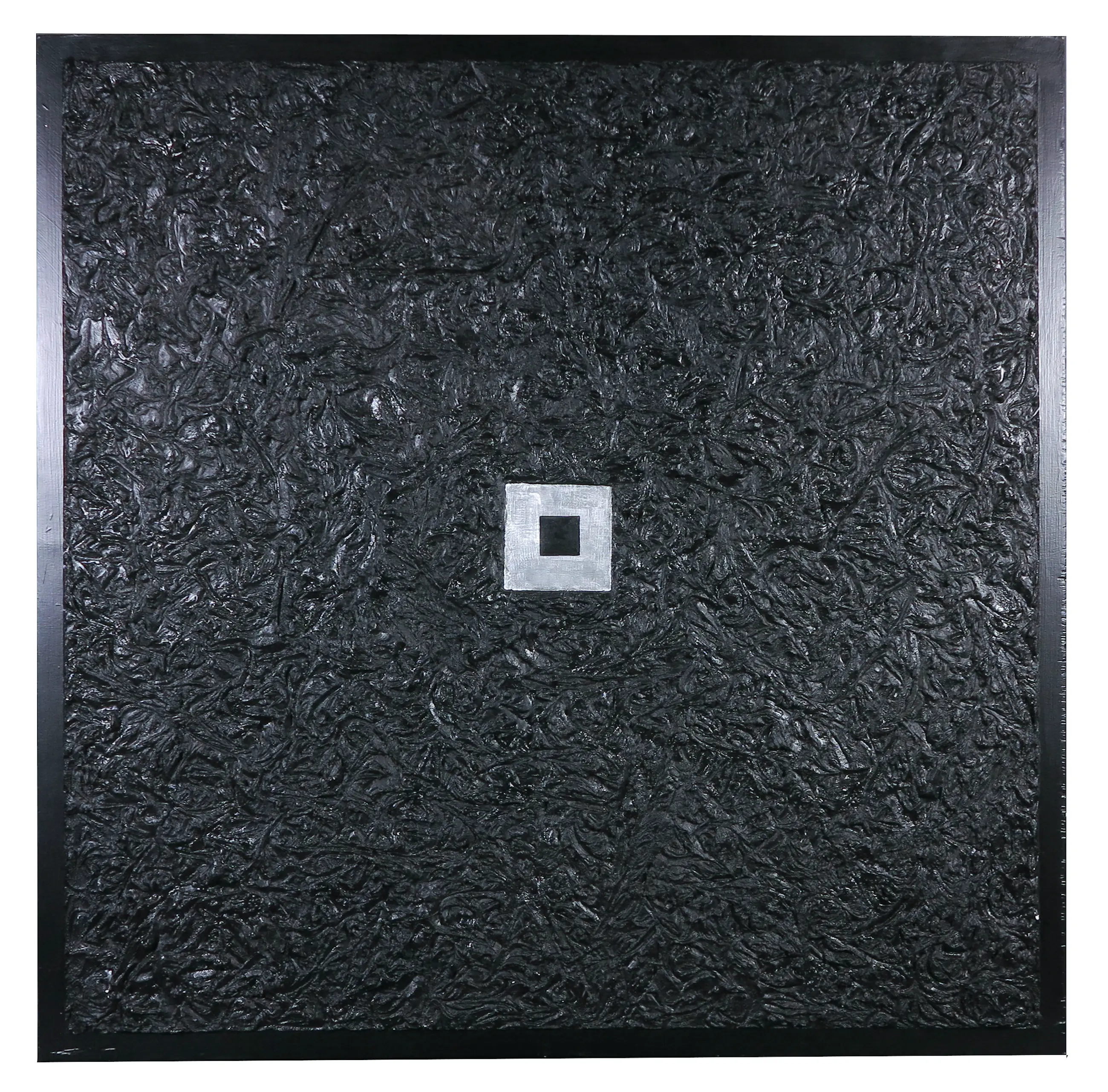 Groot imposant werk van Nederlandse kunstenaar Pim Lenos. Door de materialen heeft het werk veel reliëf.