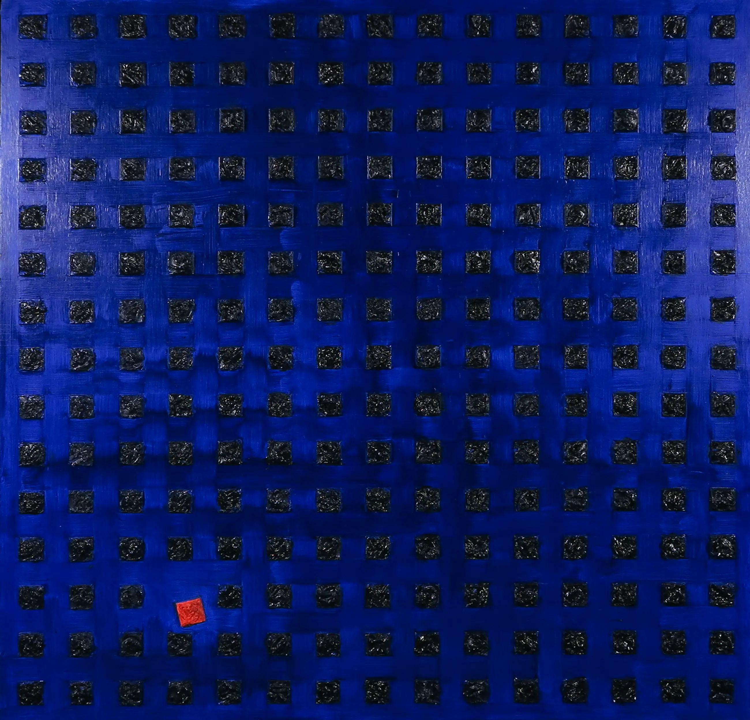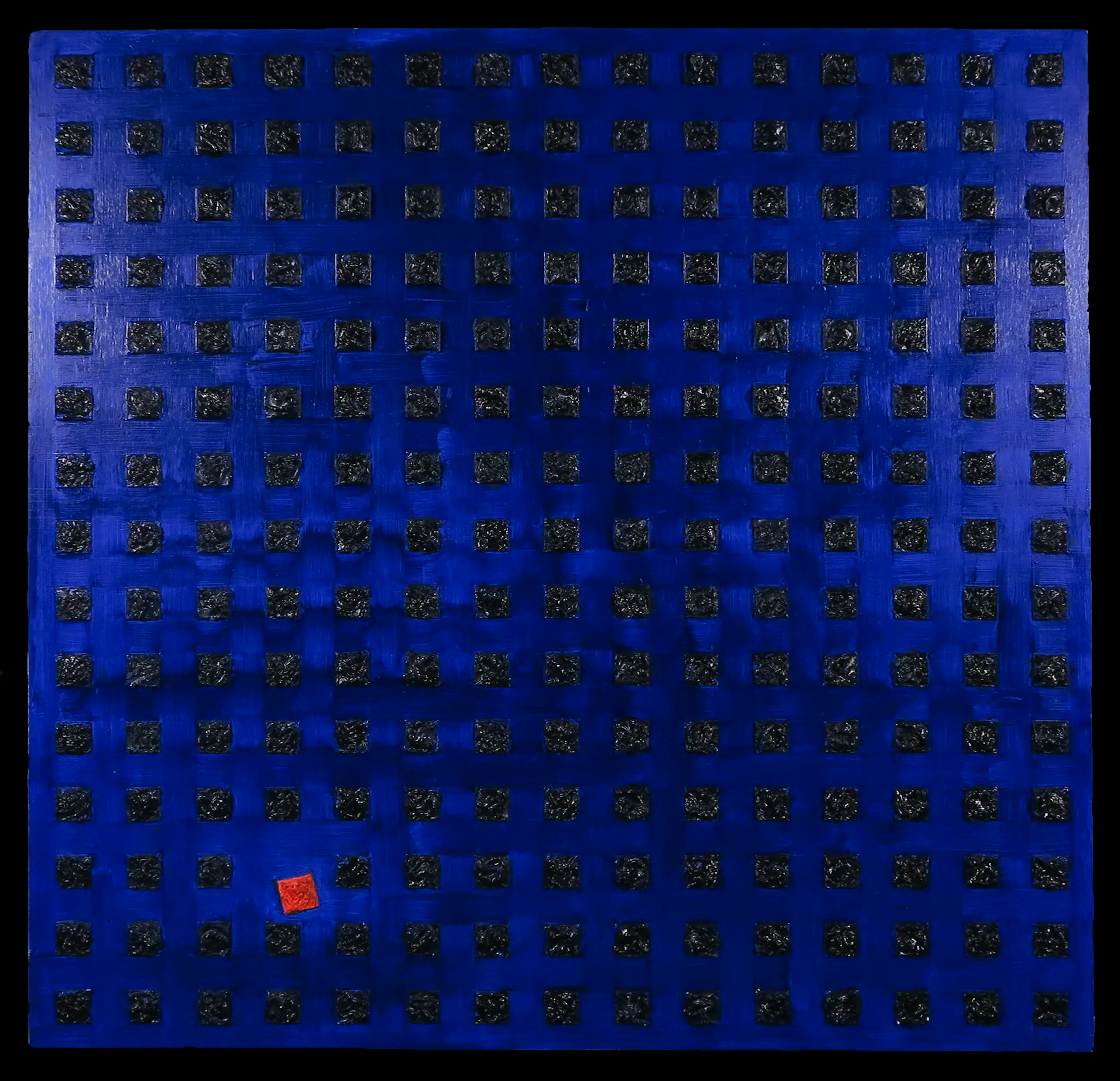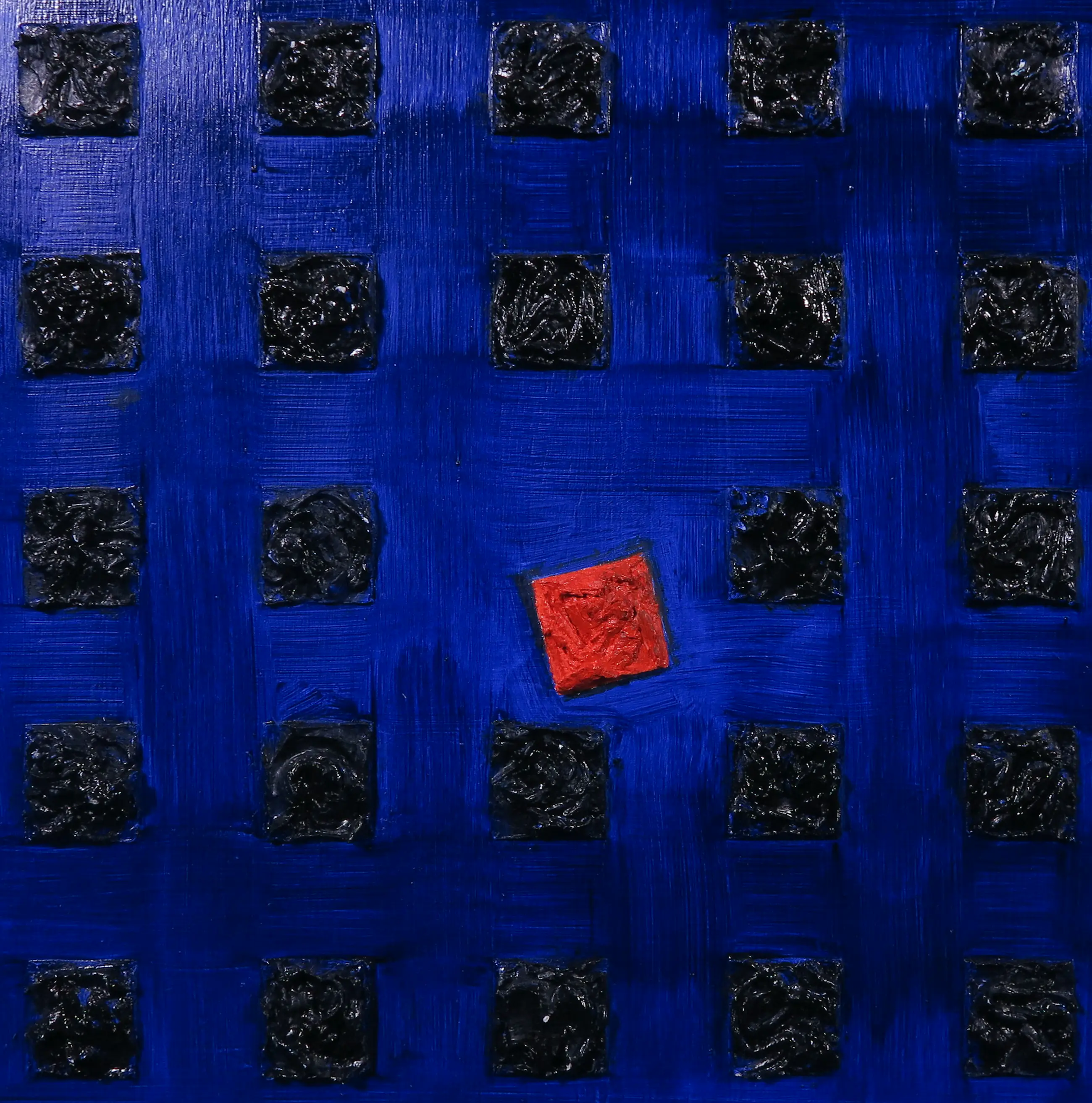 Gemengde techniek op paneel door kunstenaar Pim Lenos met veel reliëf.