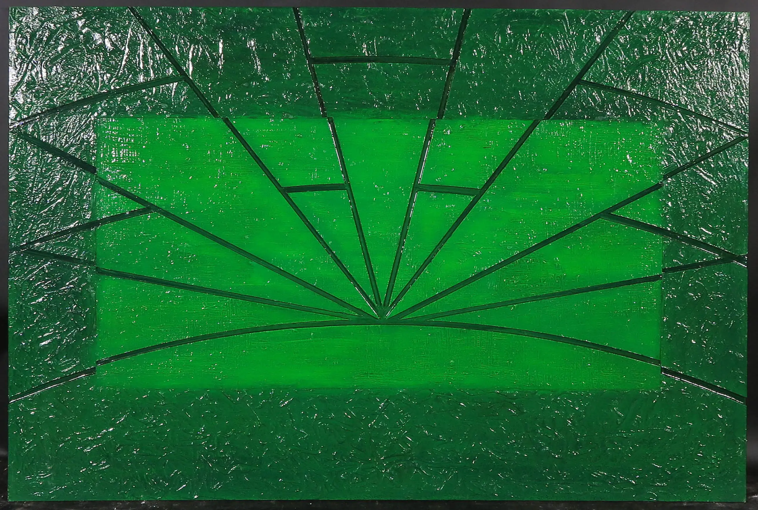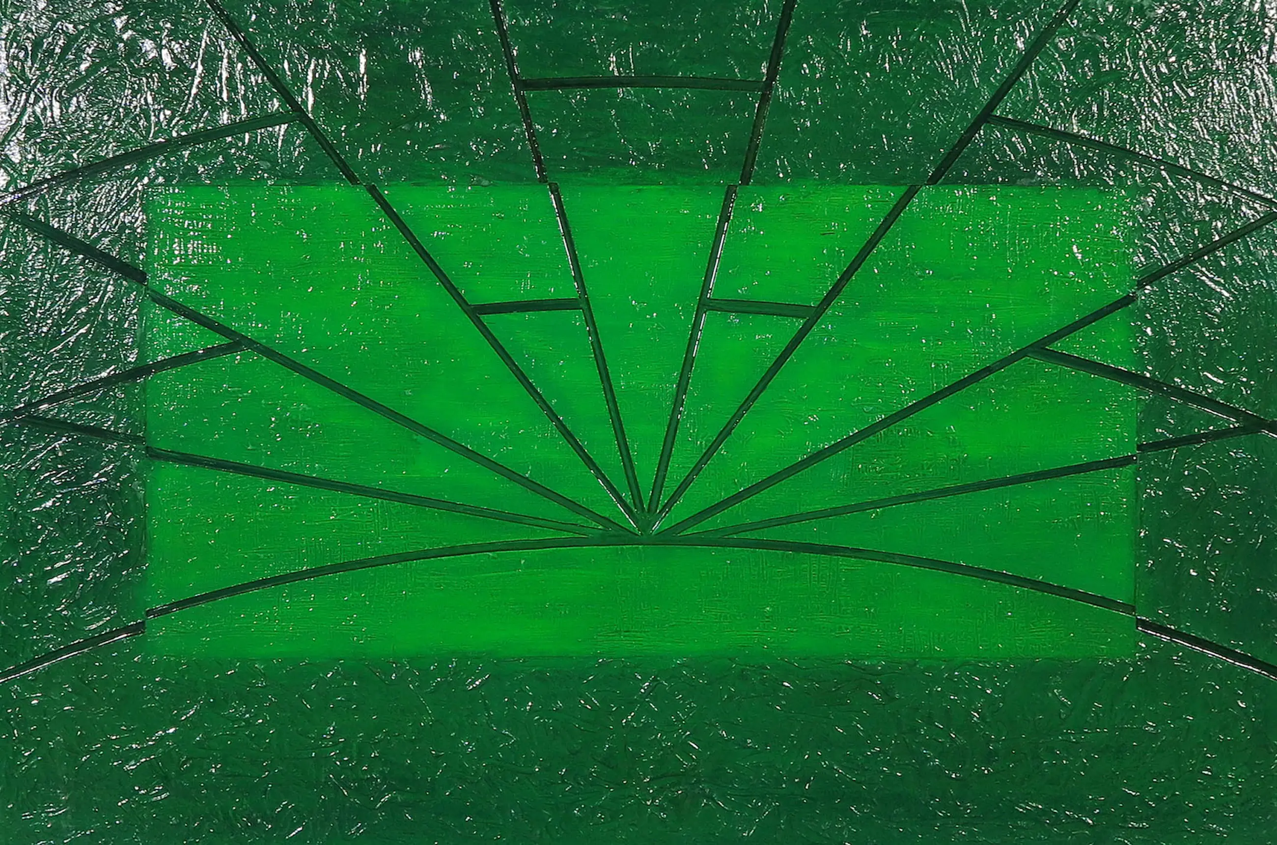 Werk waarbij er is gewerkt met verf en gesso, waardoor er een reliëf is ontstaan.