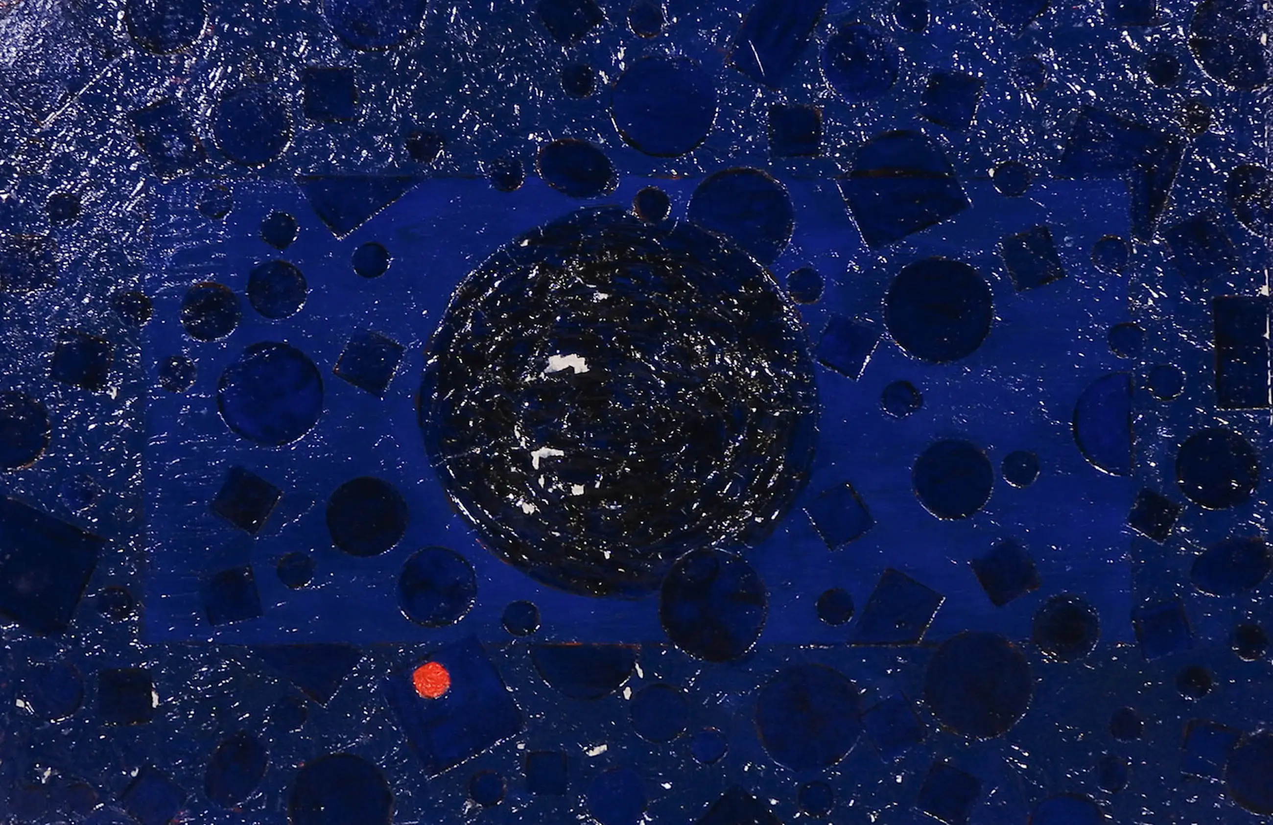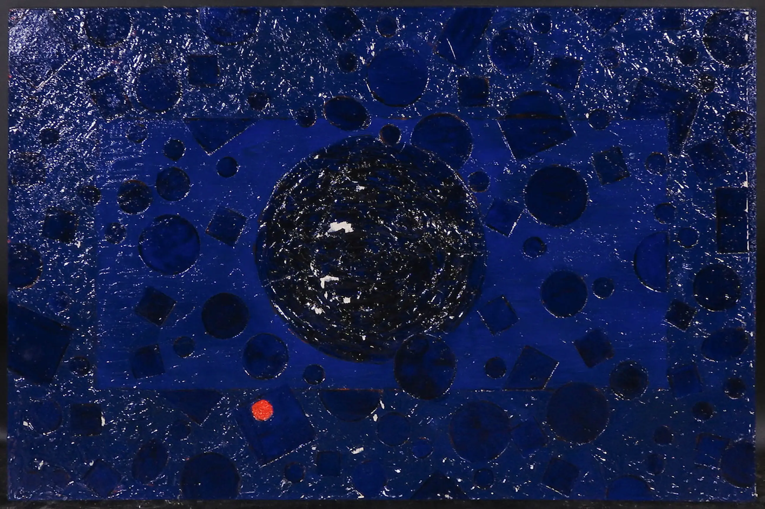 Werk waarbij er is gewerkt met verf en gesso, waardoor er een reliëf is ontstaan.