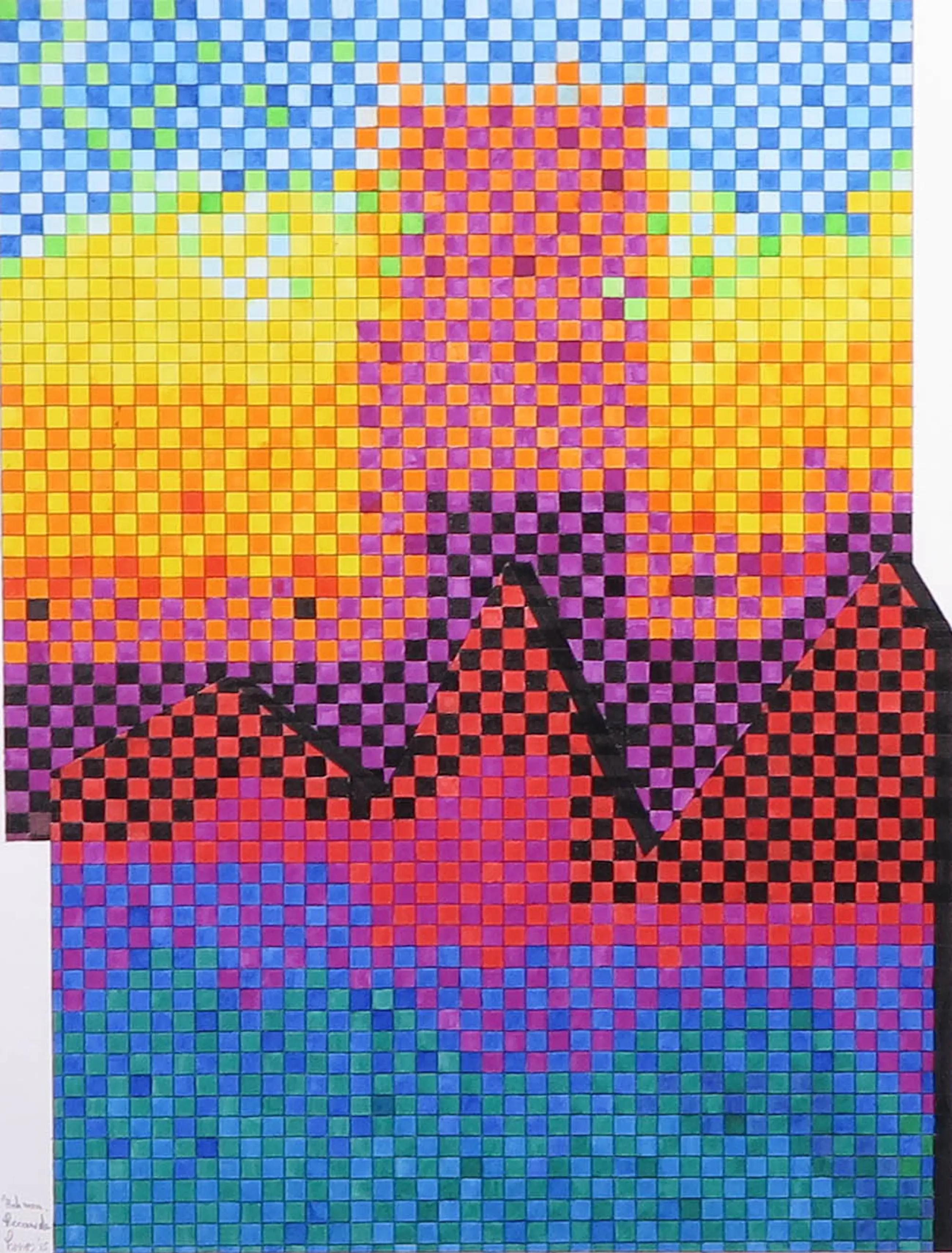 Let op: het roze/oranje vlak is in werkelijkheid oranje met paars.