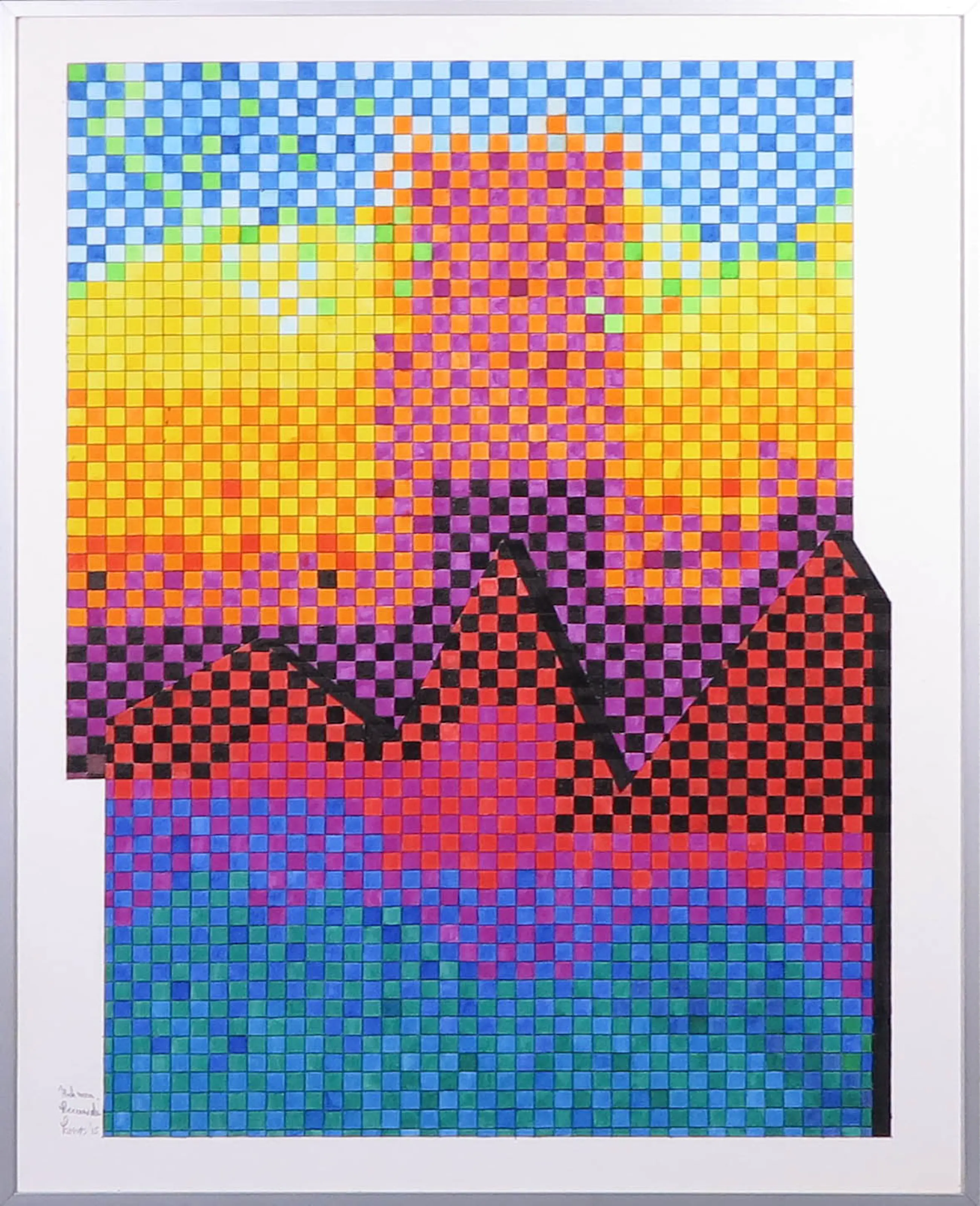 Ingelijste stifttekening van Pim Lenos. Linksonder gesigneerd door de kunstenaar.