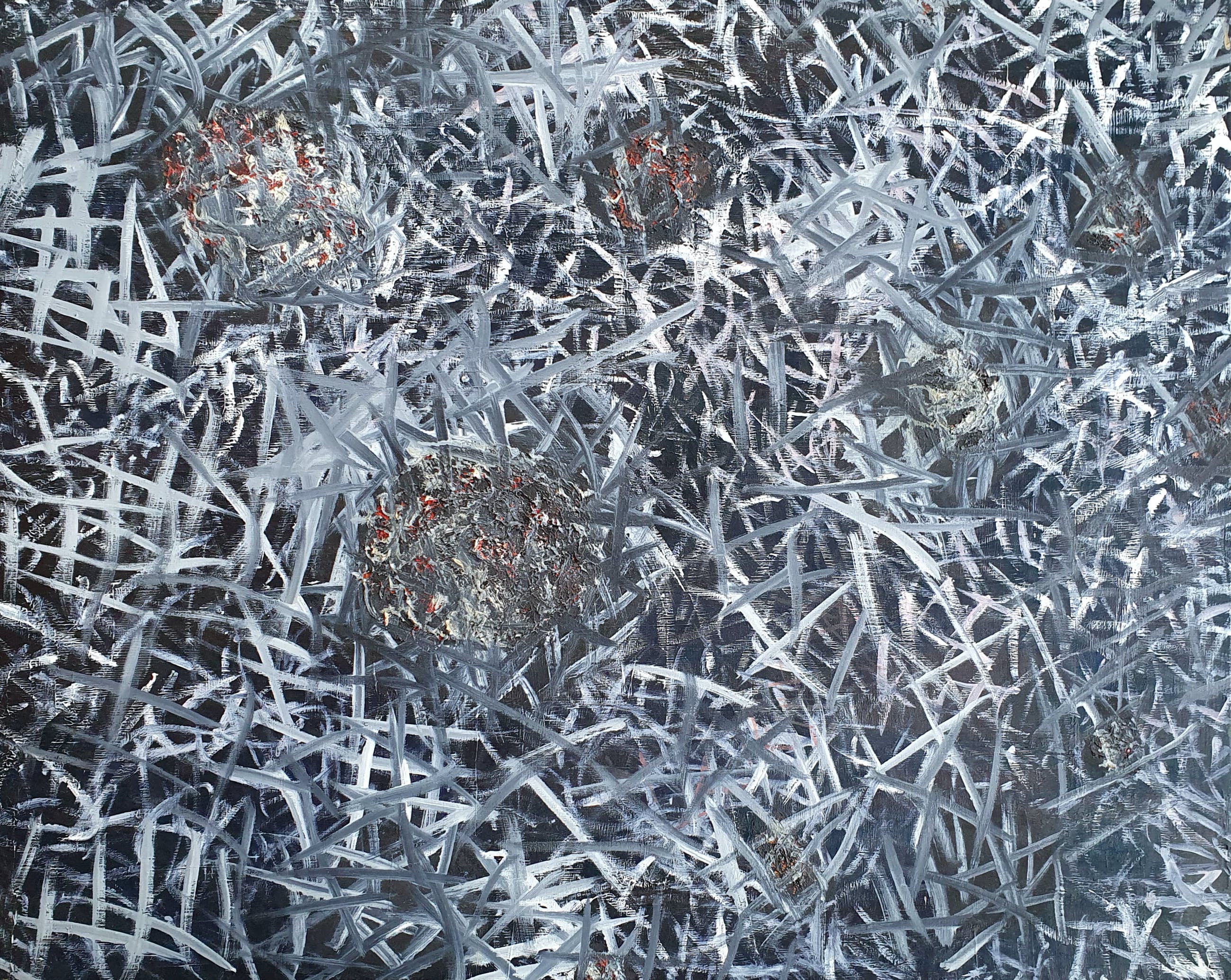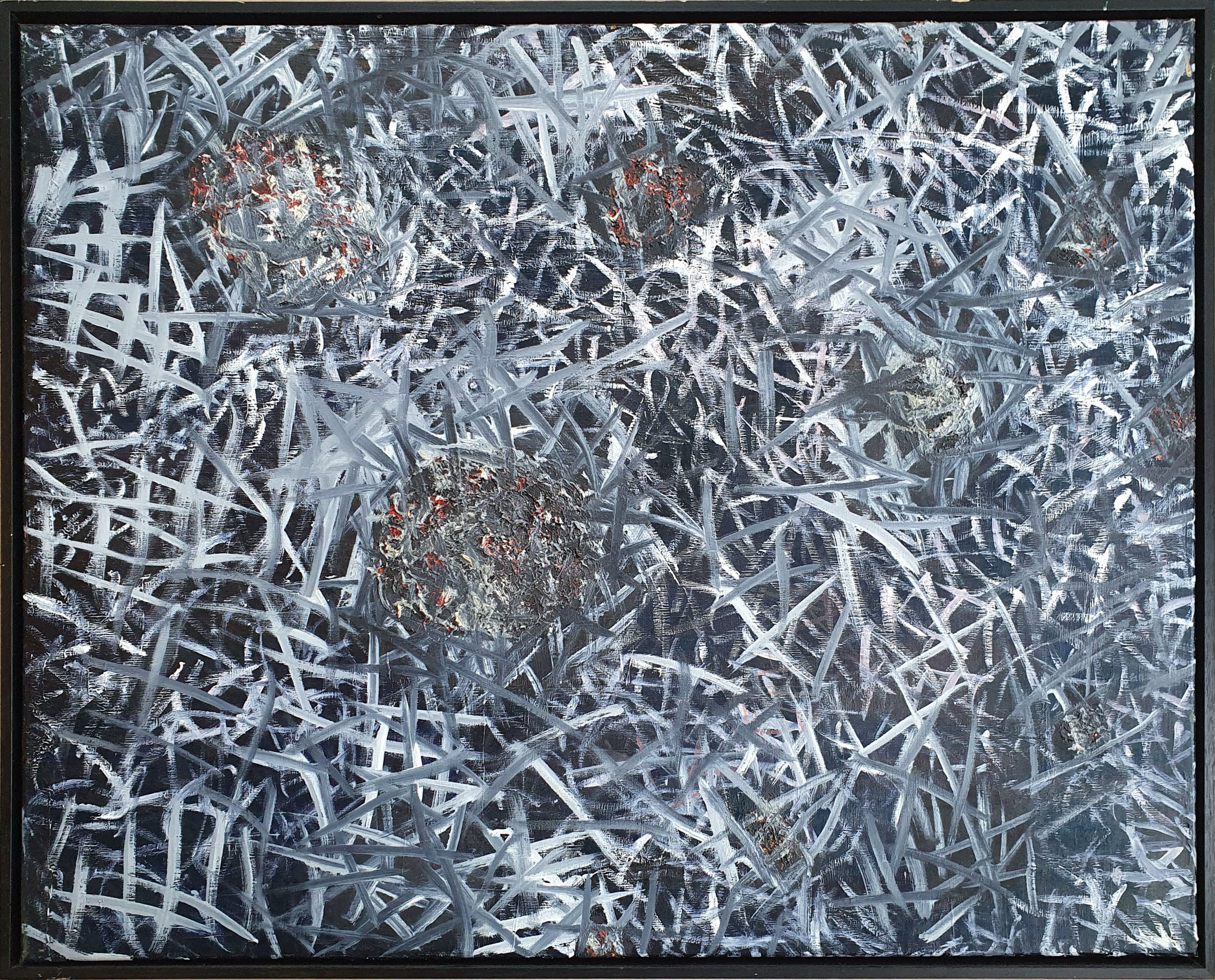 Fraai schilderij van Pim Trooster met de titel: 'Zonder Titel'. Het werk is verso met de hand gesigneerd en gedateerd door de kunstenaar.