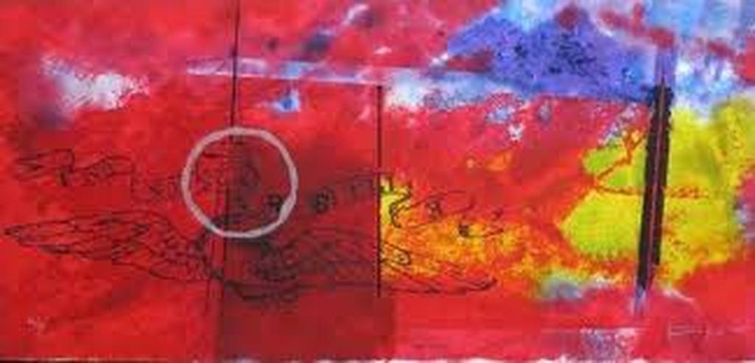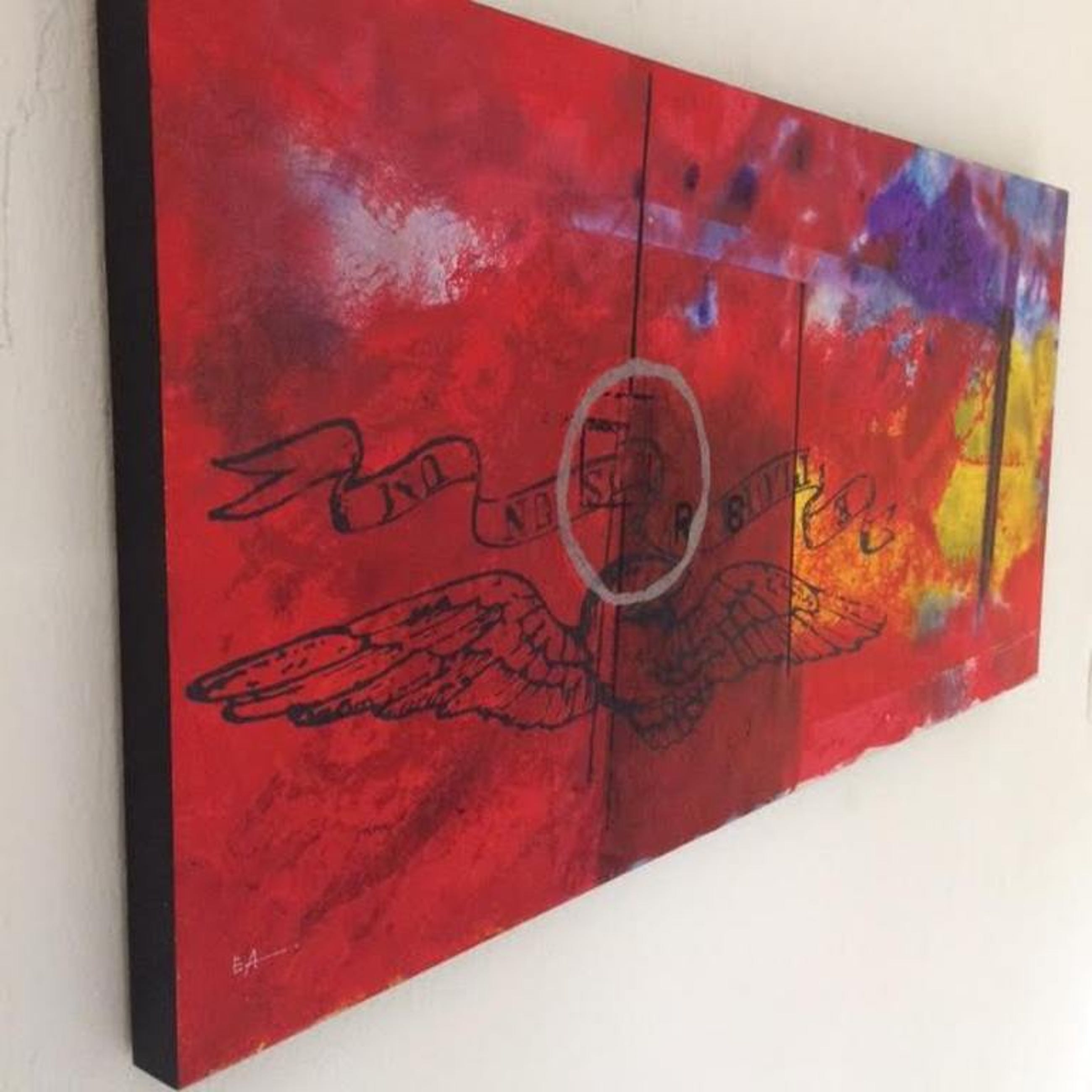 Kleurrijke zeefdruk op 3 cm dik paneel met ophangsysteem