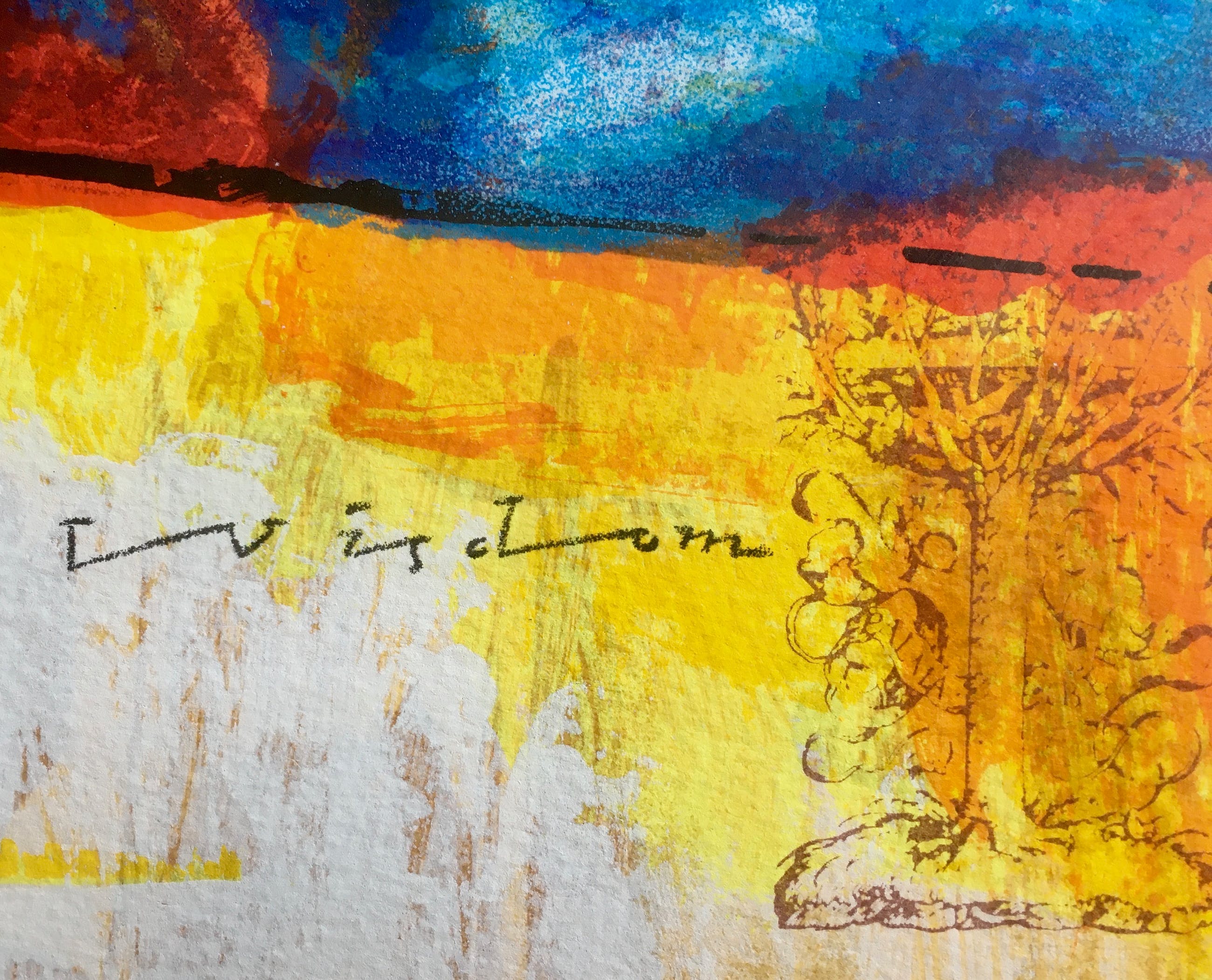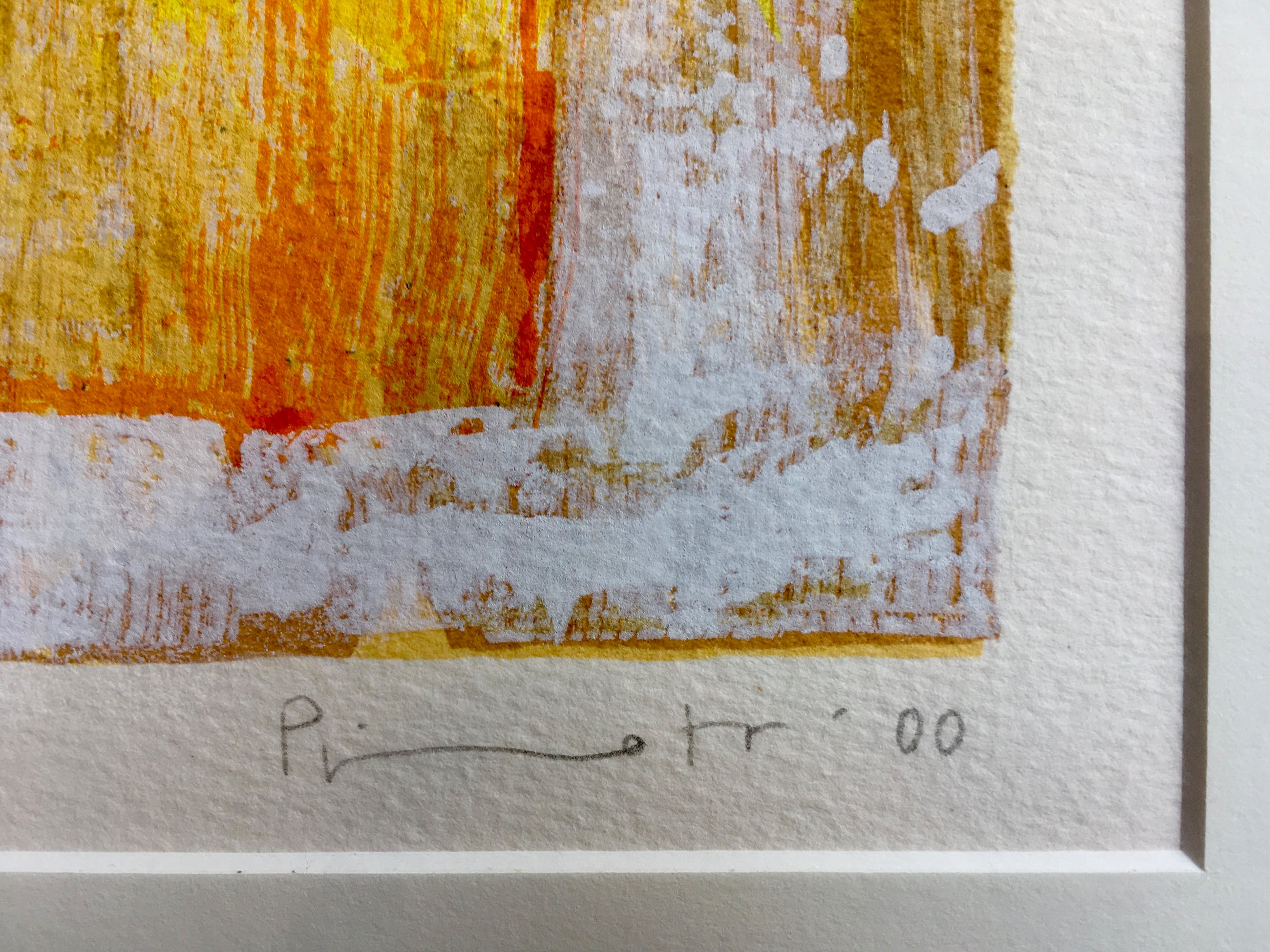 Het formaat van het werk betreft de uitsnede van het passe-partout. Het werk zelf, inclusief signatuur, meet 36x30 cm. (hxb).