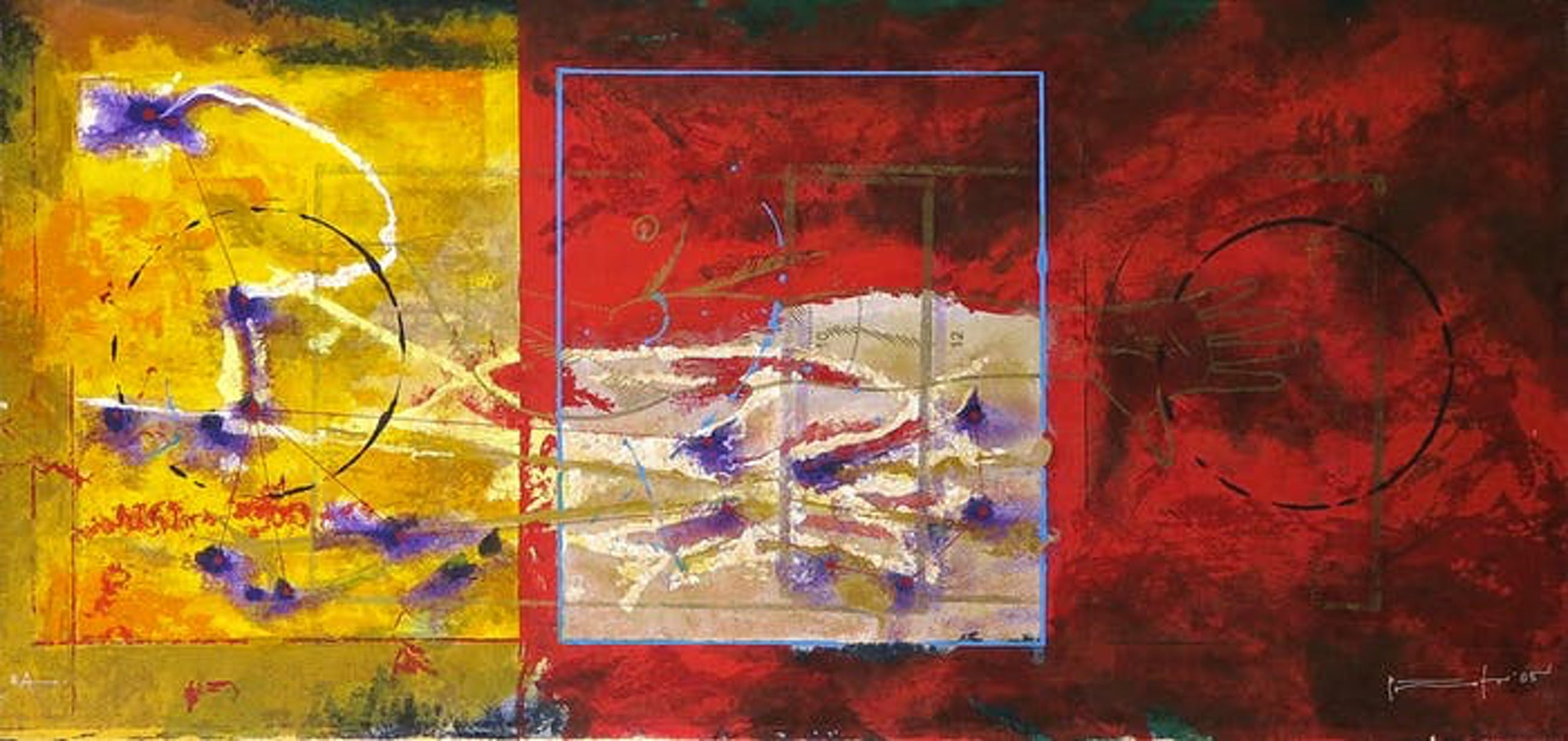 Mooi werk, felle kleuren. Makkelijk op te hangen. Handgesigneerd.