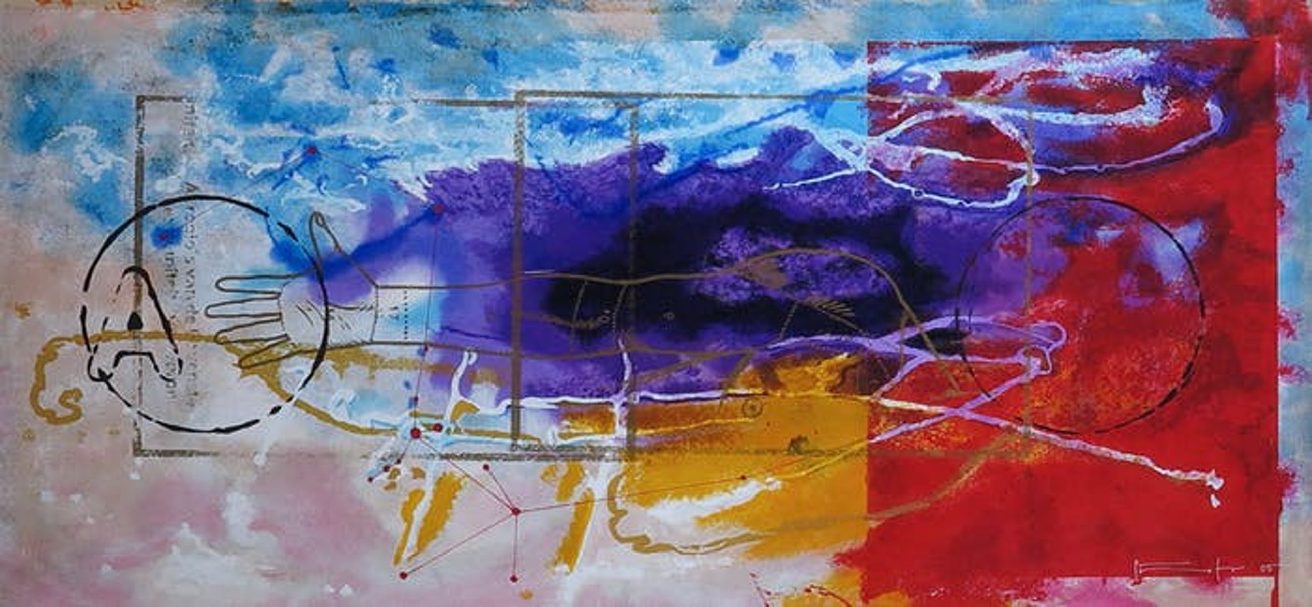 Mooi werk, niet te groot of te klein, felle kleuren. Handgesigneerd.