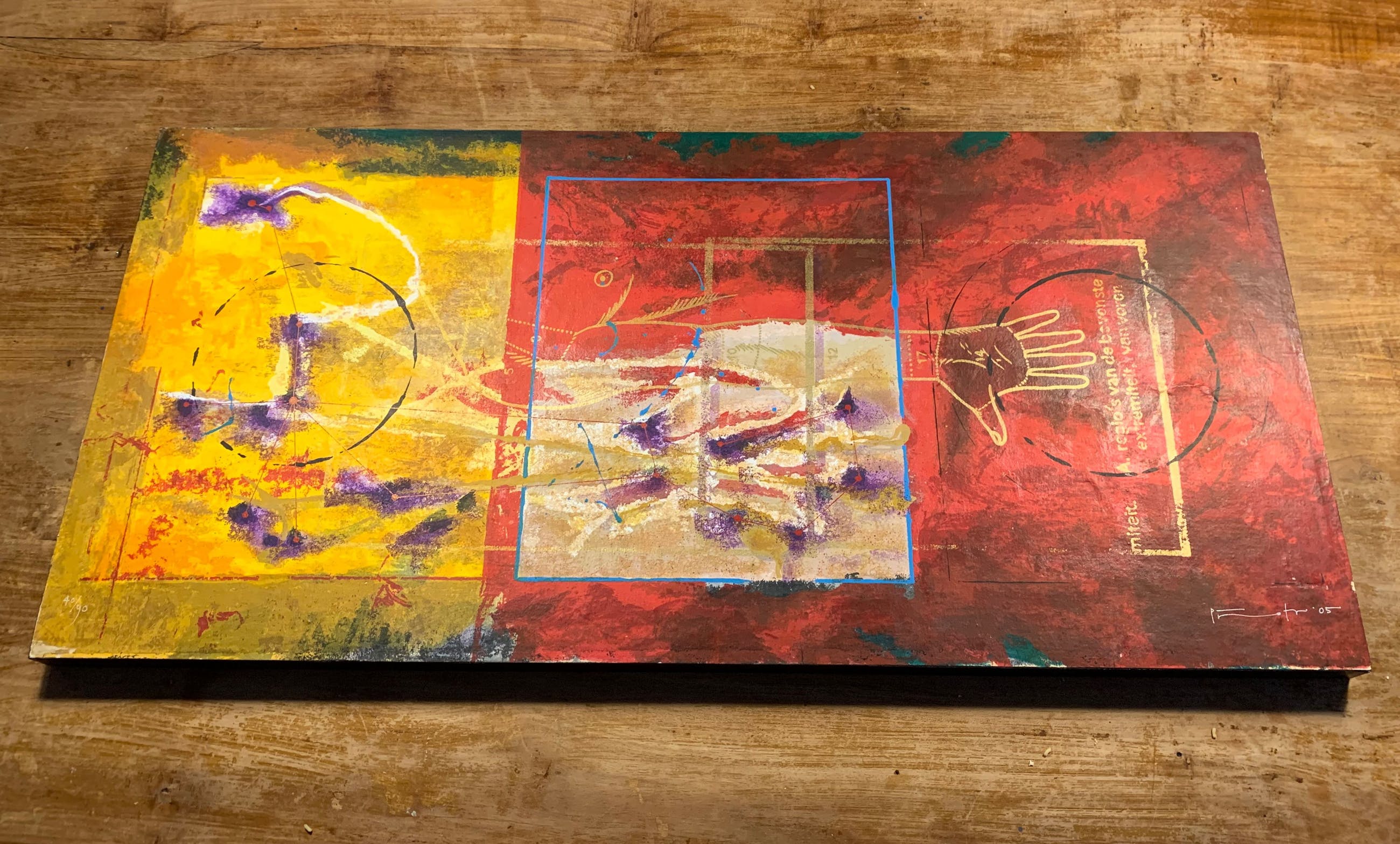 Een zeefdruk op hout van Pioter Konkel. In goede staat. Afmetingen zijn 80 (breed) x 40 (hoog) Let op! Galeriewaarde was destijds 850,- euro!! Afhalen/bekijken in Leiderdorp Verzenden is mogelijk