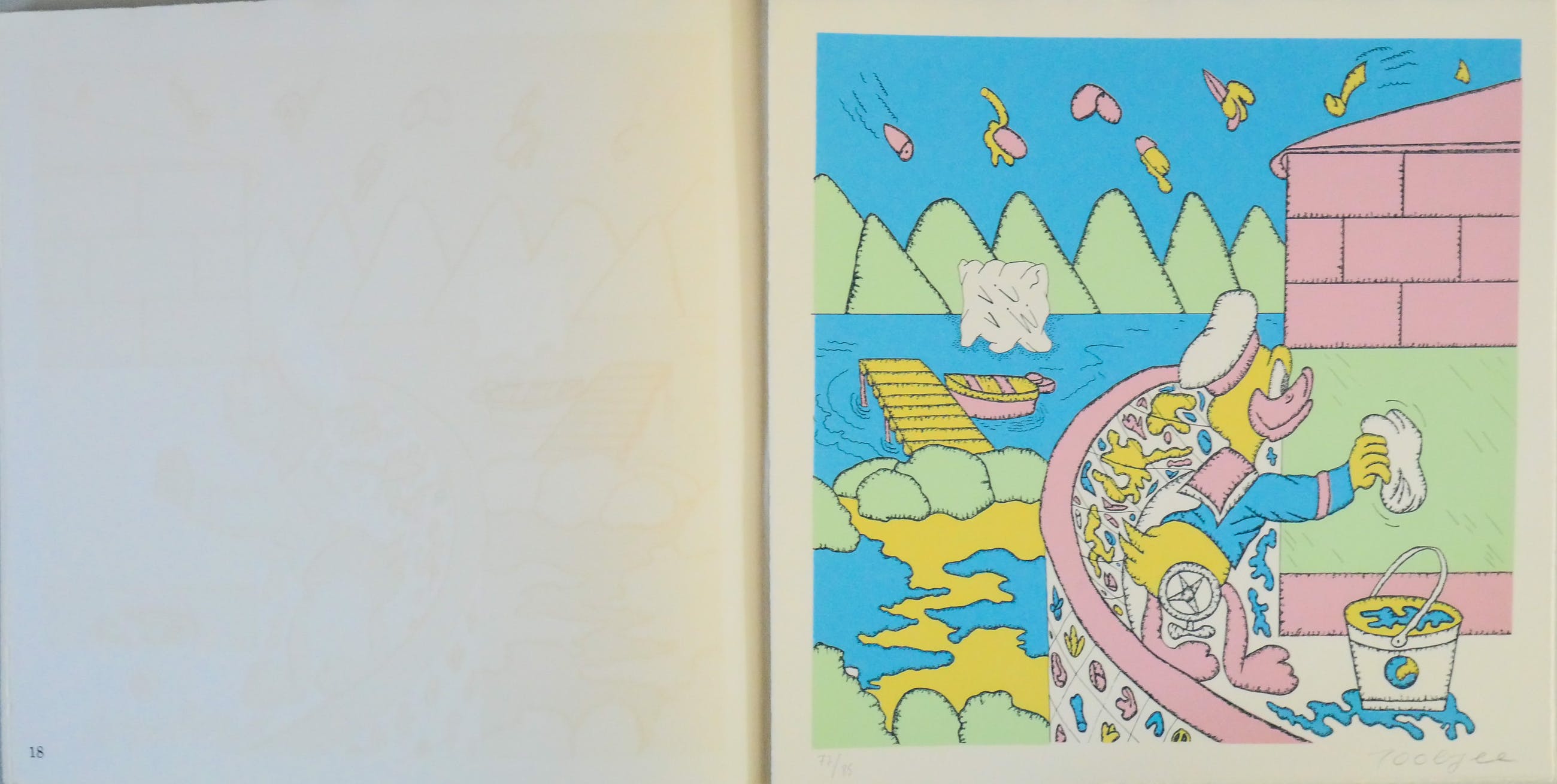 Pjeroo Roobjee (Dirk de Vilder) gesigneerde en genummerde zeefdruk In een papieren omslag met tekst Uitgever; Galerie de zwarte panter Uit de editie: van het wilde westen geen nieuws nr. 77/ 85