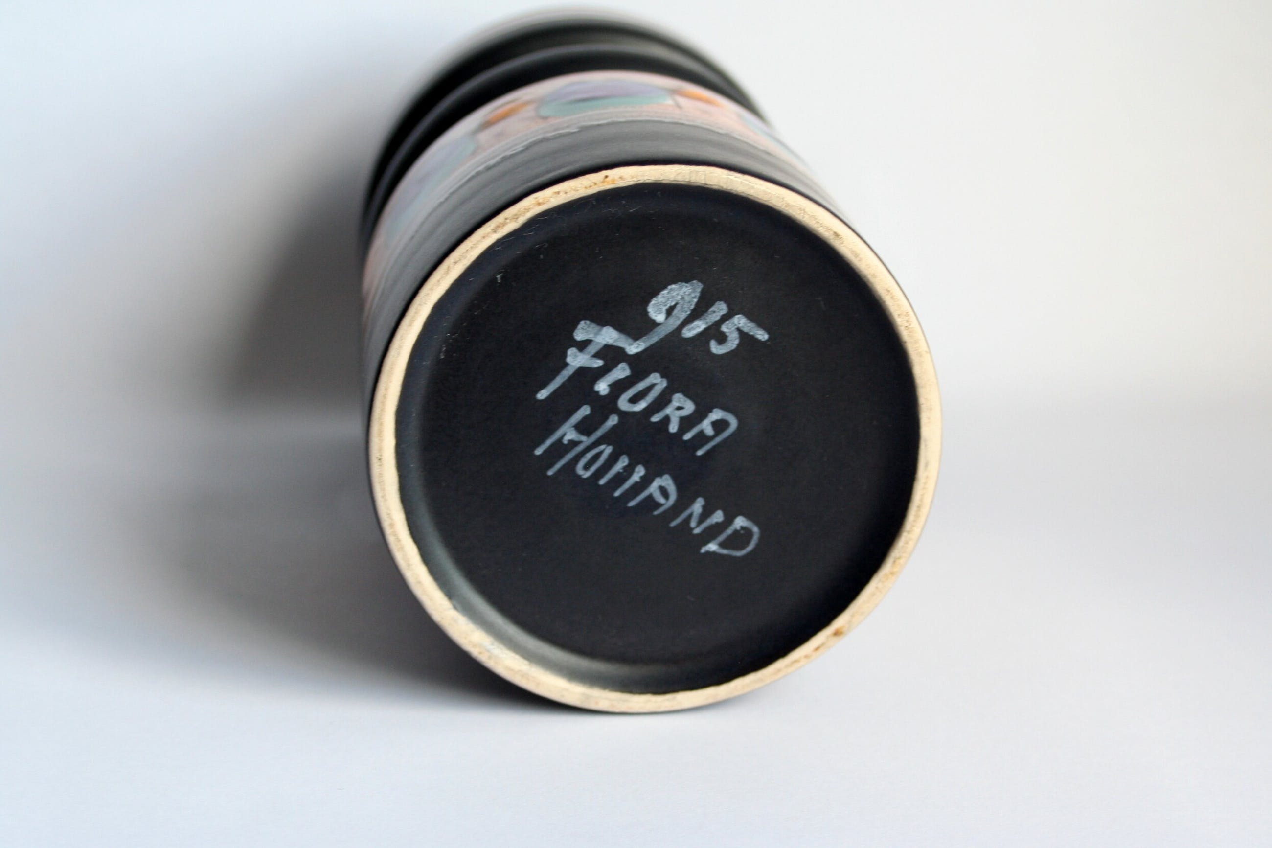 Fraaie Vintage vaas van plateelbakkerij Flora. Diameter van