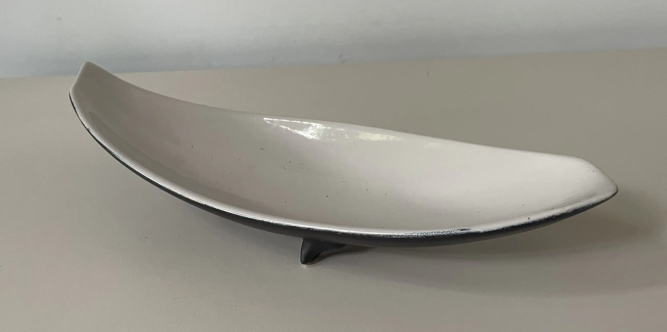 Zwart witte vintage platelen schaal op pootjes. In perfecte conditie. Niet gemerkt.