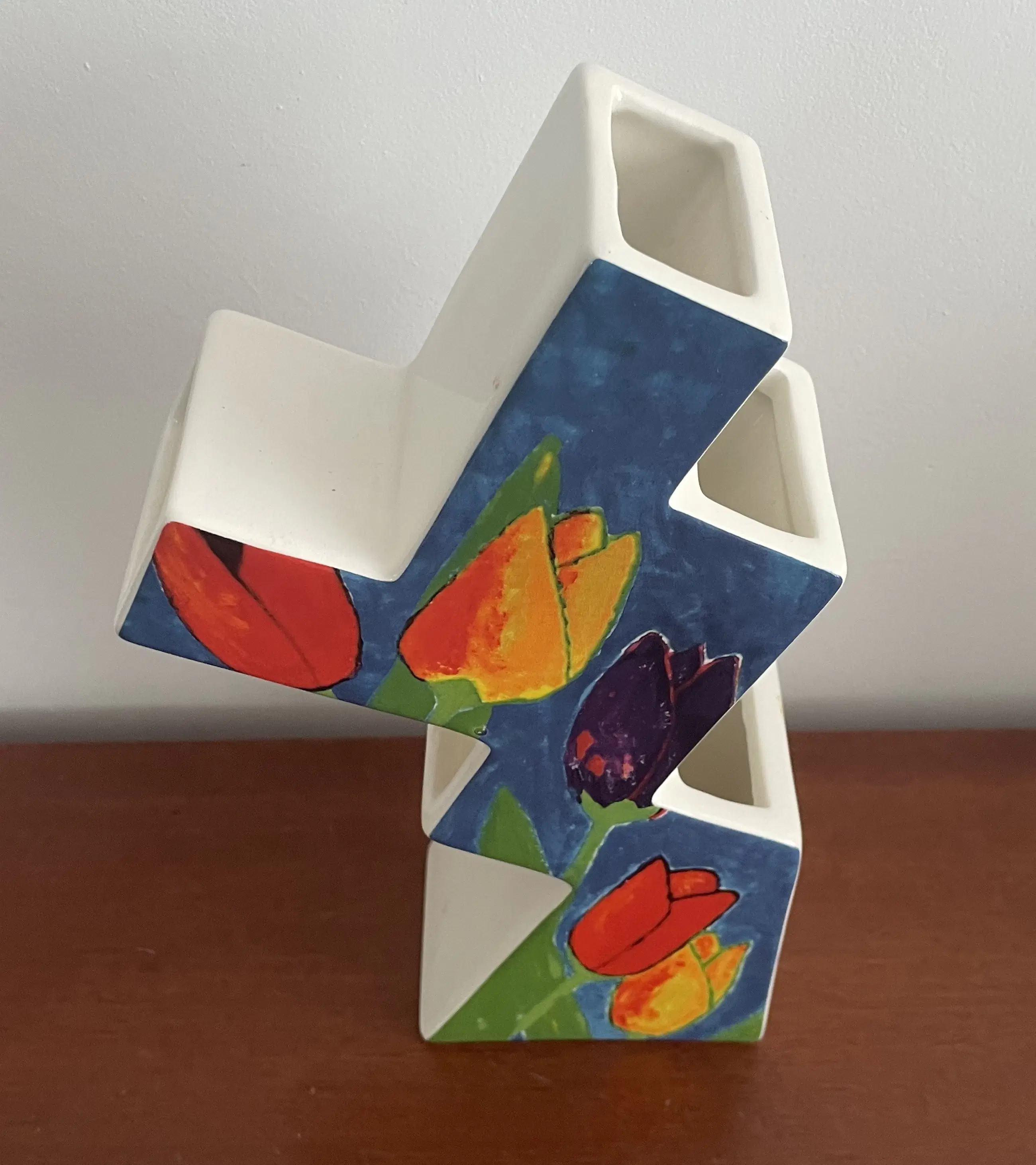 Keramiek Schoonhoven - Tulpenvaas decor ontwerp Janine Lokhorst. In perfecte conditie en gemerkt aan de onderkant.