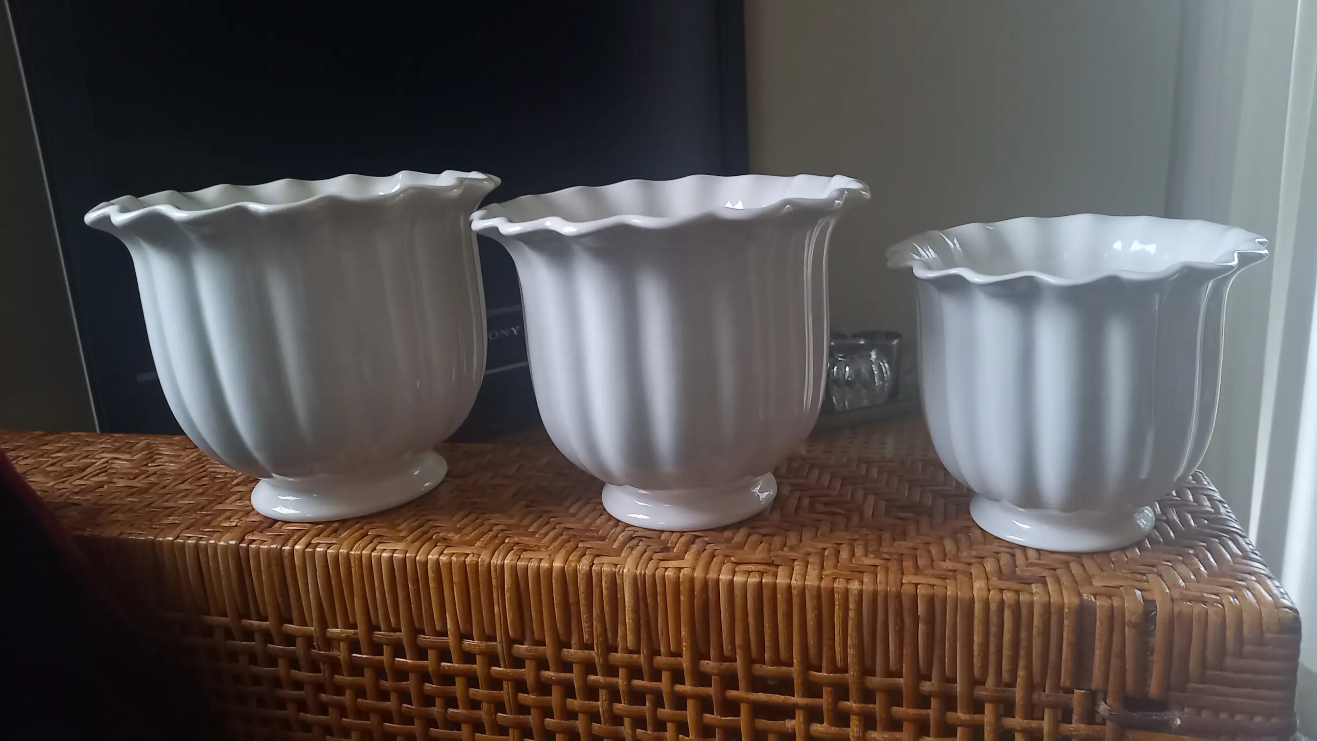 3dlg.cache potten Hoog 17/15/13cm. Doorsnede 20/17/15cm Wat gebruiksporen onderin.