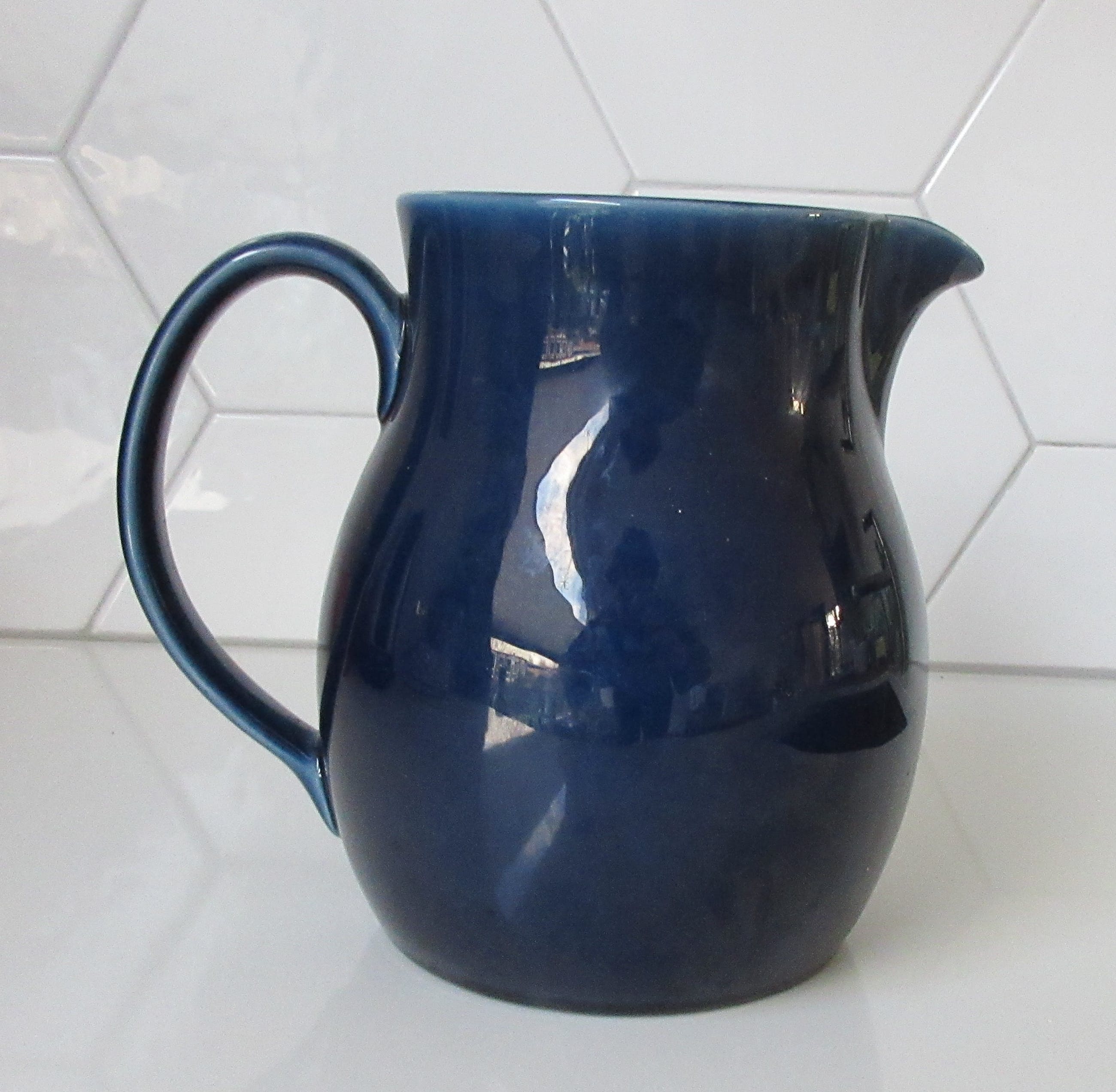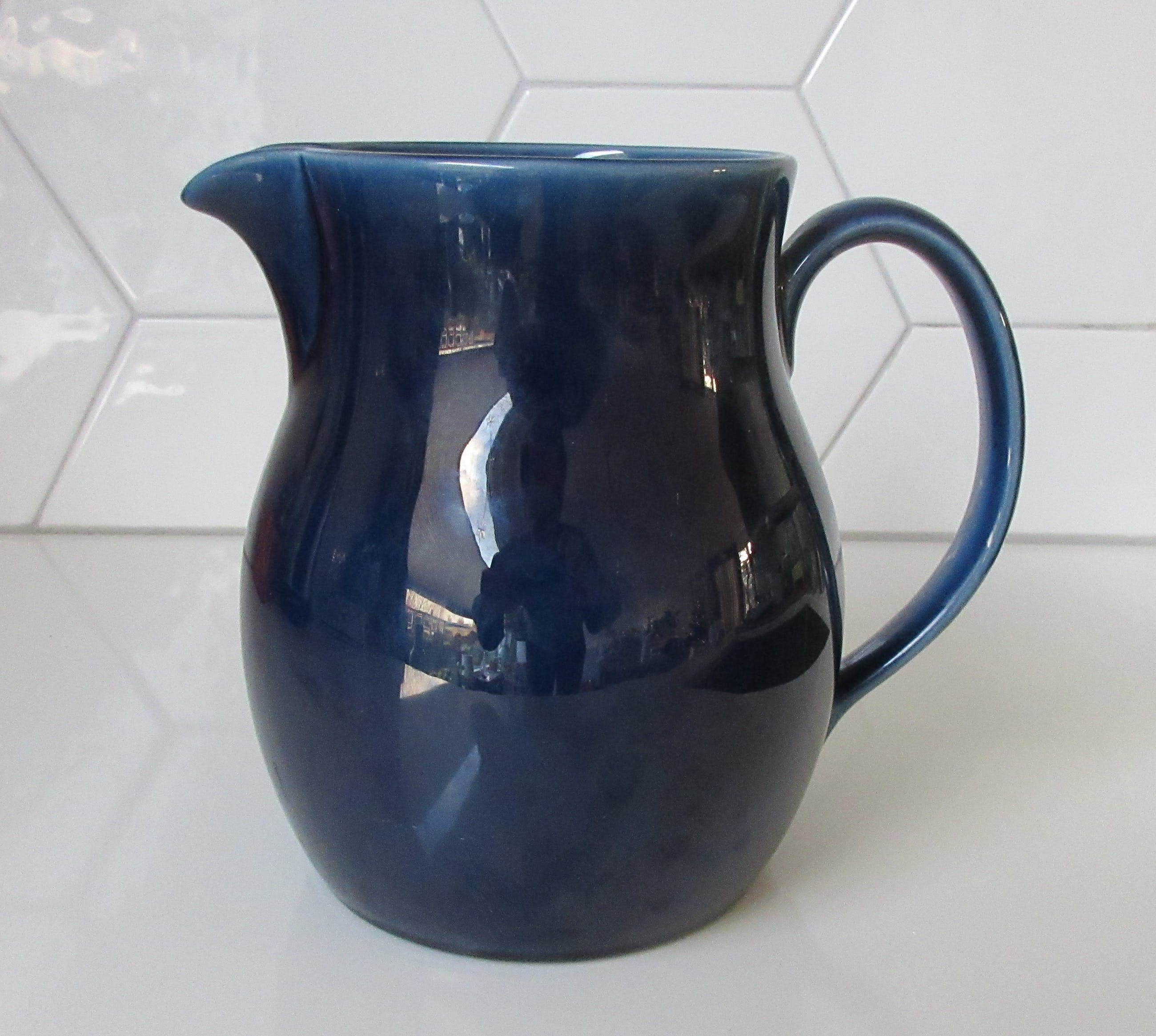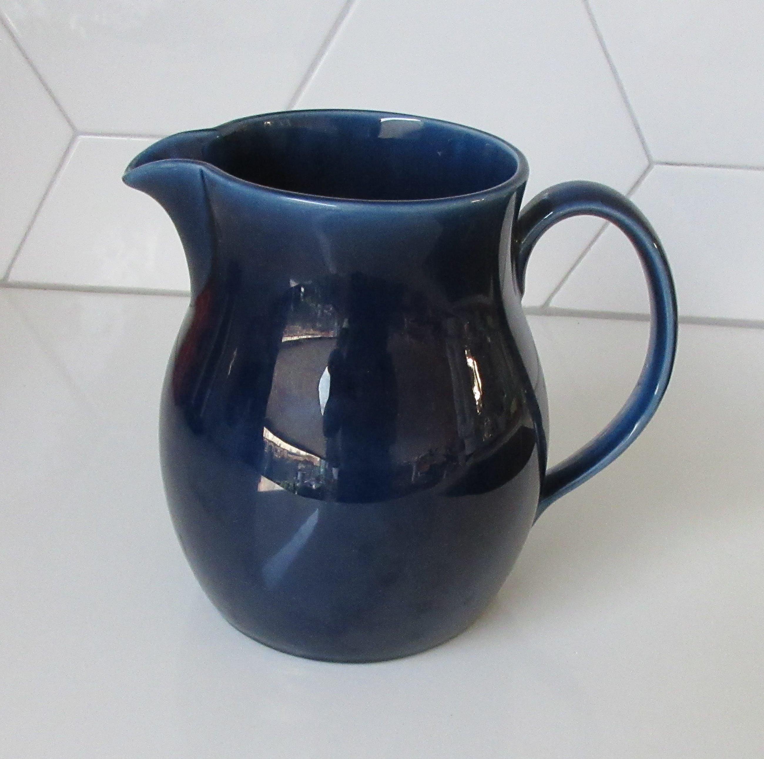 Donkerblauwe platelen kan van plateelbakkerij Zenith uit Gouda. In prima onbeschadigde conditie, gemerkt op de bodem.